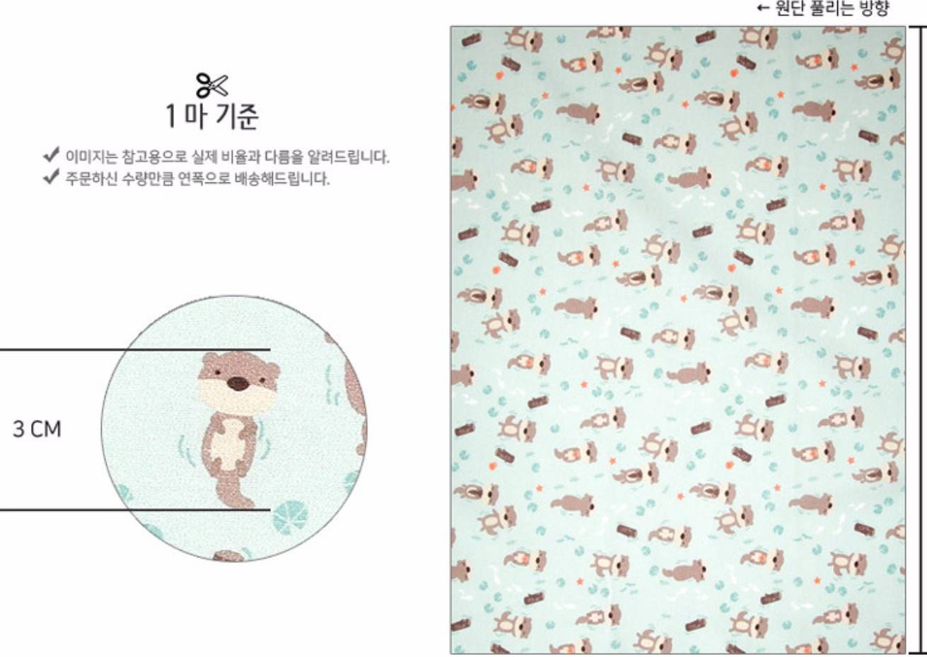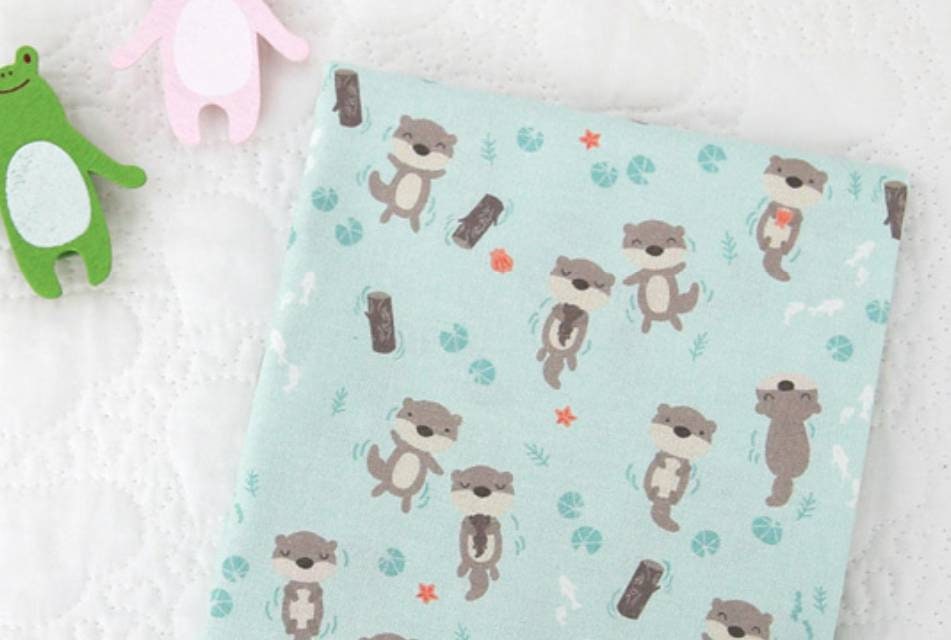 ベビーカワウソ柄生地、かわいい、子供用、裁縫、キルト - 韓国生地