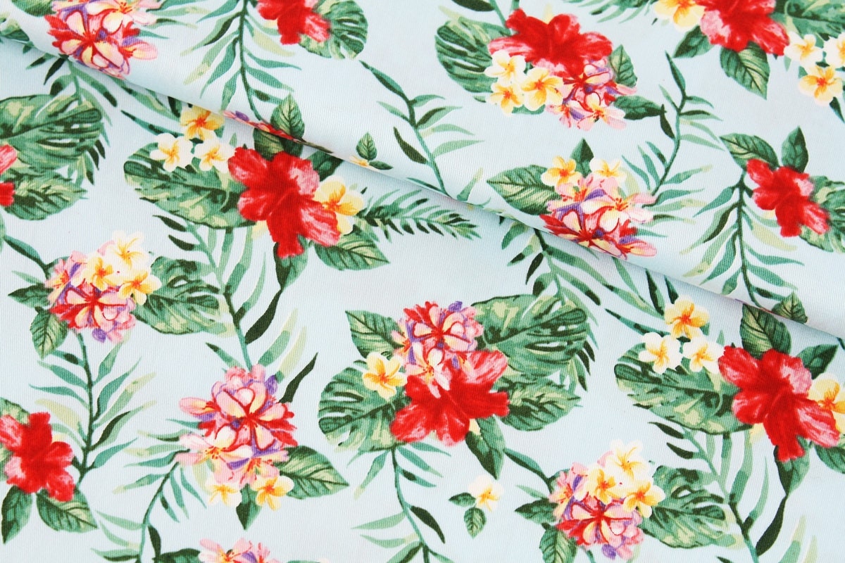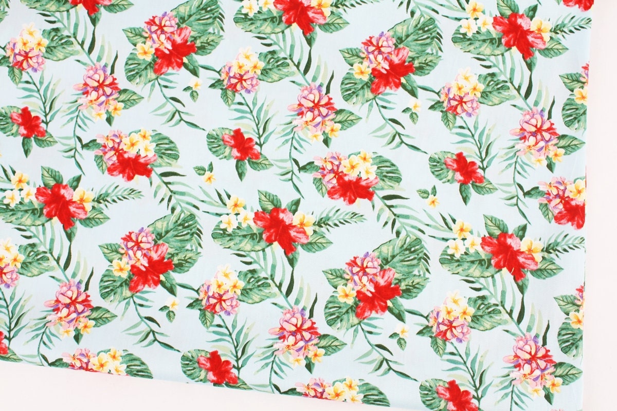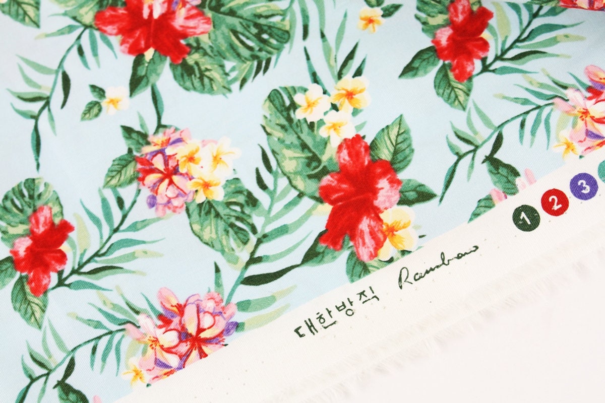 ハイビスカスの花のプリント生地 - 韓国の生地