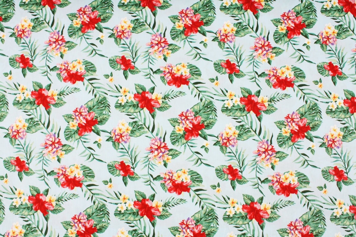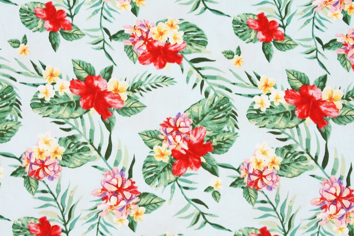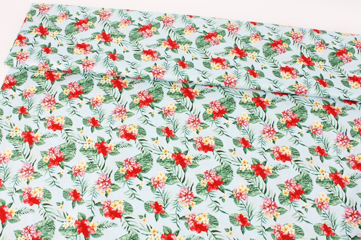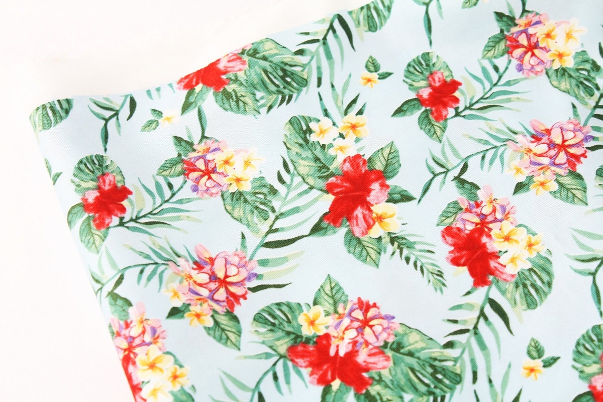 ハイビスカスの花のプリント生地 - 韓国の生地
