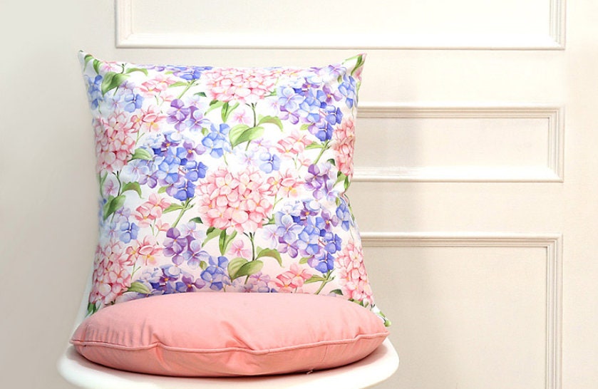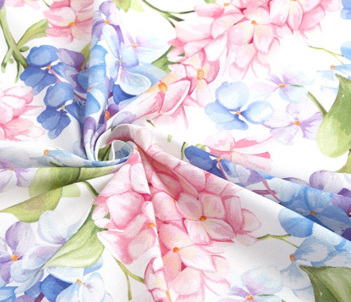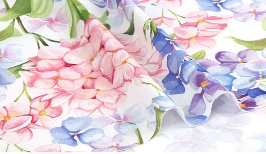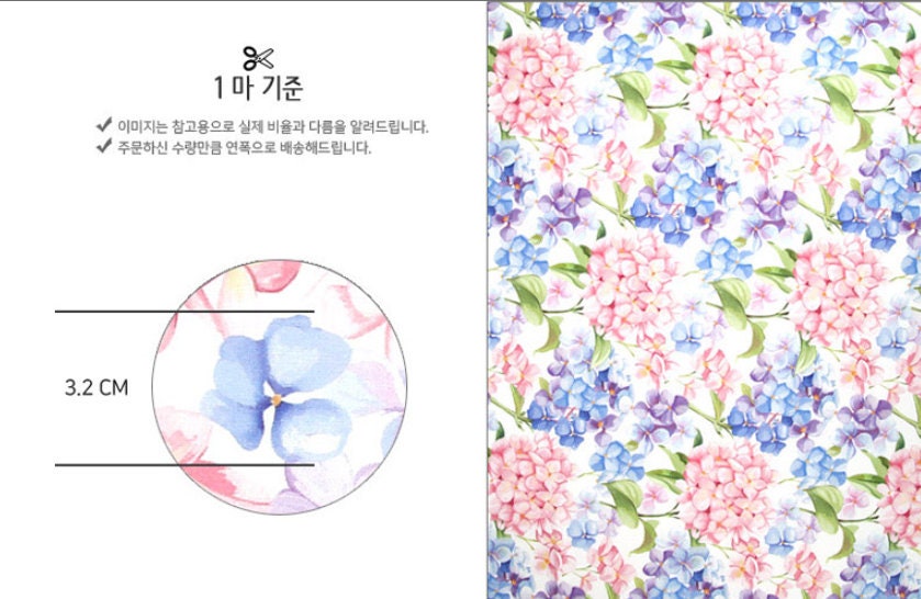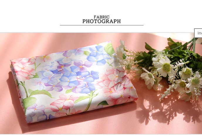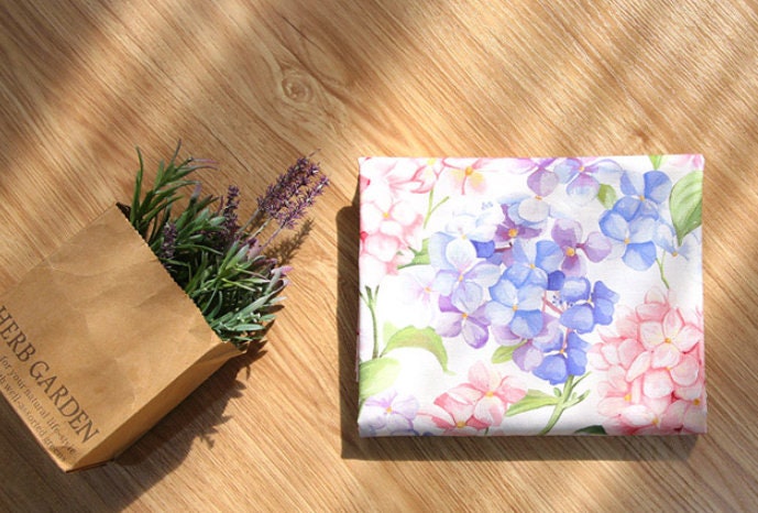 水彩アジサイの花柄生地 - 韓国の生地