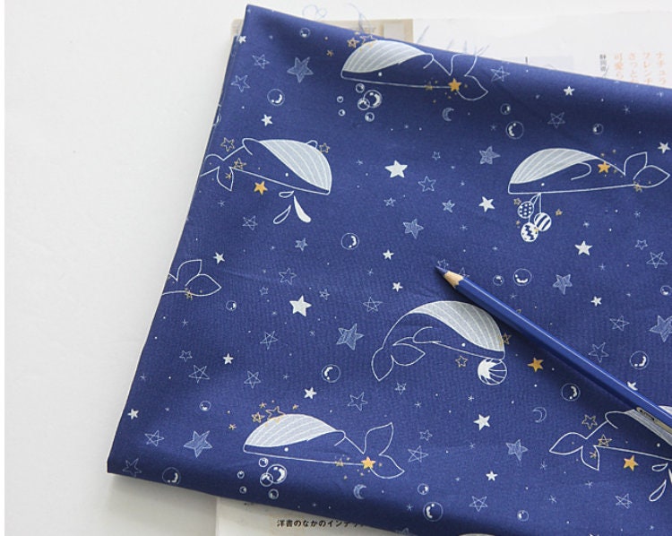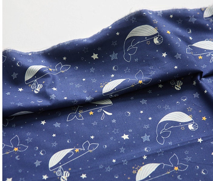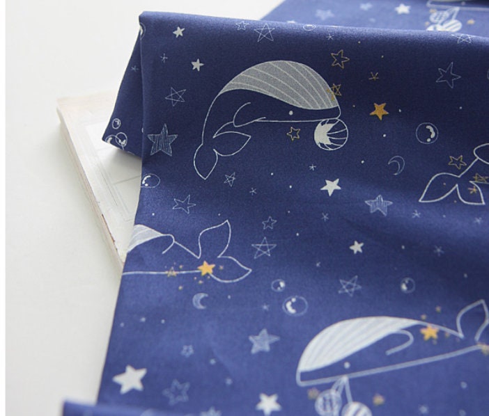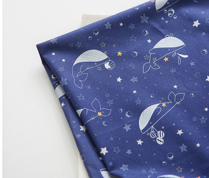 クジラの星柄生地、かわいい、子供用、裁縫、キルト - 韓国生地