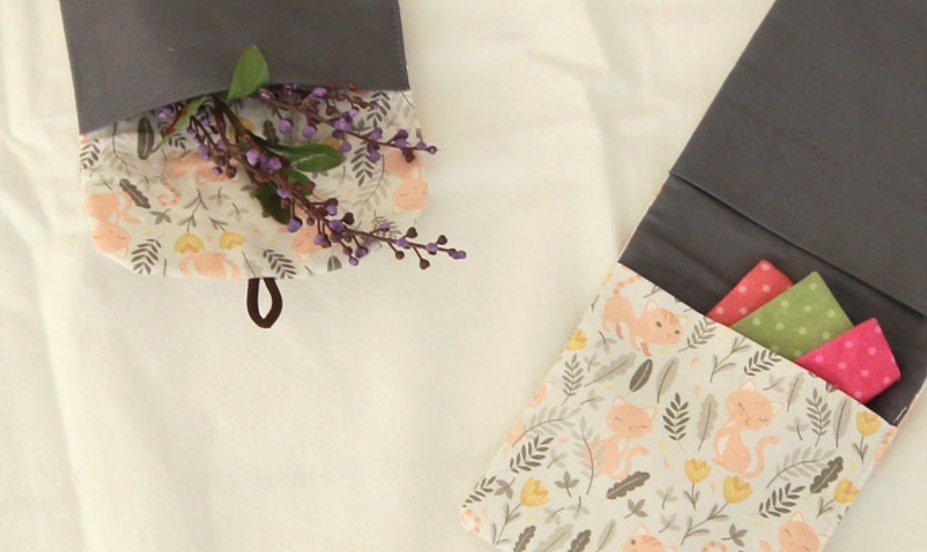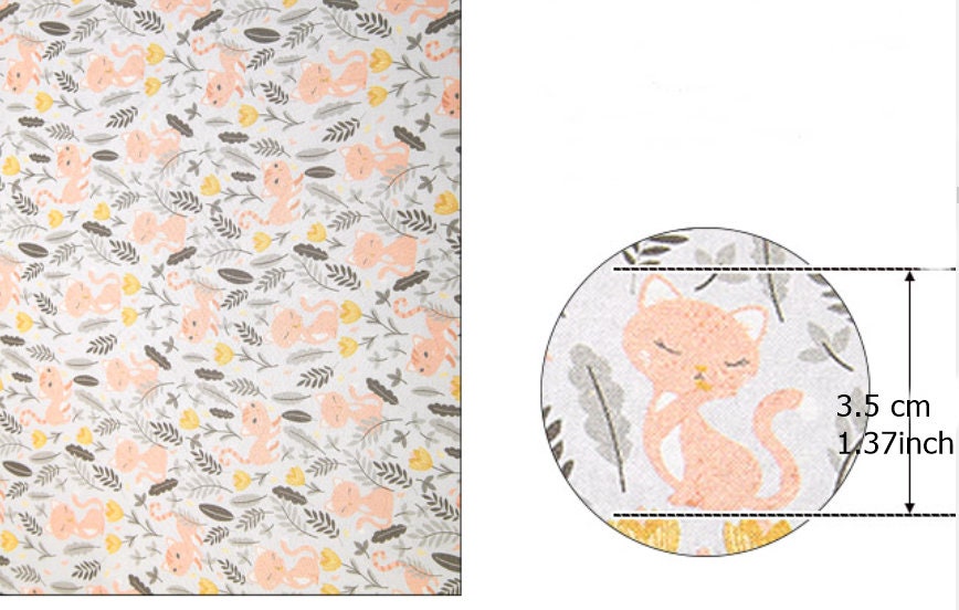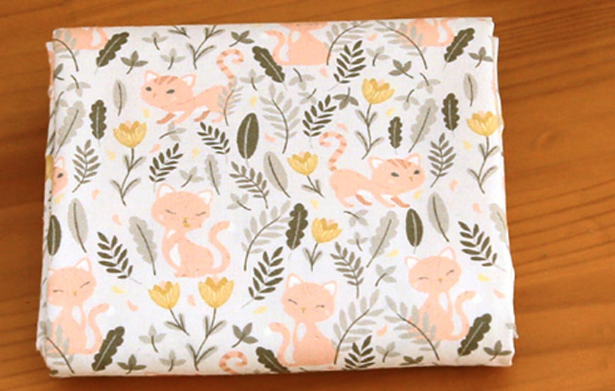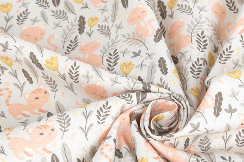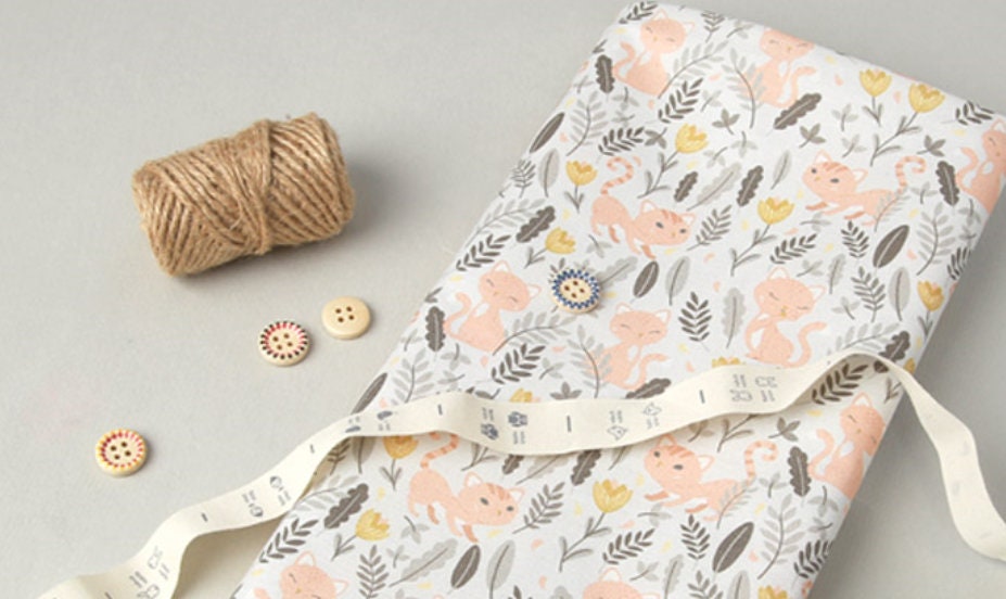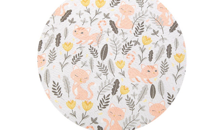 草原の花と猫の模様の生地 - 韓国の生地