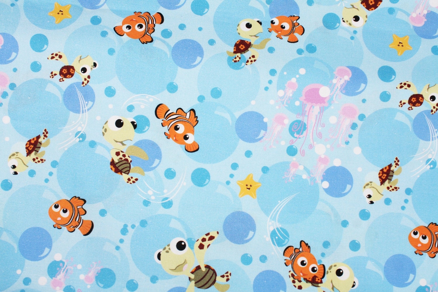 ディズニー ファインディング・ニモ ウミガメ スクワート 生地 韓国でプリント
