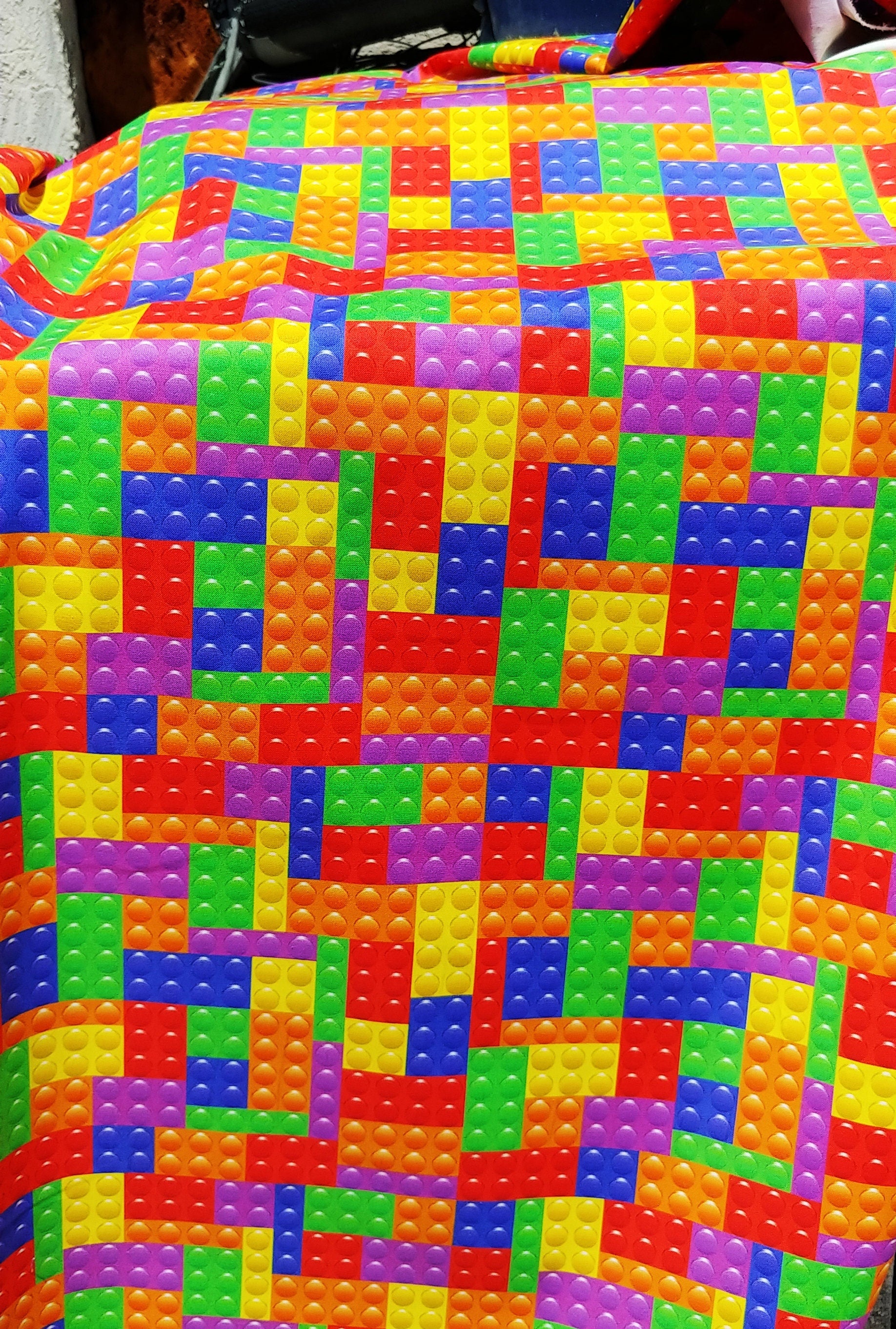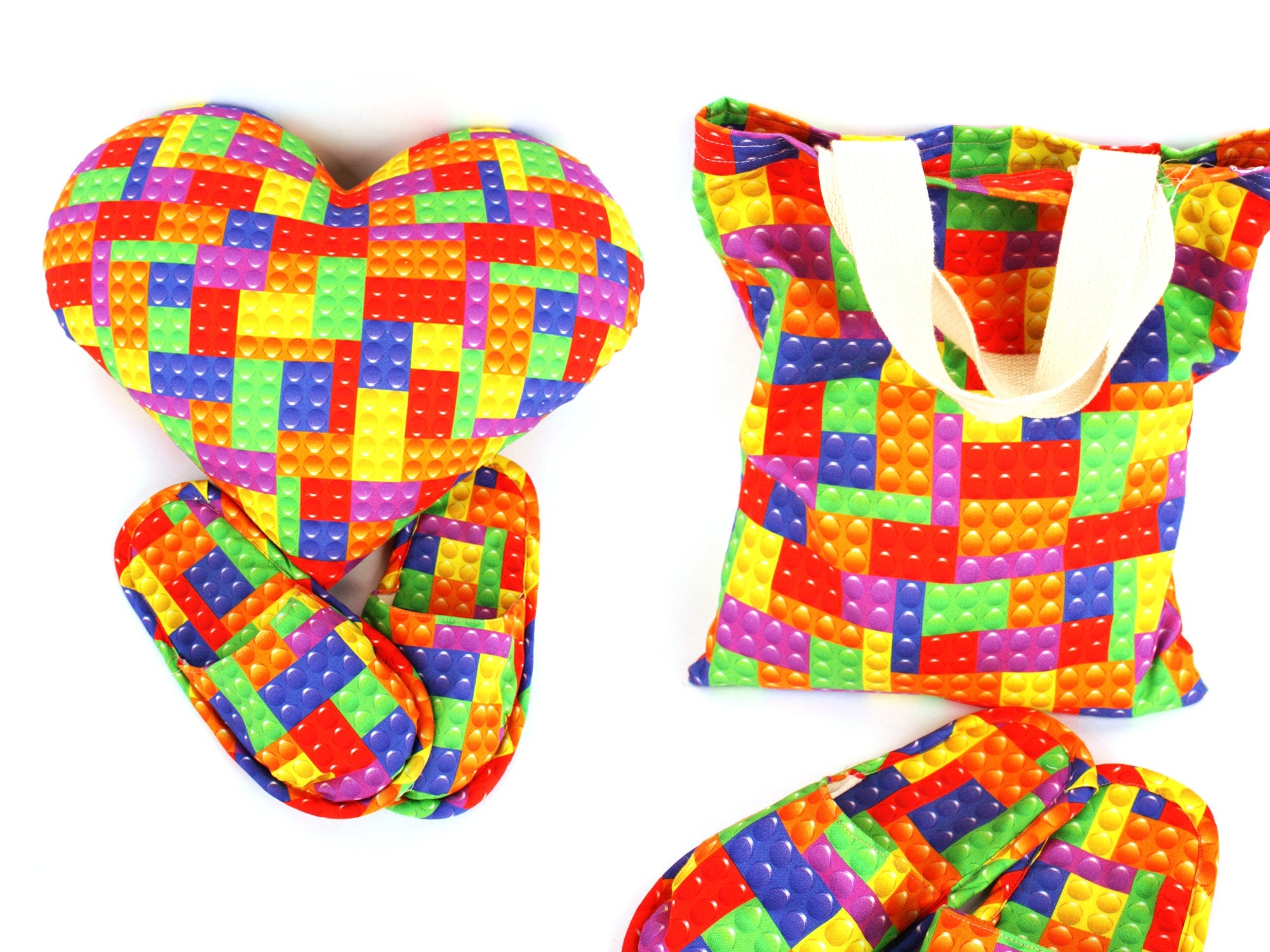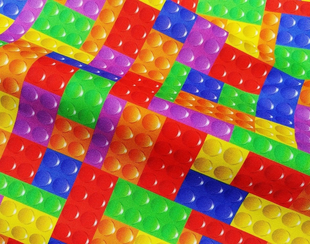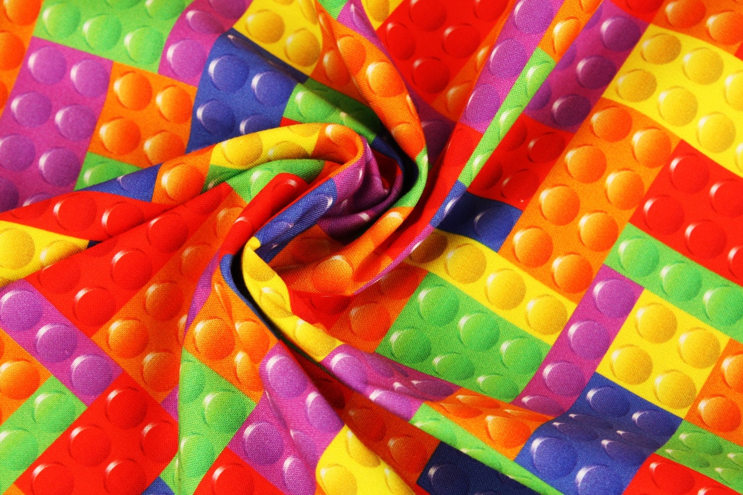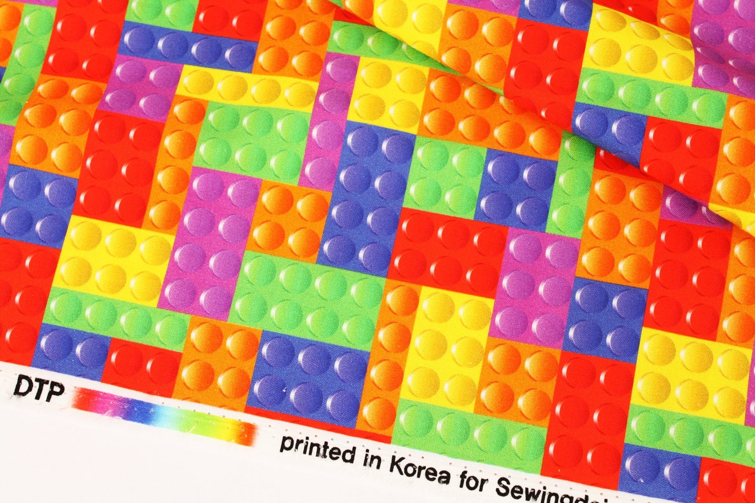 カラフルなブロックの建物柄生地 - 韓国の生地