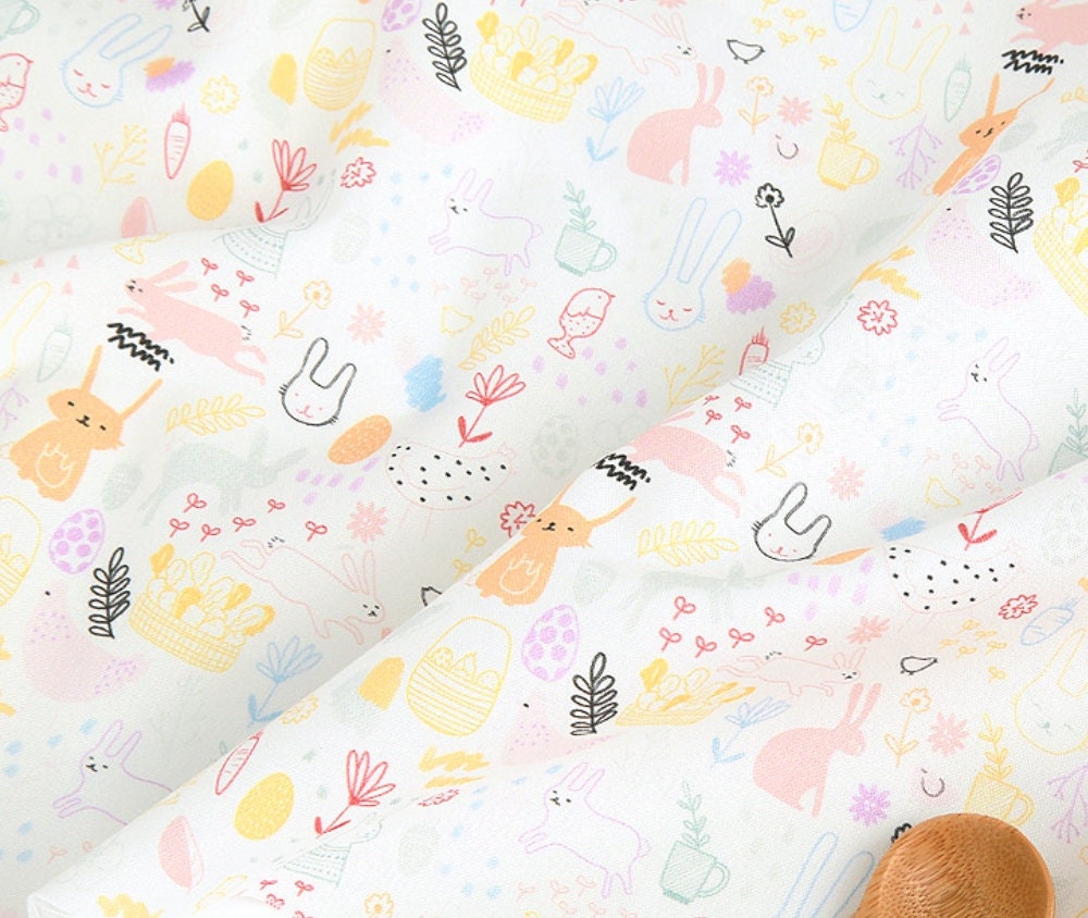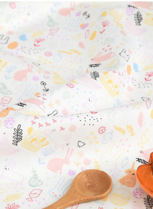 うさぎのうさぎ柄生地、かわいい、子供用、裁縫、キルト - 韓国生地