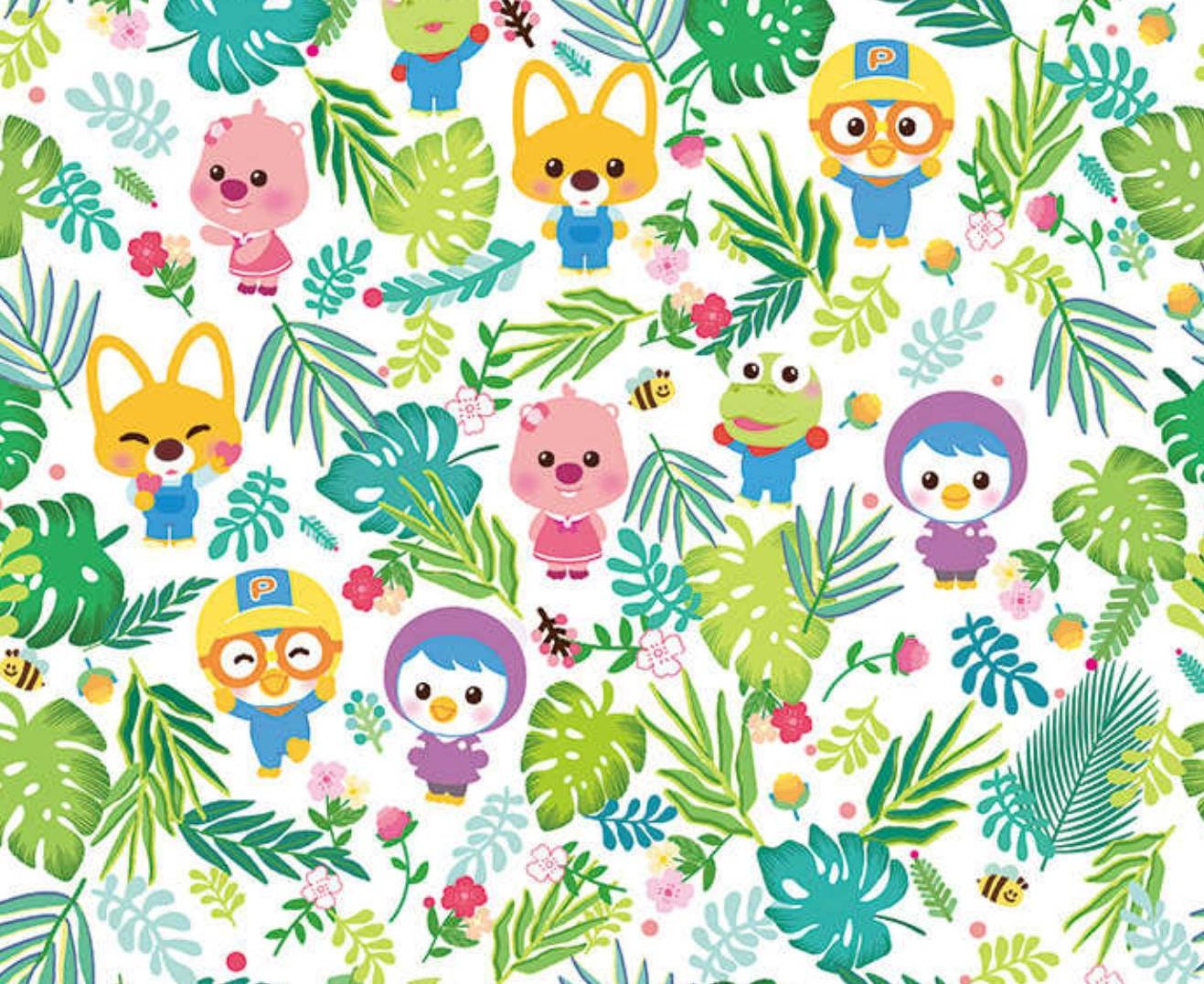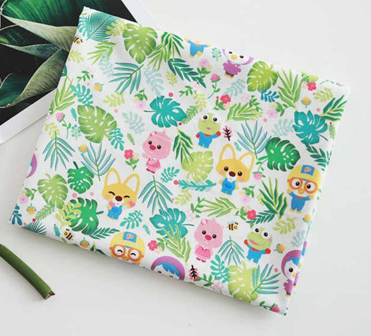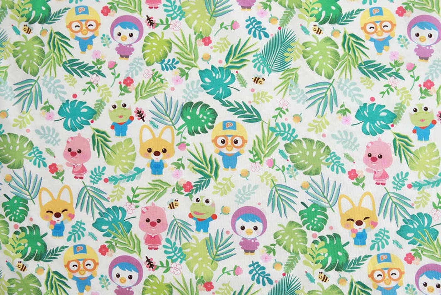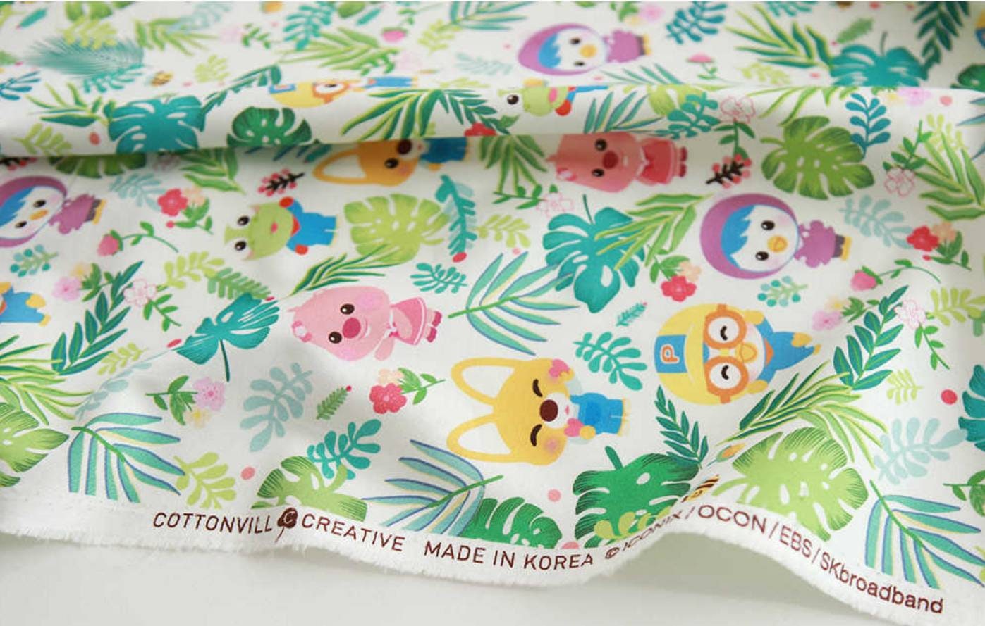 小さなペンギンのポロロ、クロン、エディ、ルーピー、ペティのキャラクター生地、韓国製、半ヤード