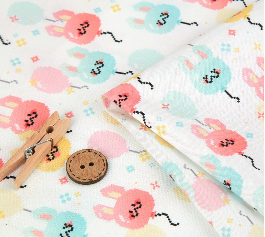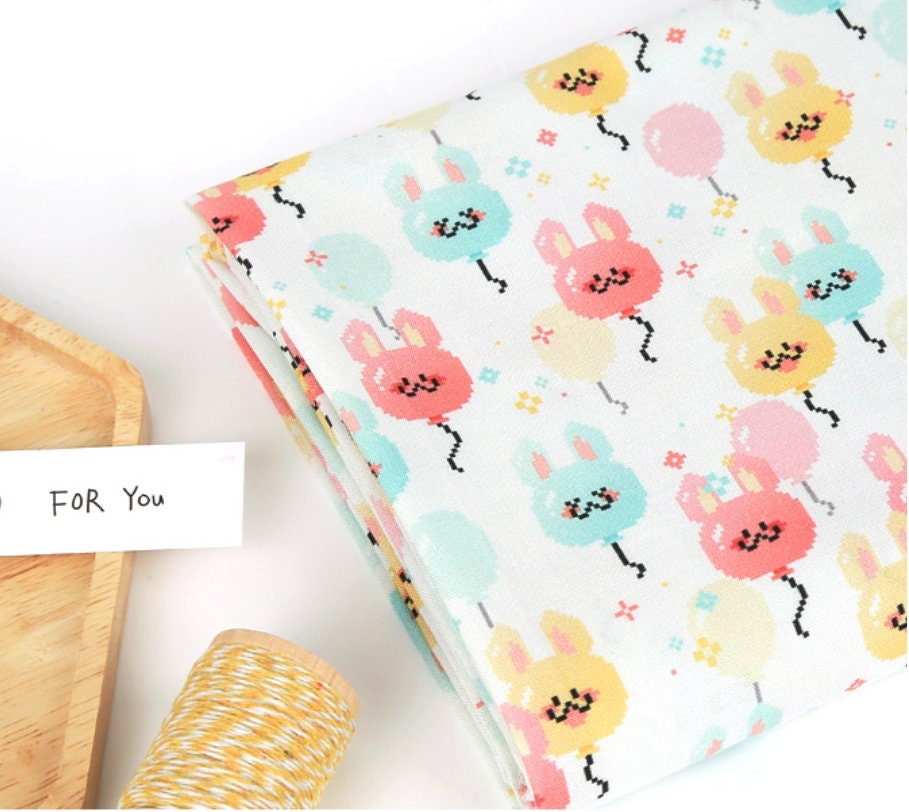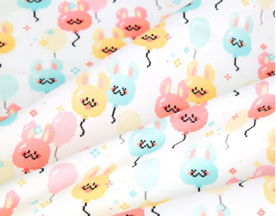 バルーンラビットバニー柄生地、かわいい、子供用、裁縫、キルト - 韓国生地