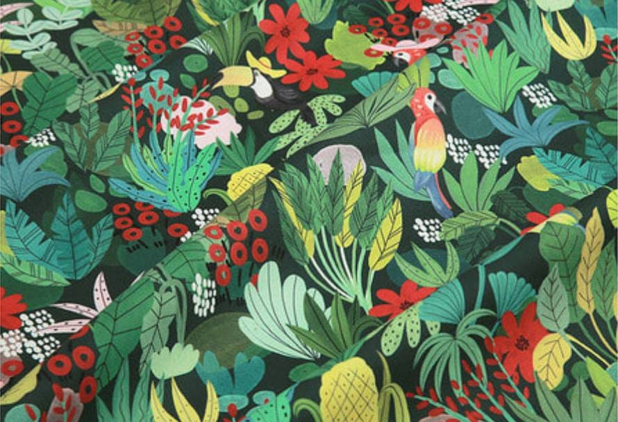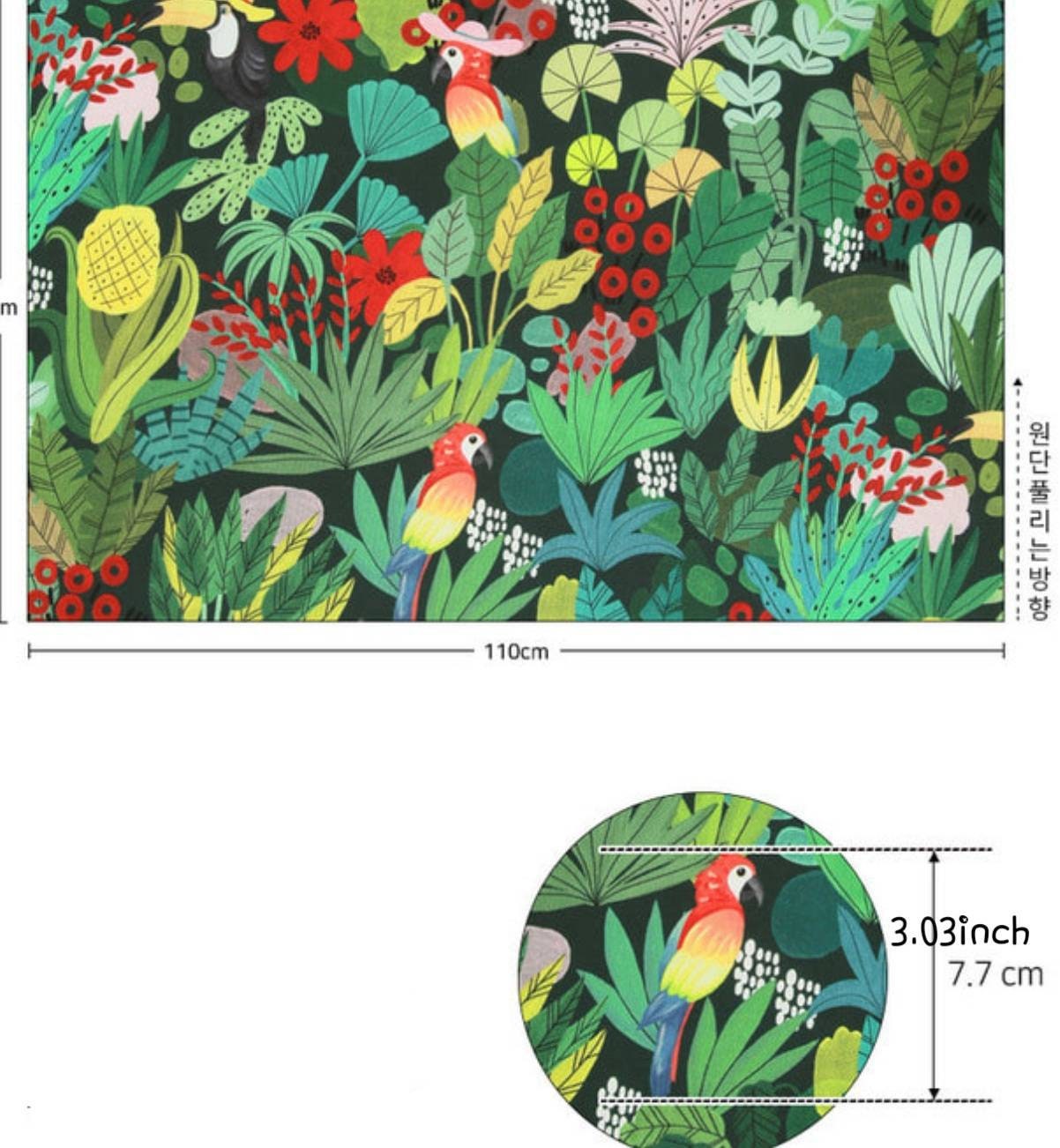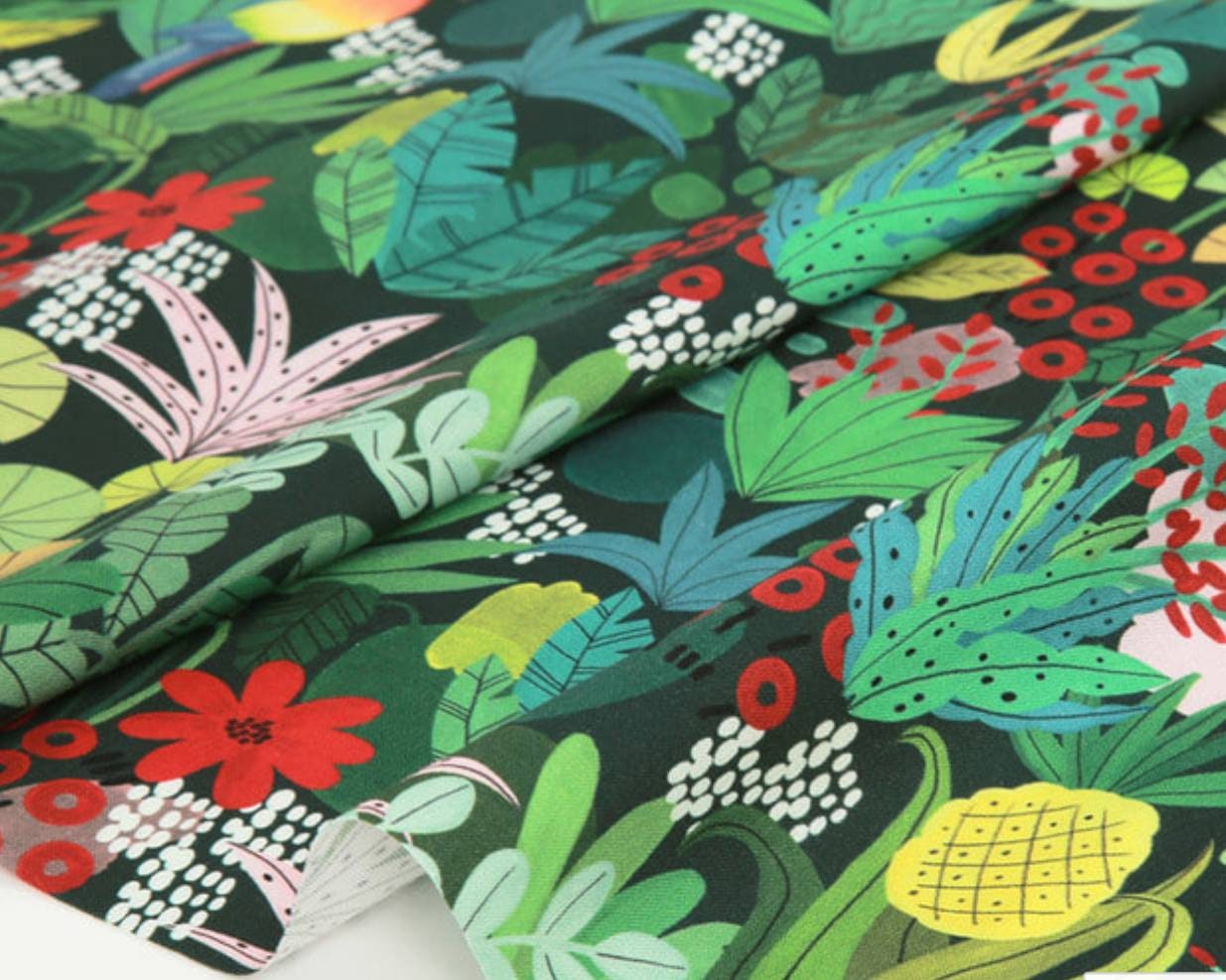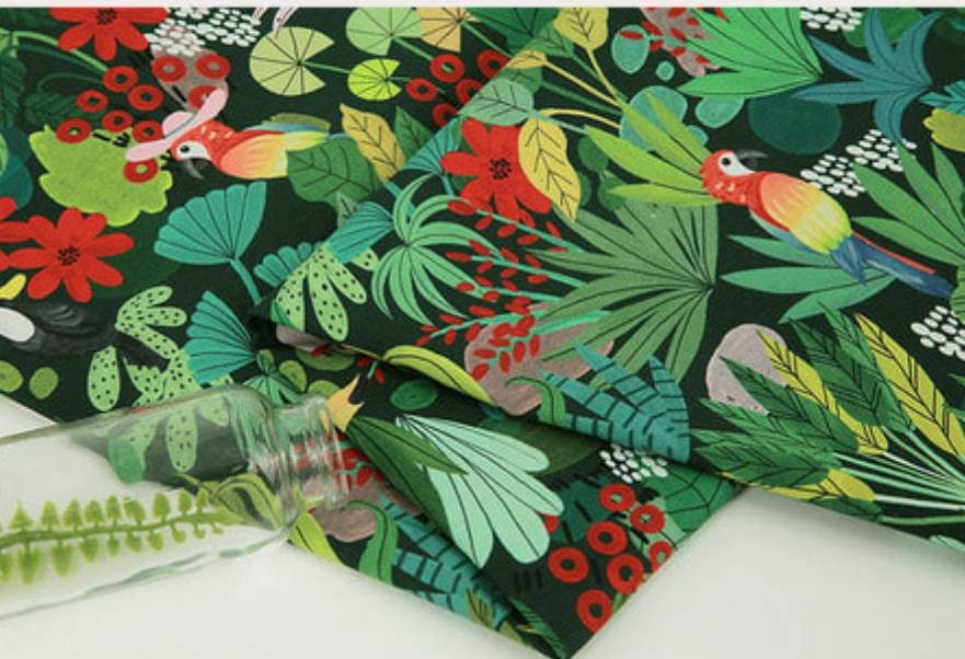 トロピカルリーフ柄生地、かわいい、裁縫、キルト - 韓国生地