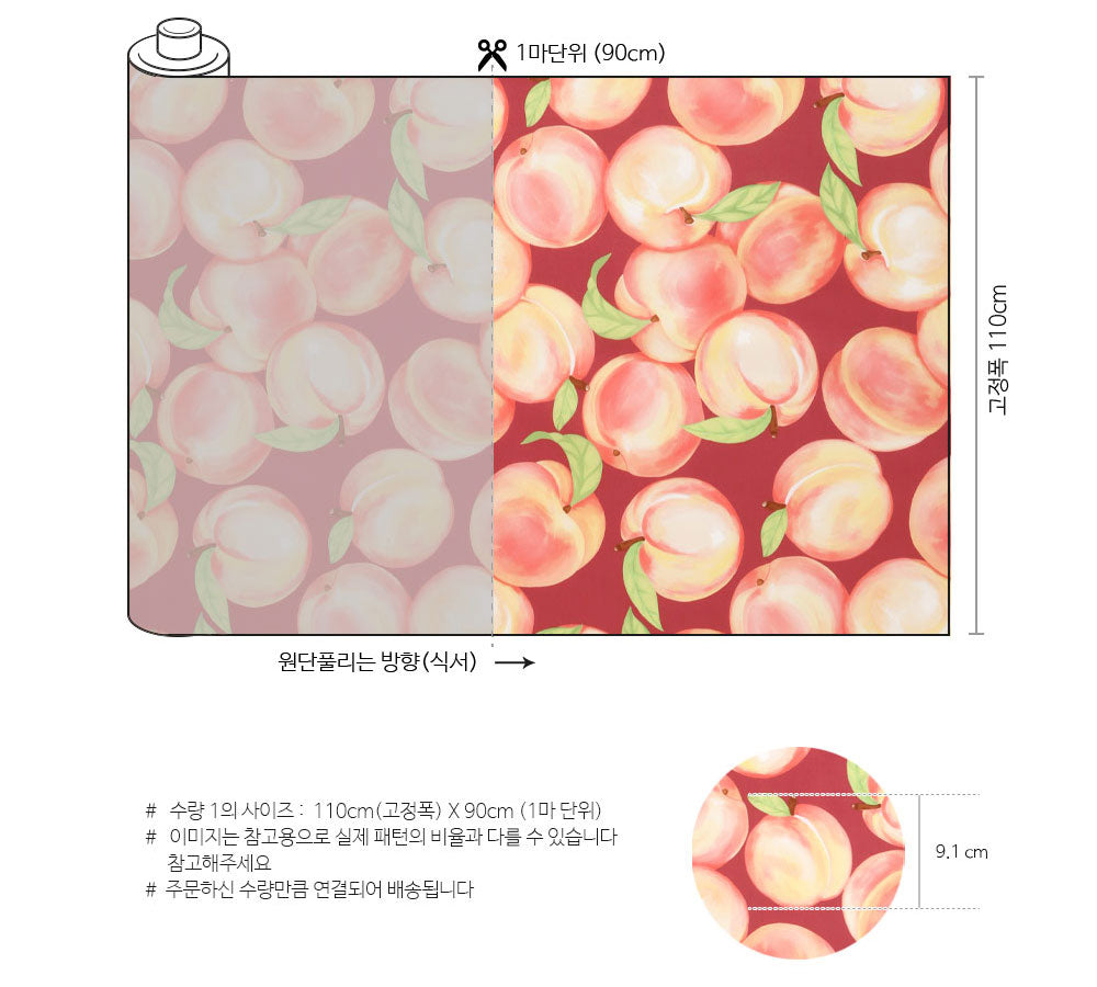 フルーツピーチ柄生地、かわいい、裁縫、キルト - 韓国生地