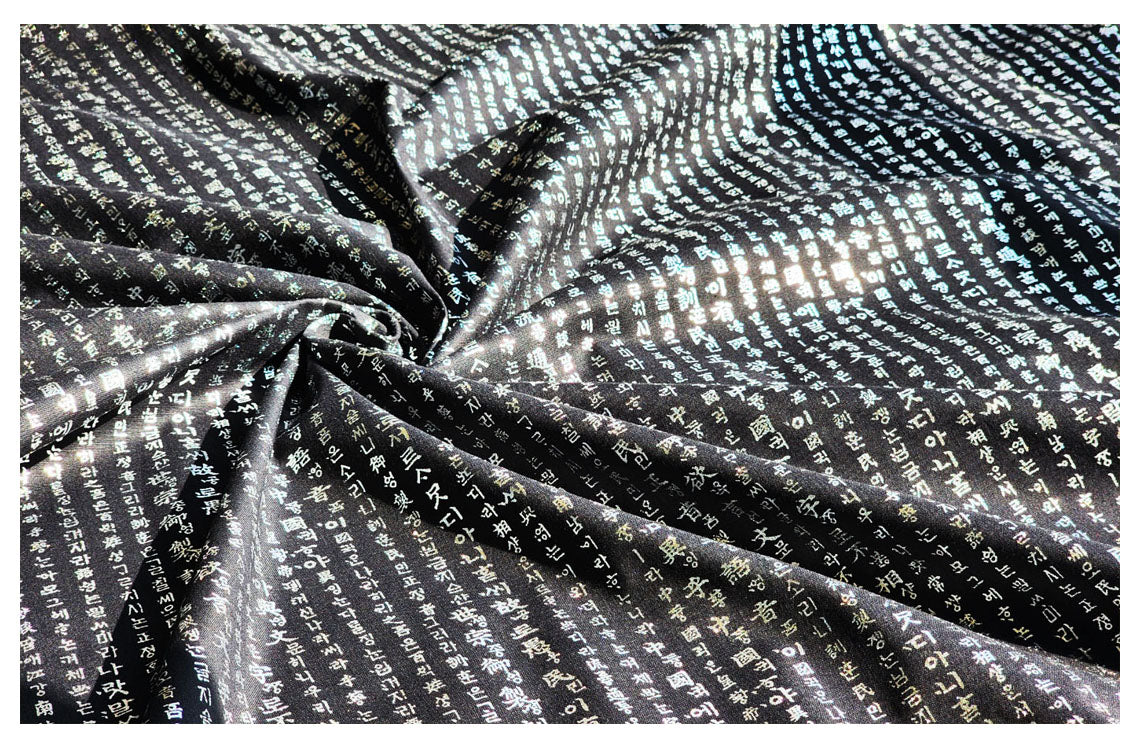 韓国語アルファベットハングル訓民正音世宗大王作黒と金のプリント生地韓国生地