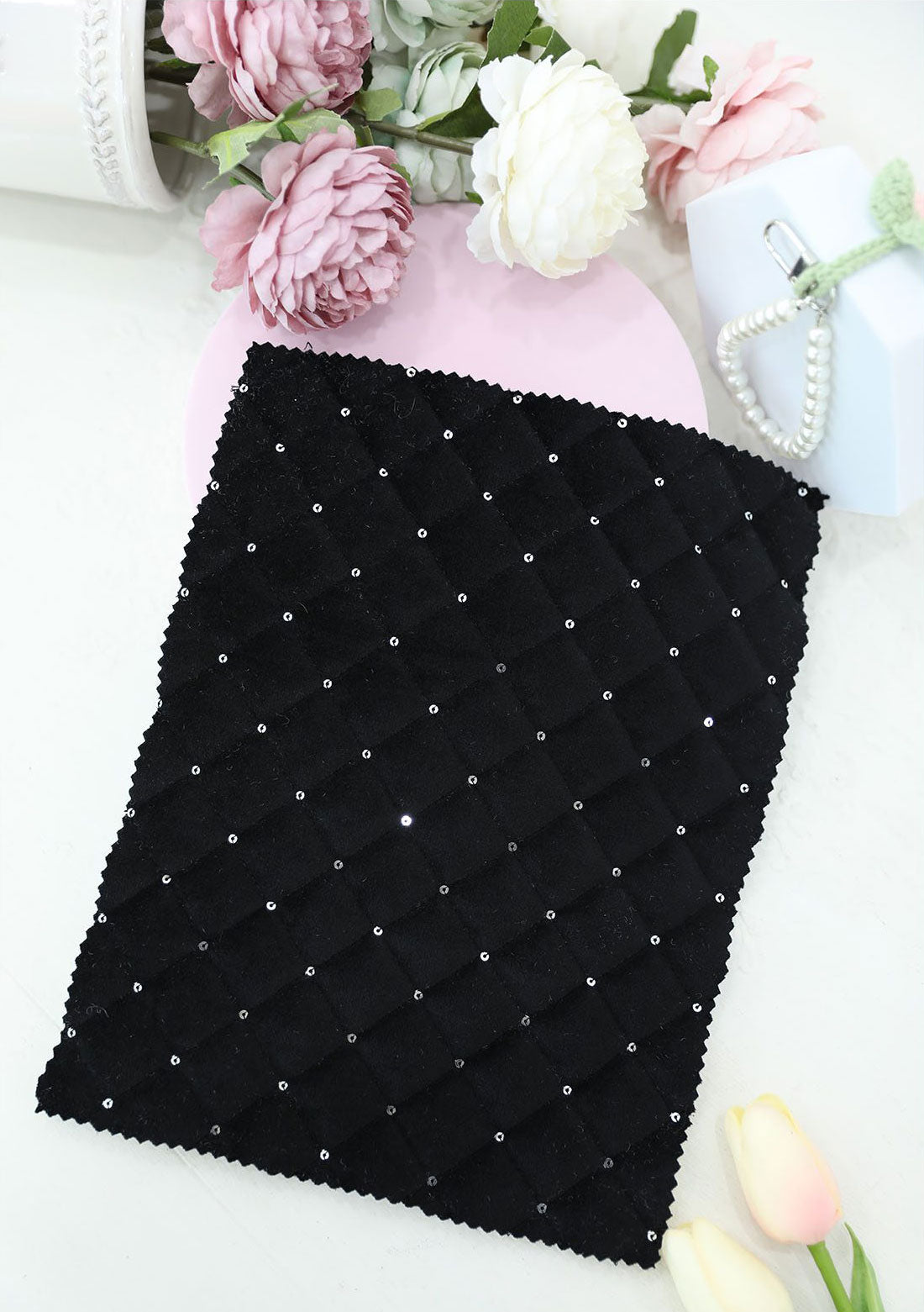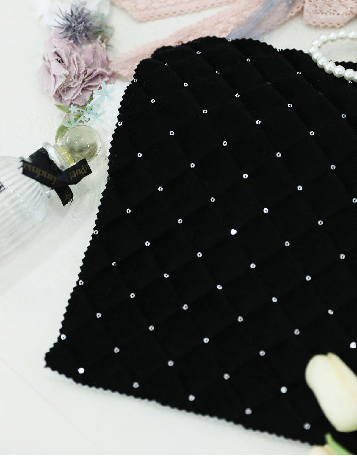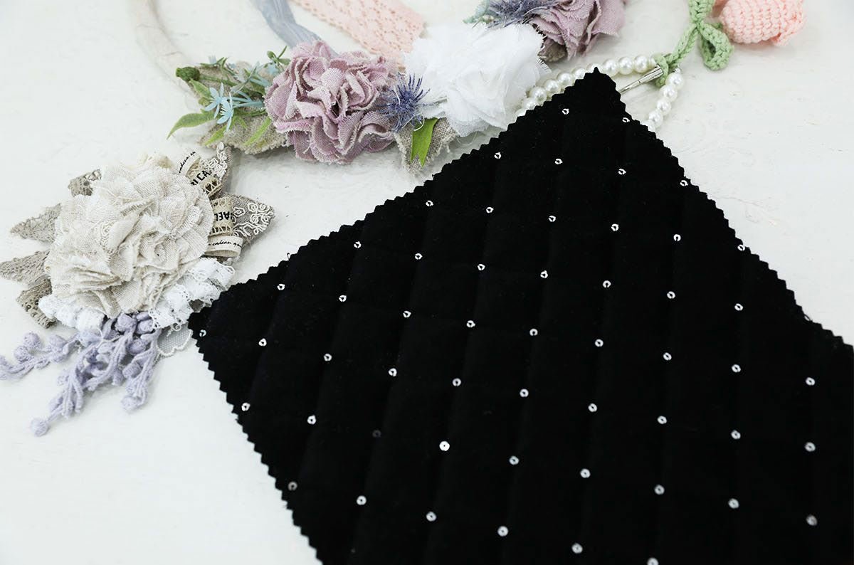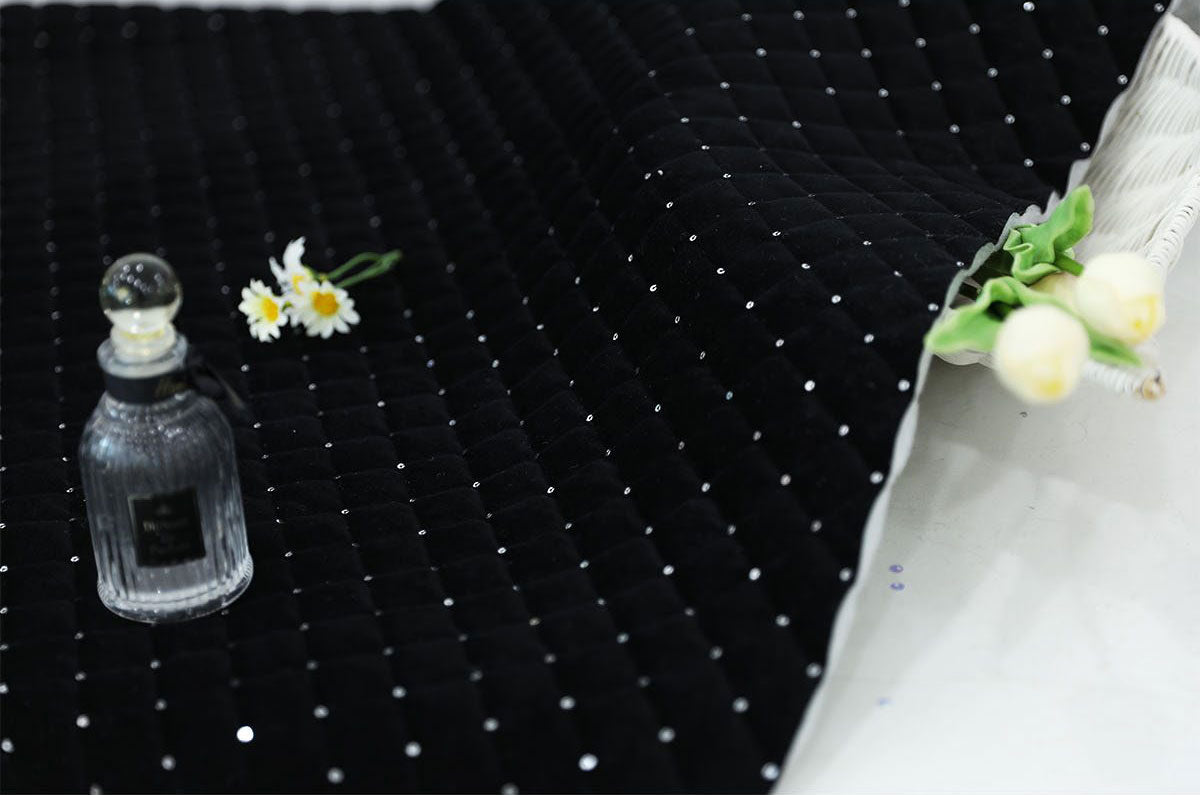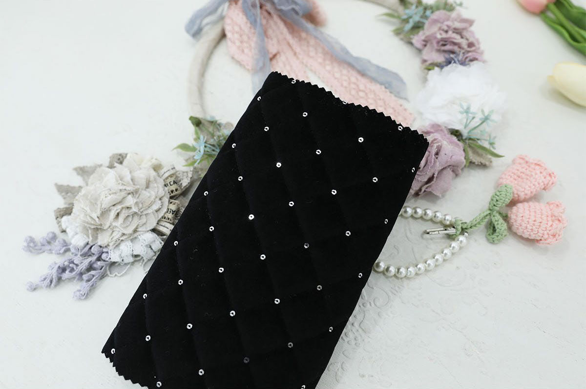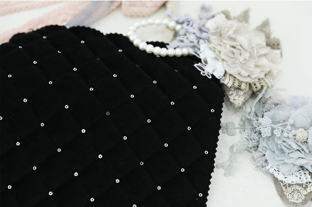 ホログラムオーロラグリッターダイヤモンドグリッドパターンポリエステルキルティングヌビ生地 - 韓国生地