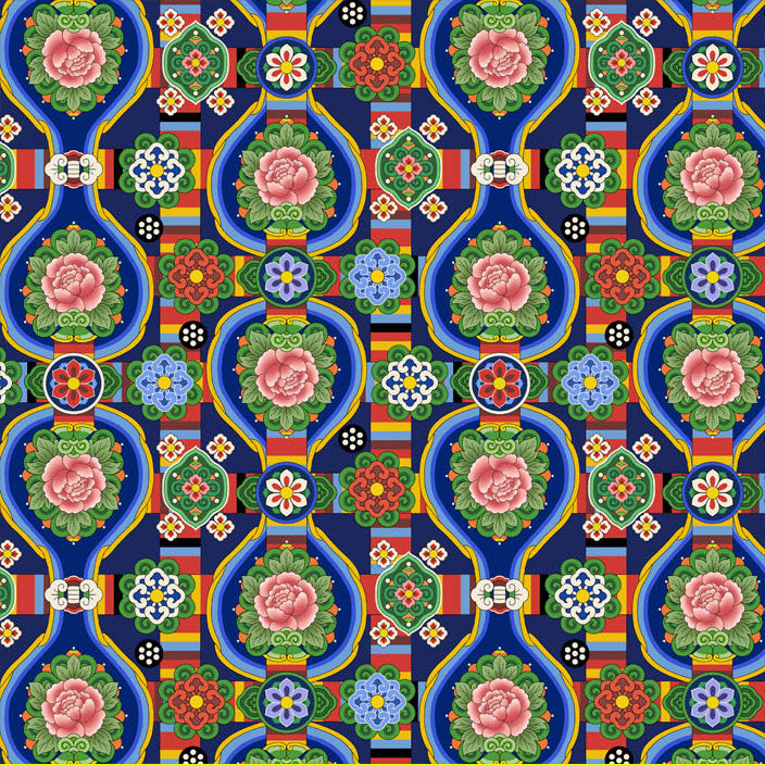 韓国の伝統的なデザインの六角形の螺鈿ジャガエ柄の生地 韓国の生地