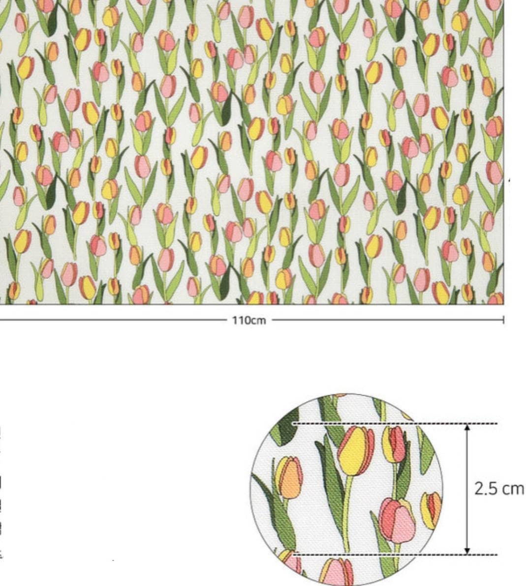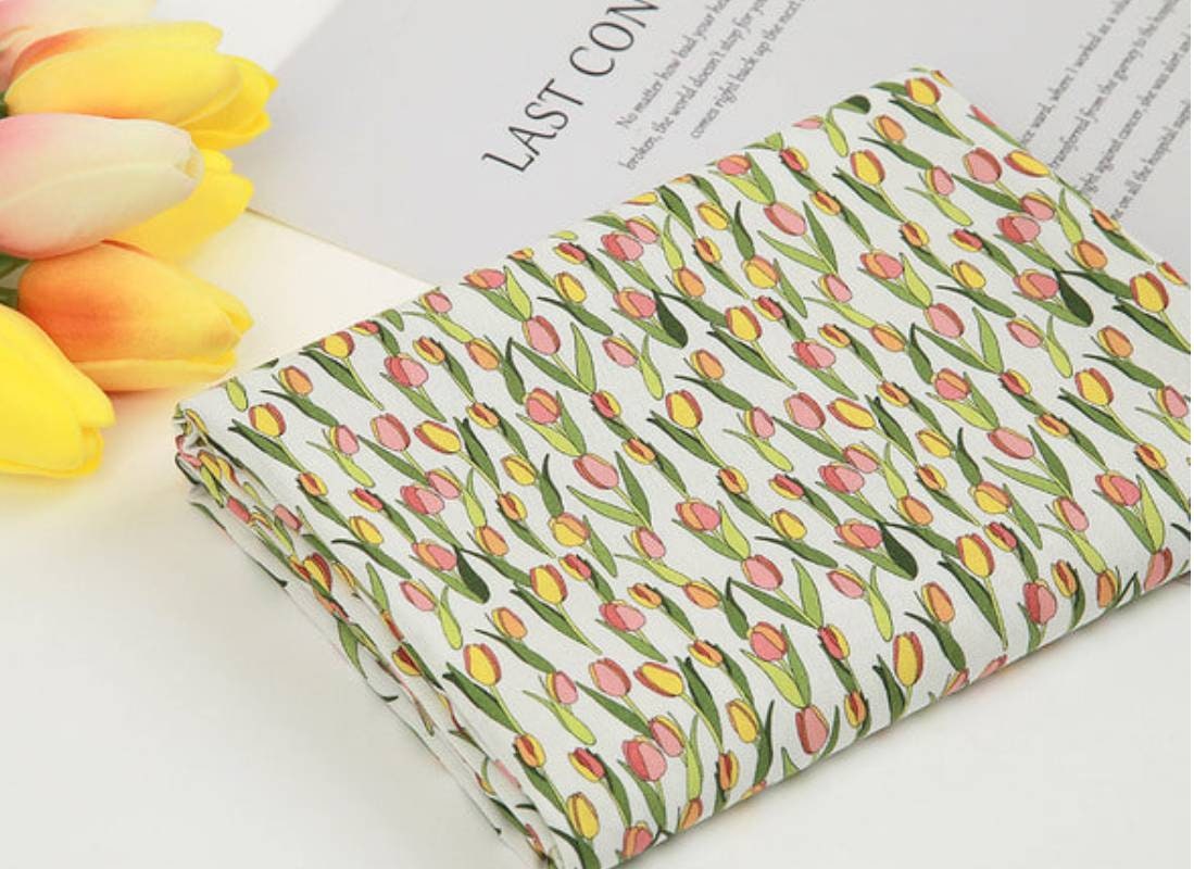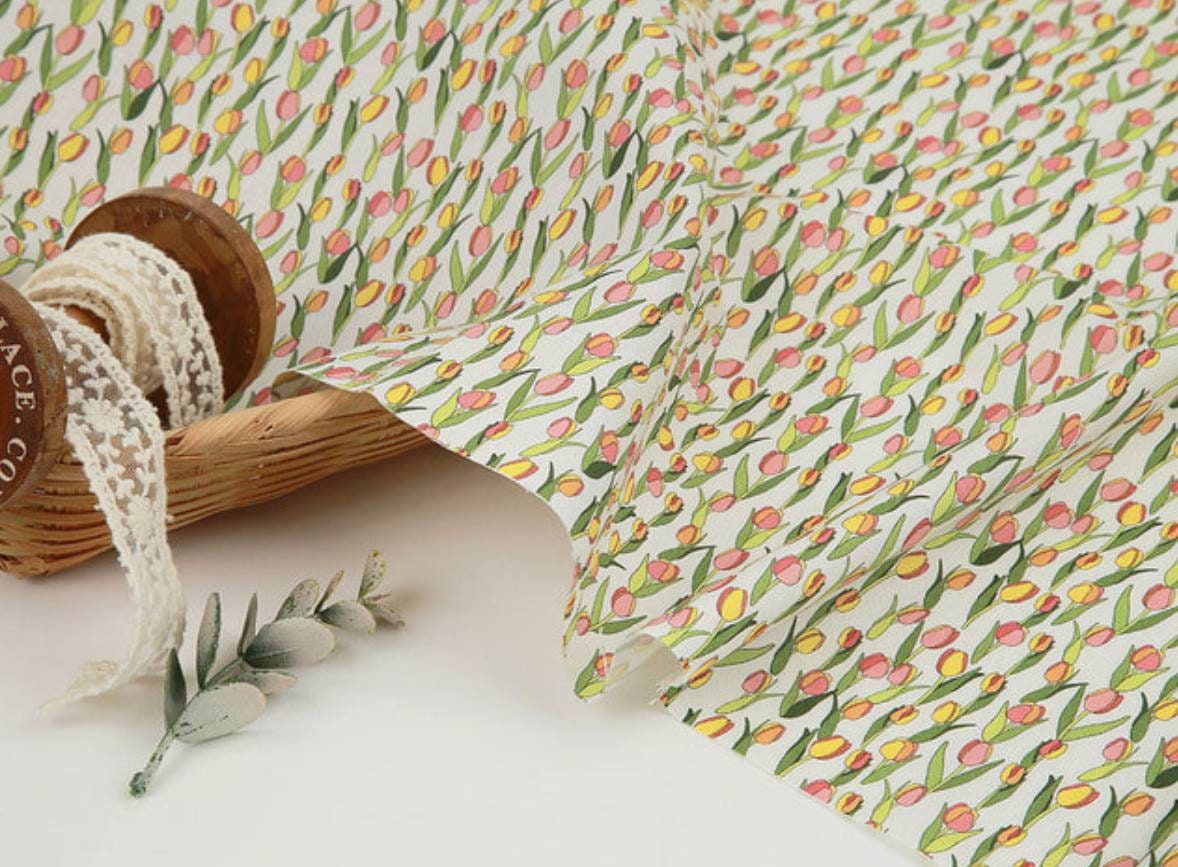 チューリップの花柄生地、かわいい、裁縫、キルト - 韓国の生地