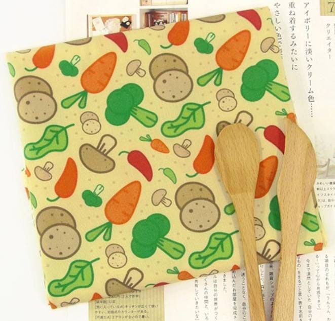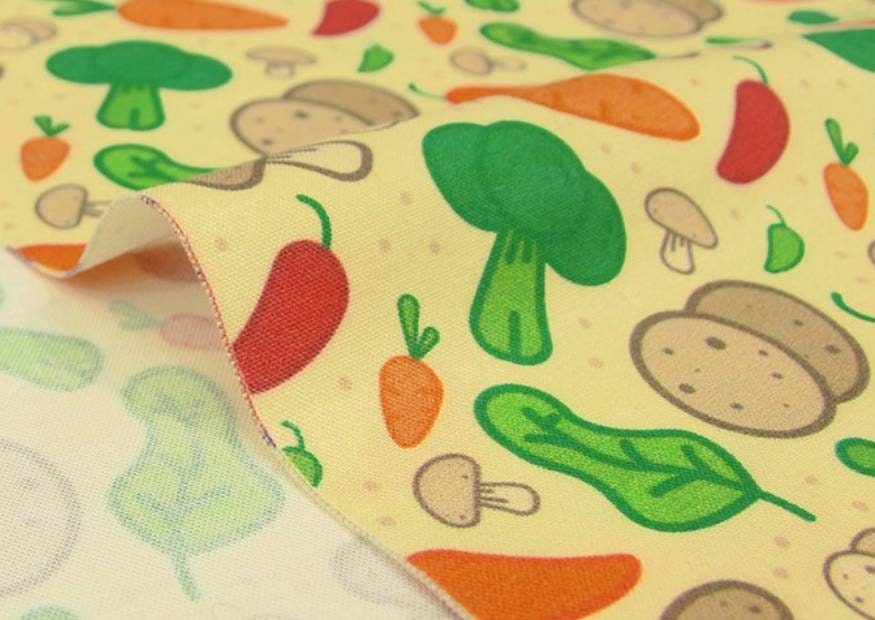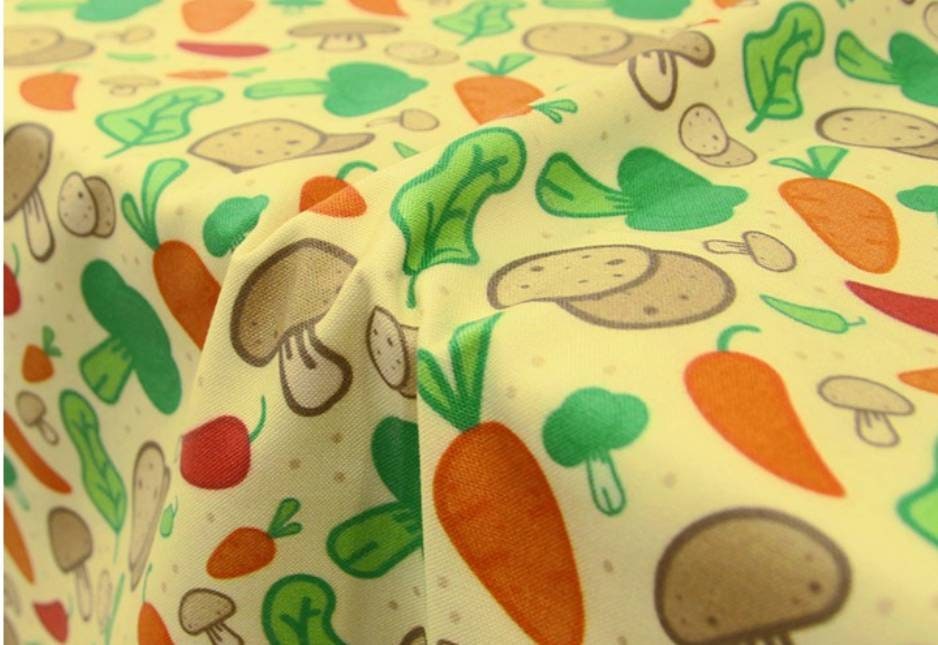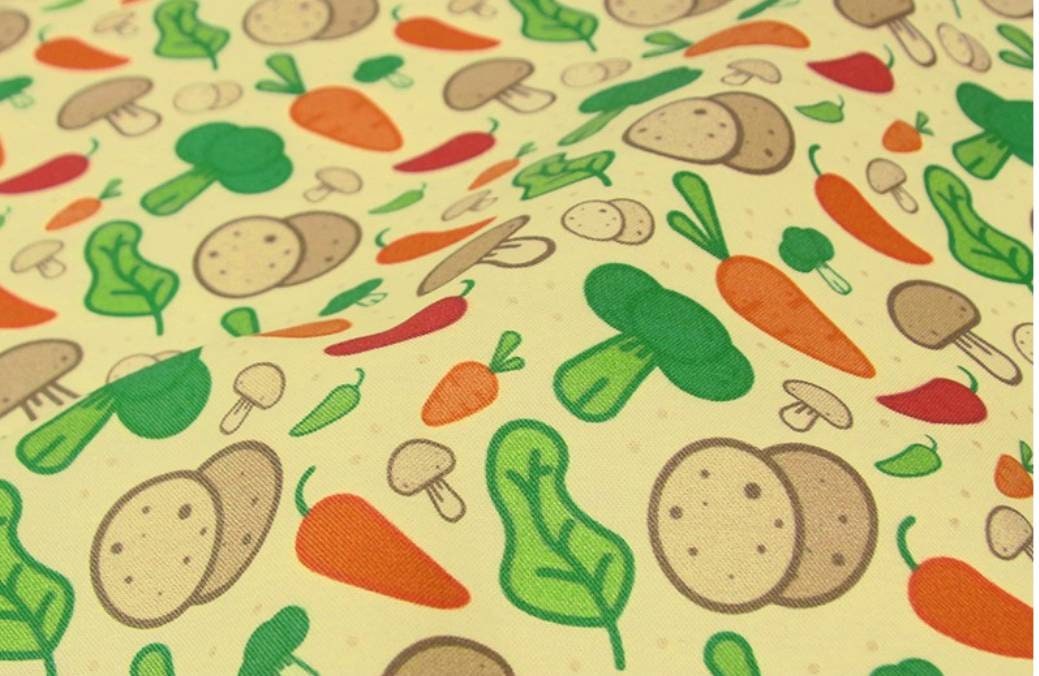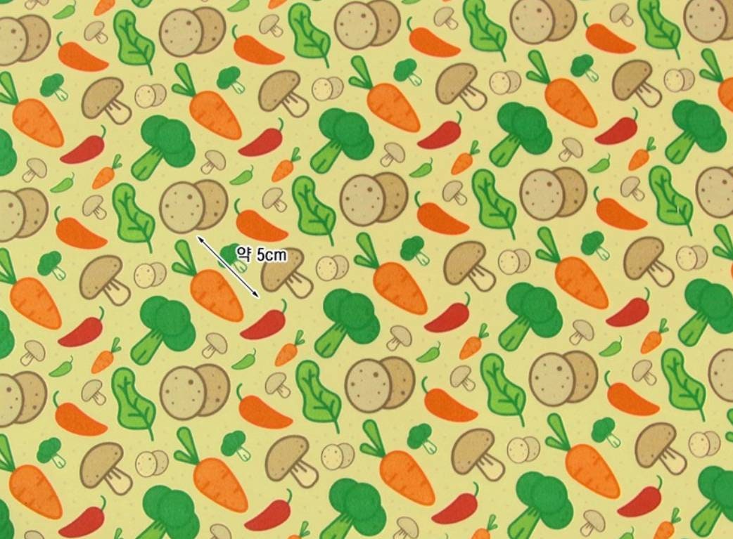 野菜、キノコ、ジャガイモ、ニンジン、ブロッコリー、唐辛子柄の生地、かわいい、子供、裁縫、キルト - 韓国の生地