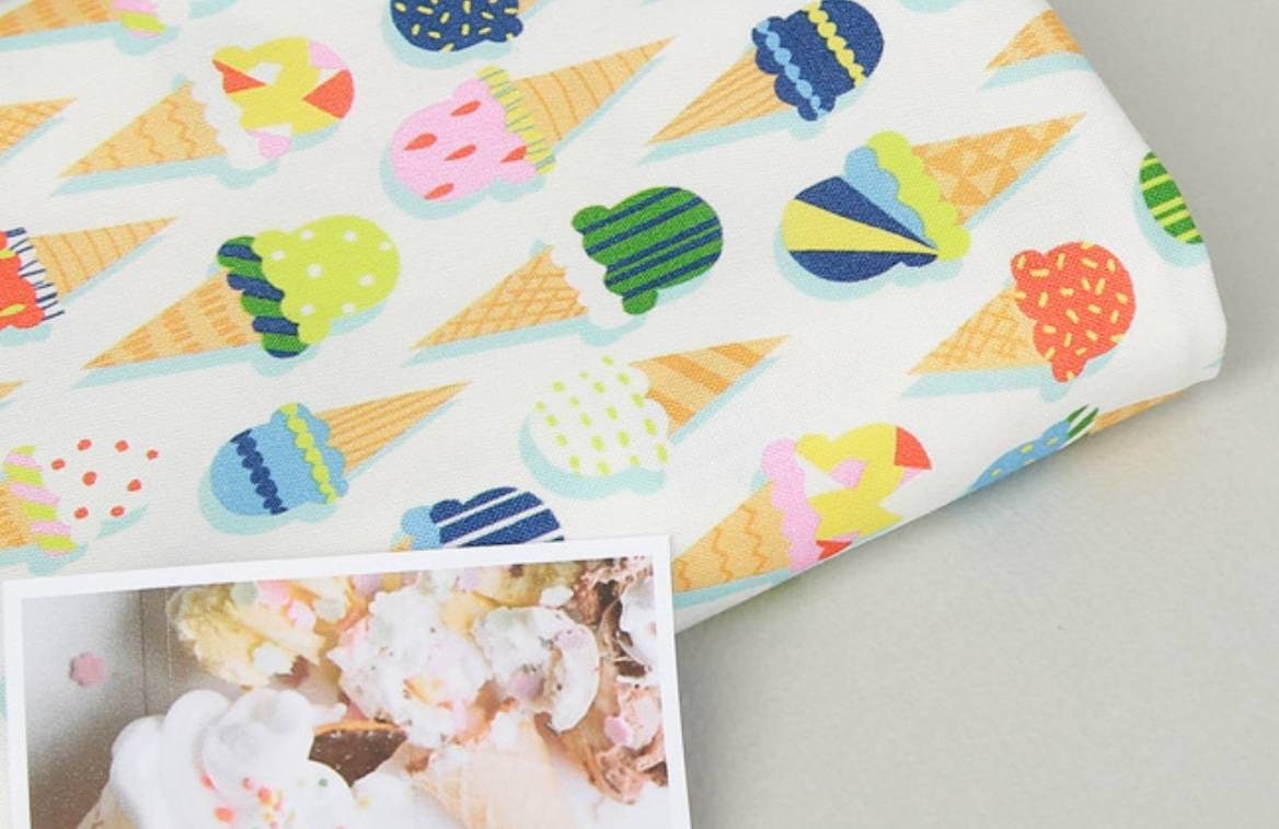 アイスクリーム柄の生地、かわいい、子供用、裁縫、キルト - 韓国の生地