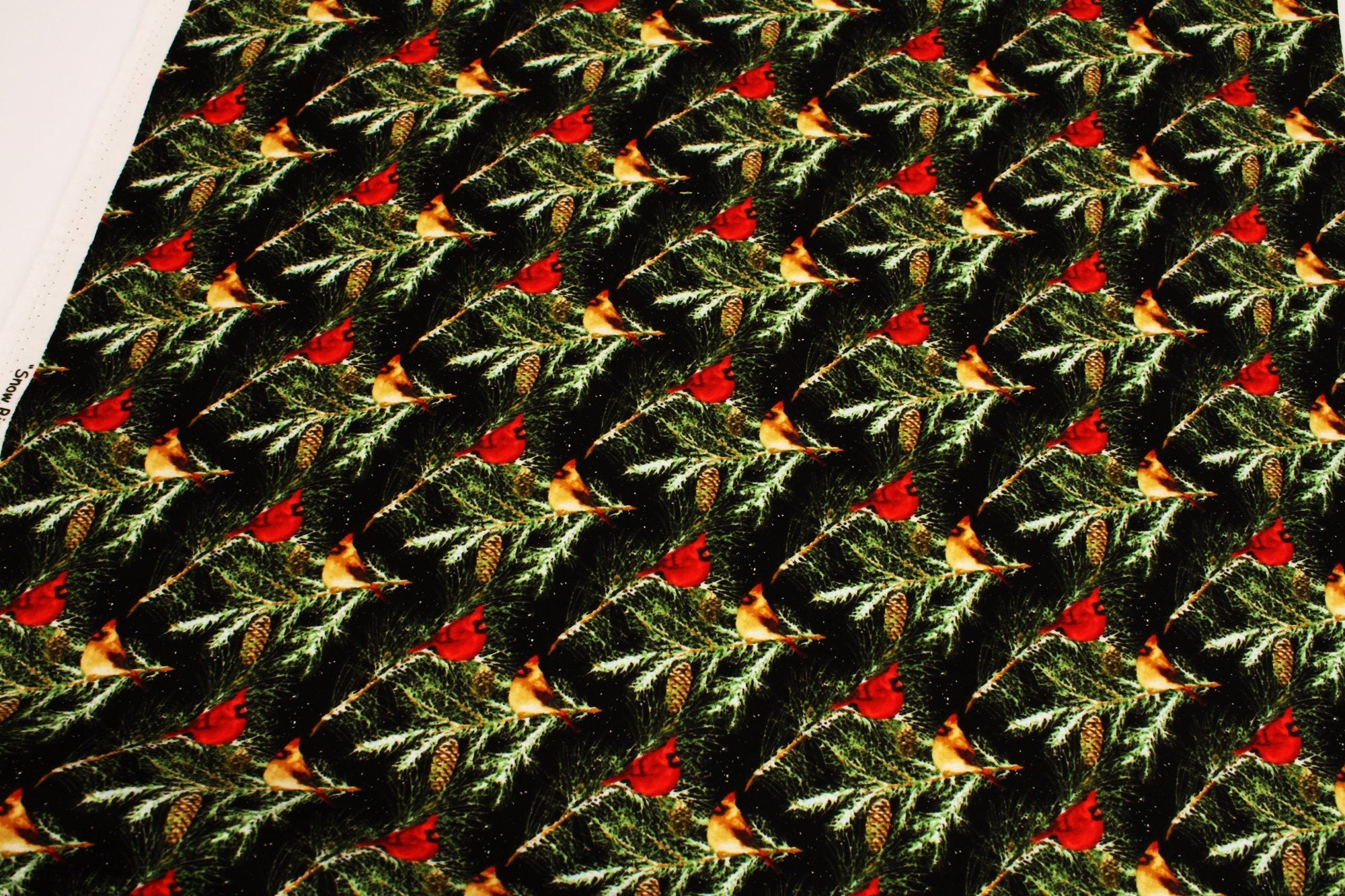 フランネル スノー バード カーディナルズ ファー ツリー クリスマス 作者: Barb Tourtillote