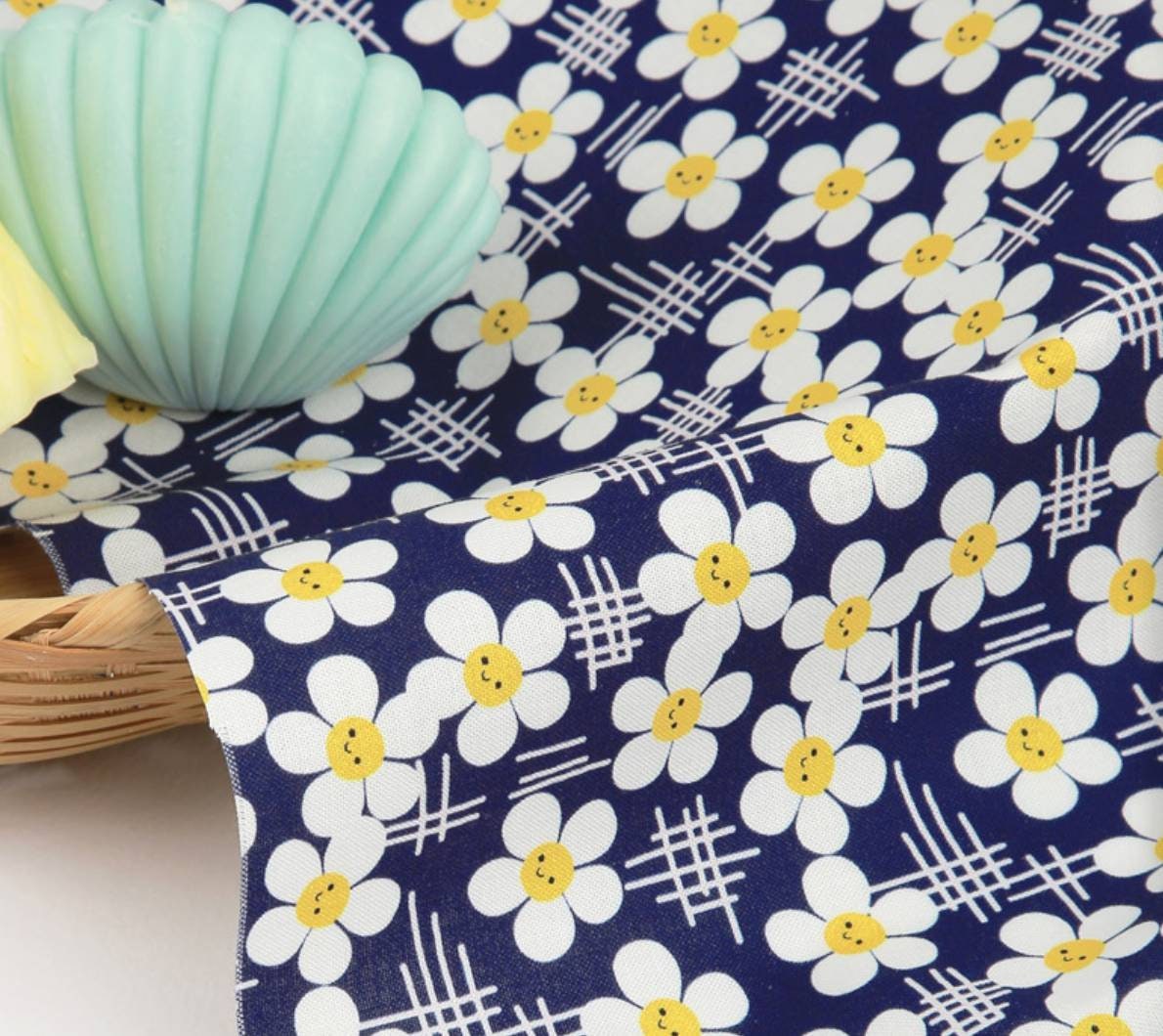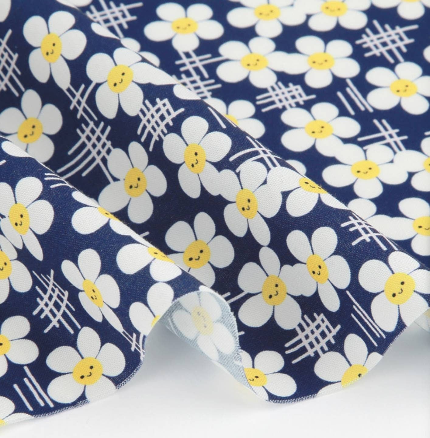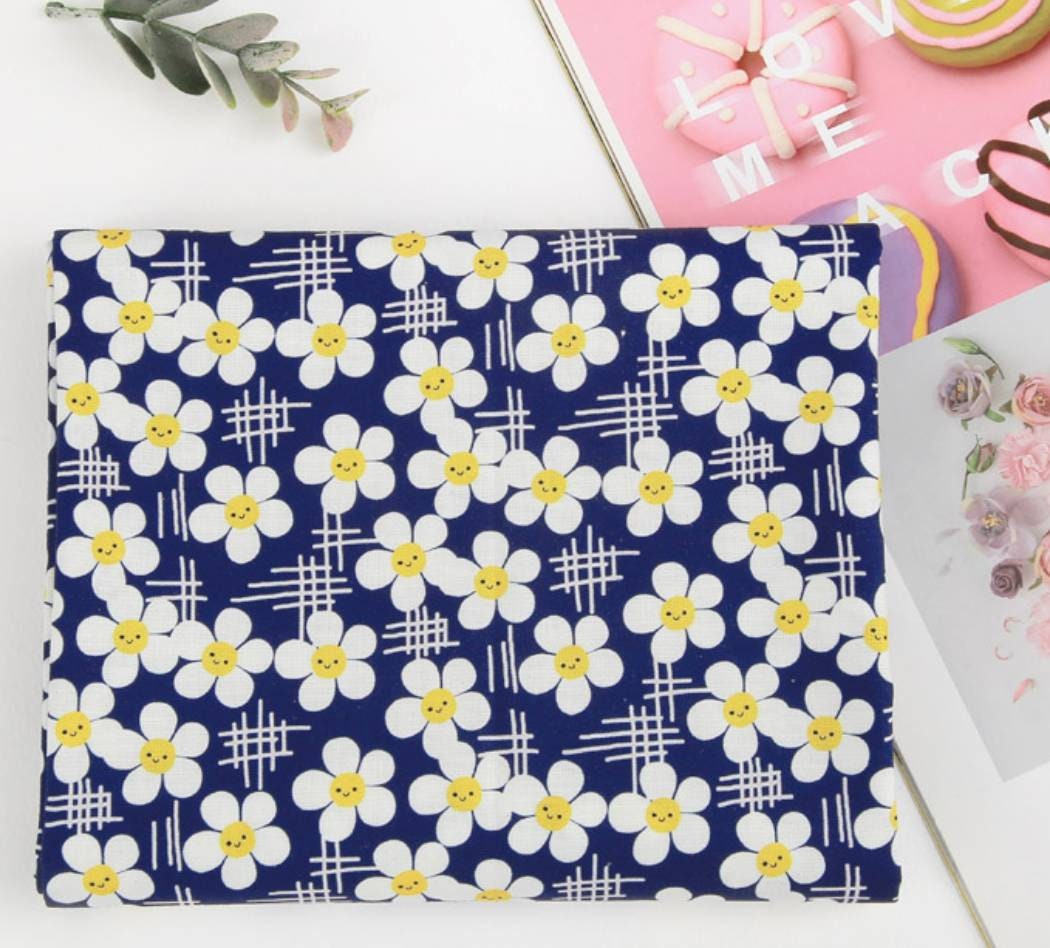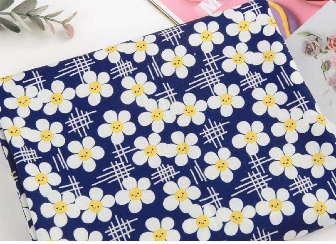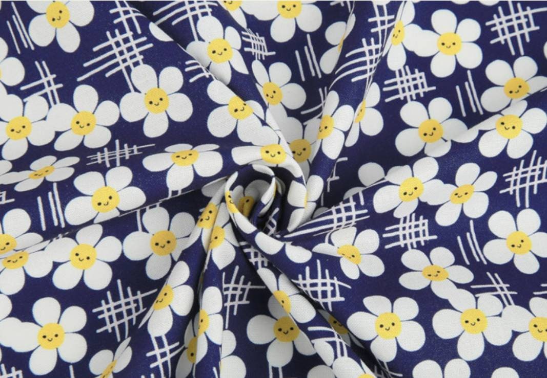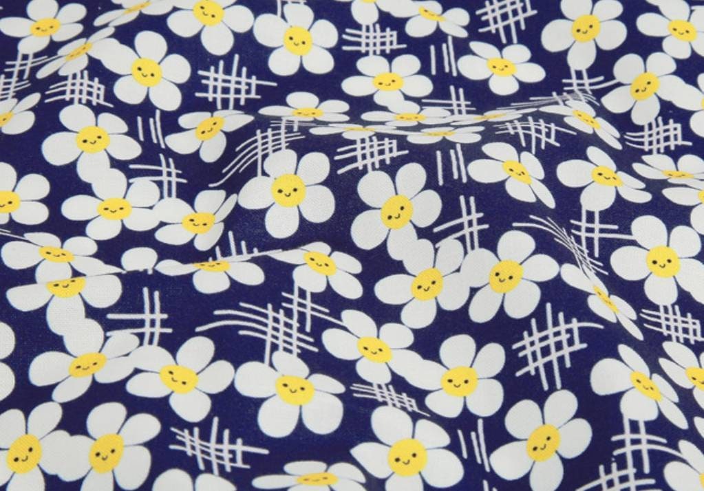 スマイルデイジーフラワー花柄生地(韓国製、半ヤード単位)