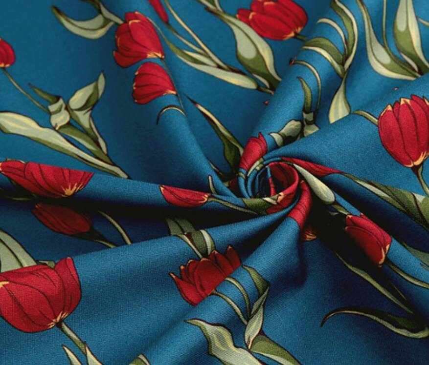 この生地はDTP(デジタルテキスタイルプリント)方式で印刷されています