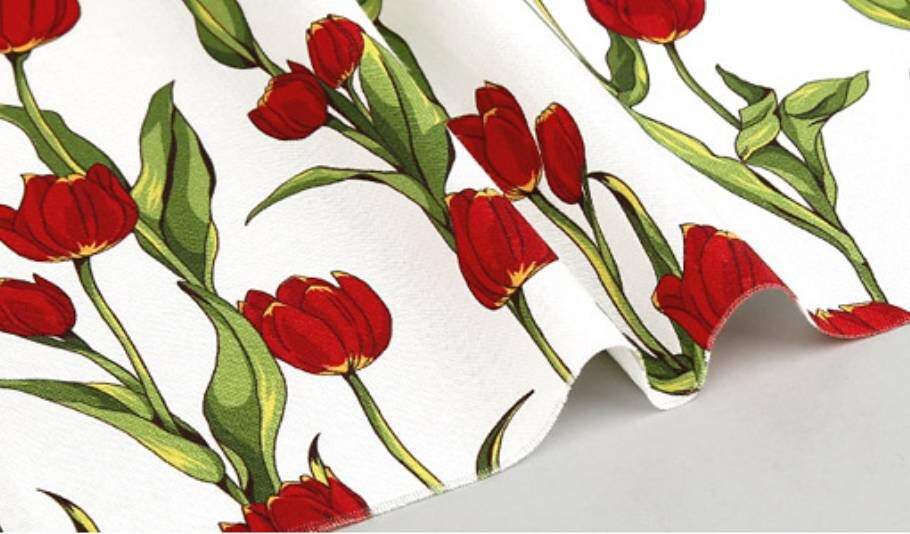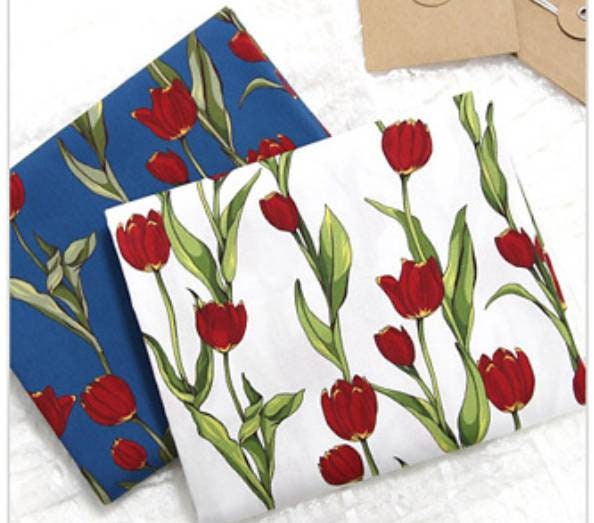 チューリップの花柄生地、かわいい、裁縫、キルト - 韓国の生地
