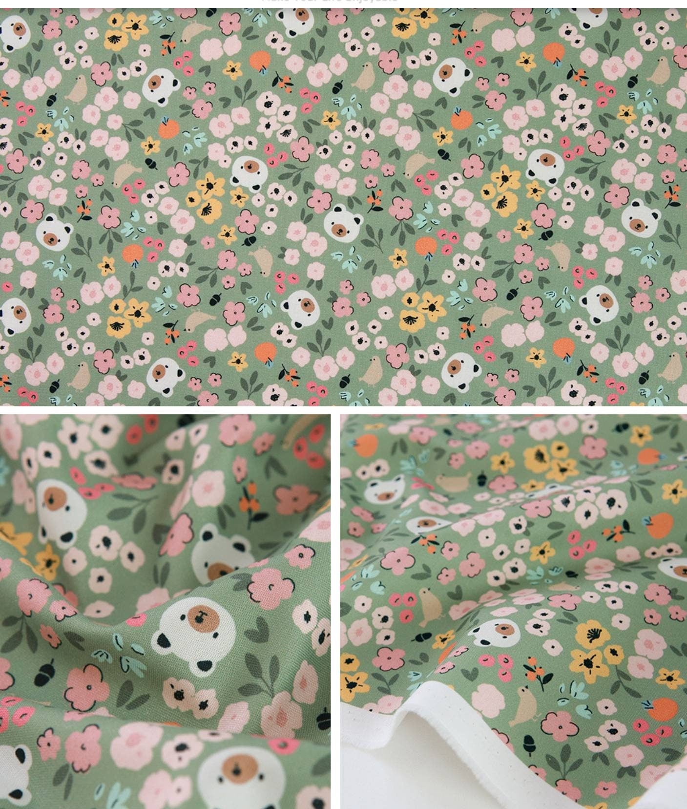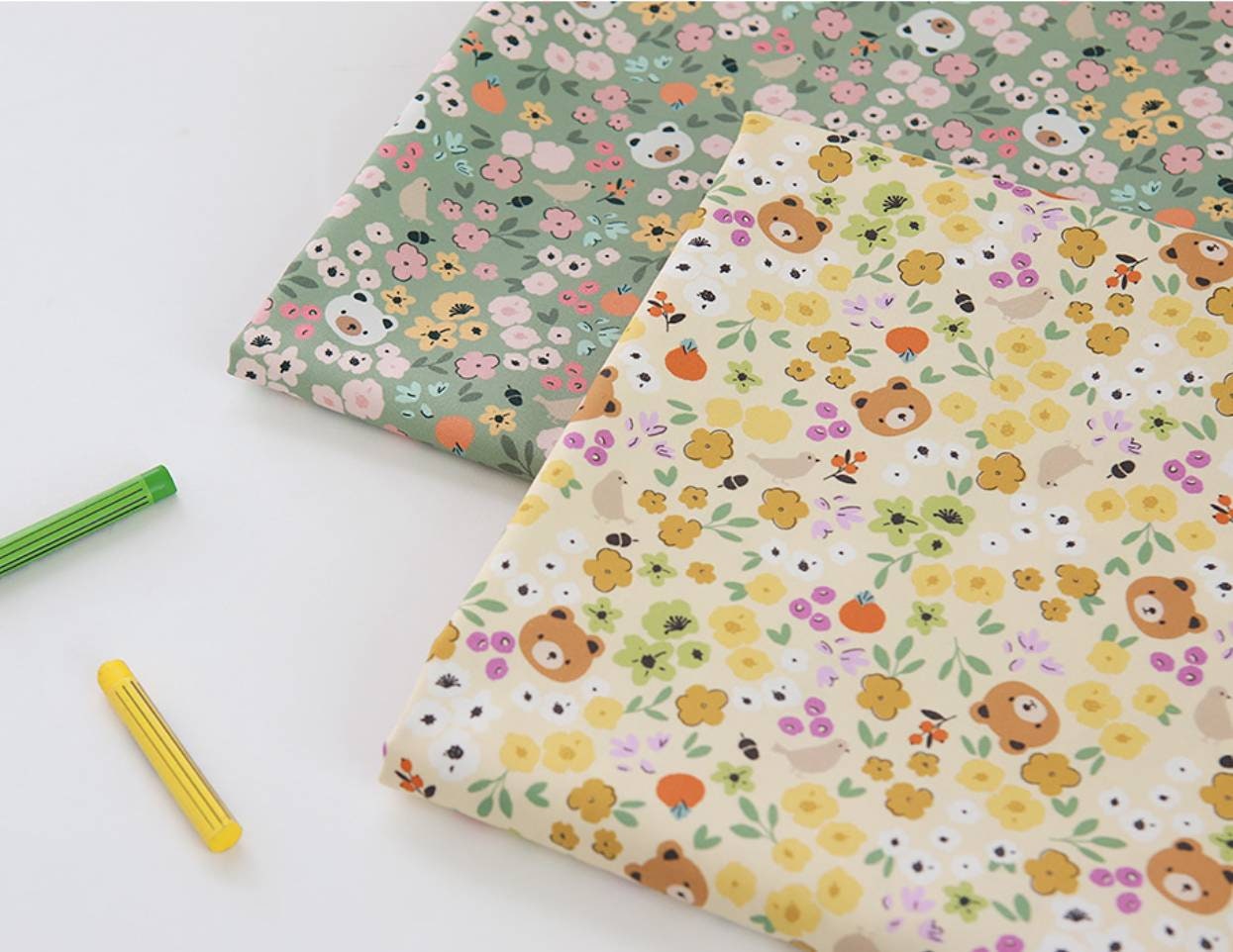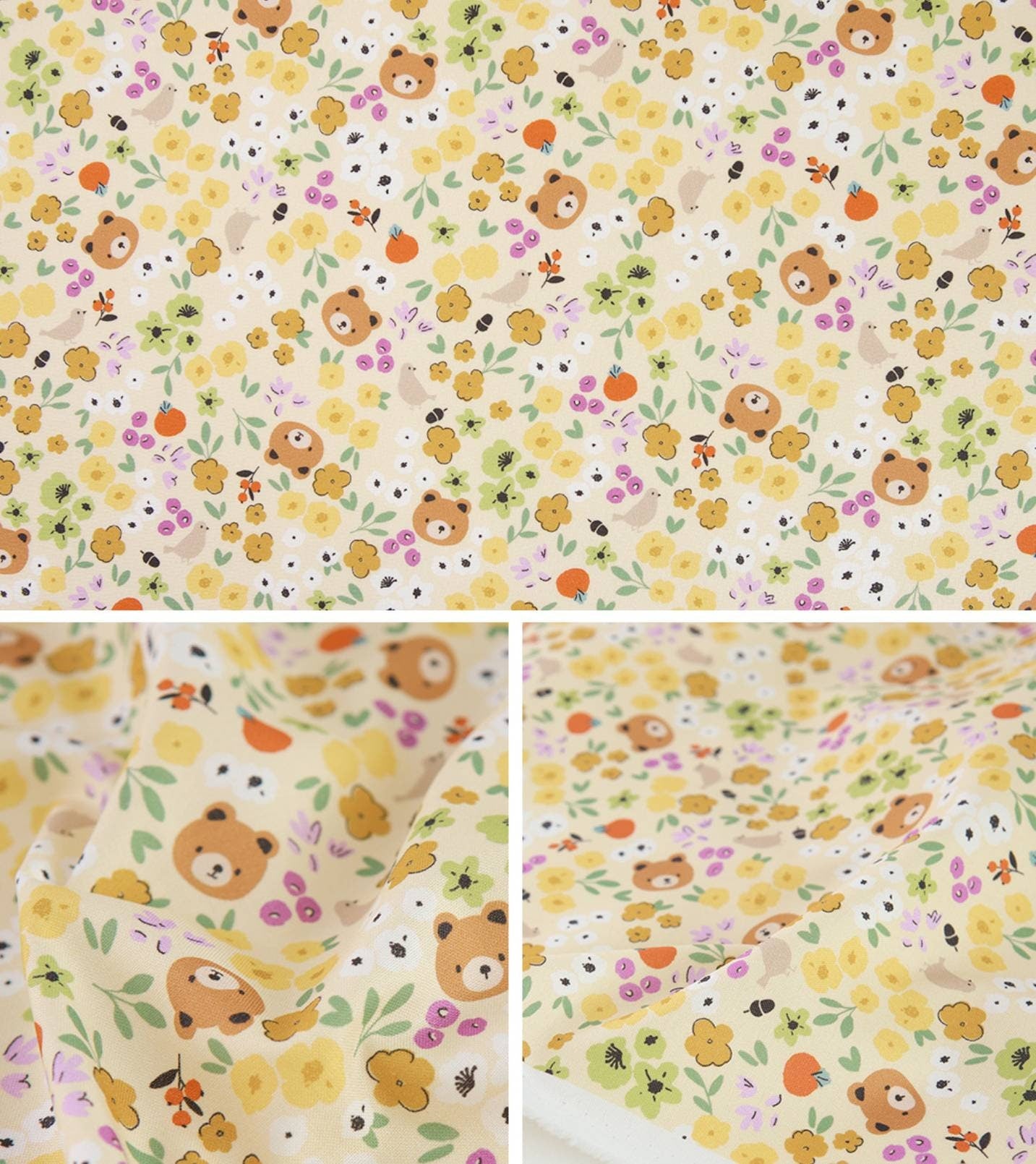 フラワーベアプリント生地