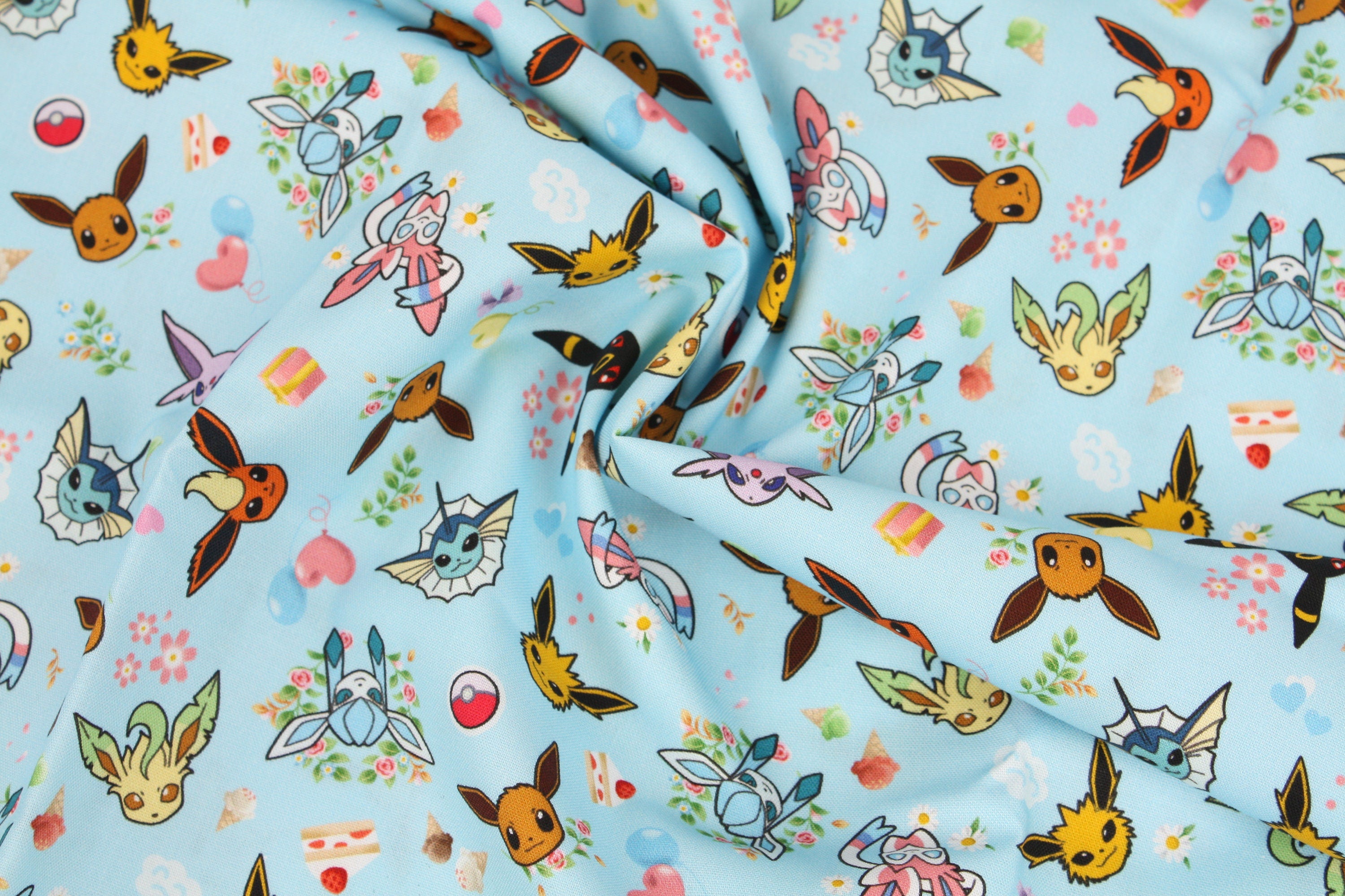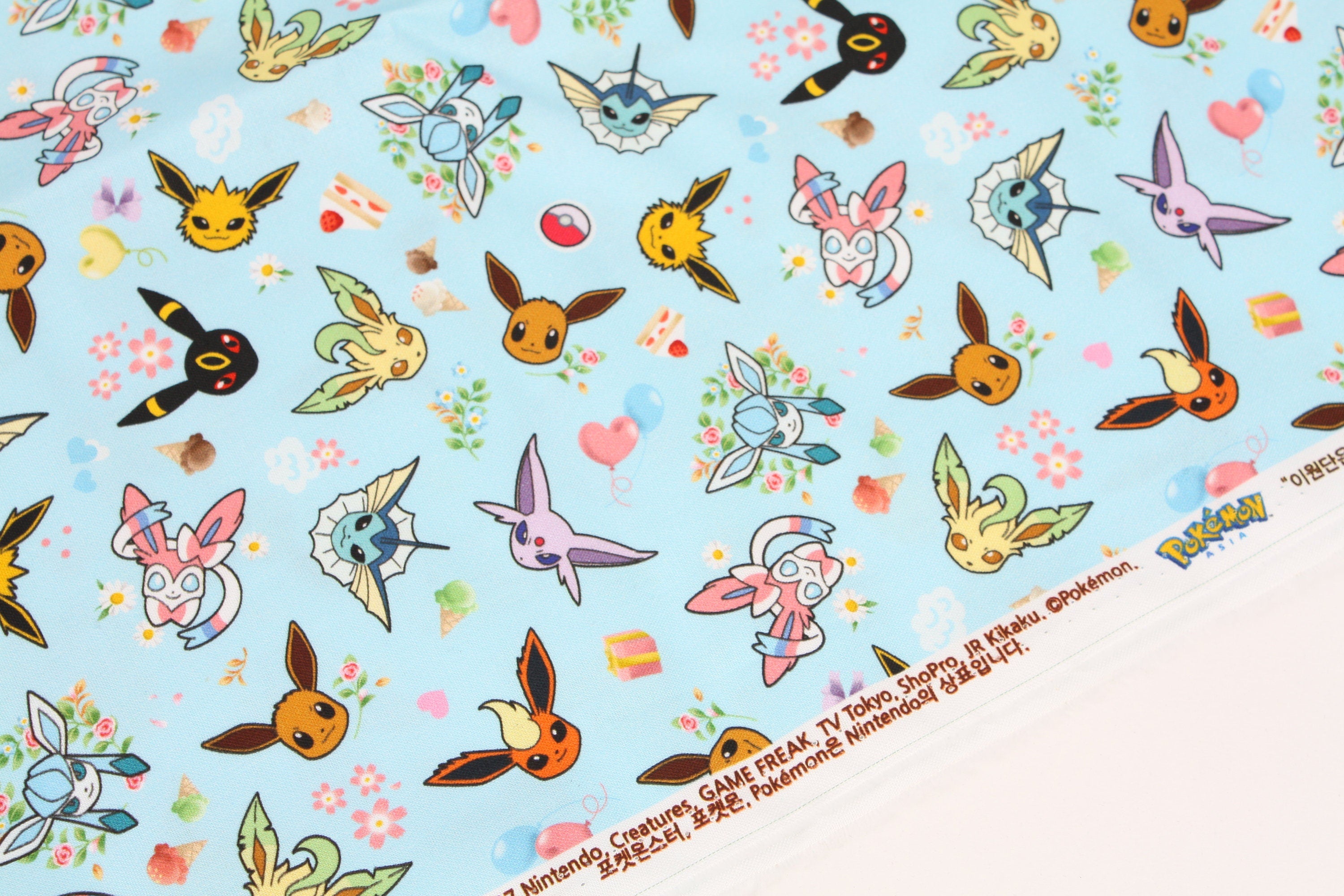 ポケットモンスター、イーブイ、ピカチュウのキャラクター生地(韓国製)