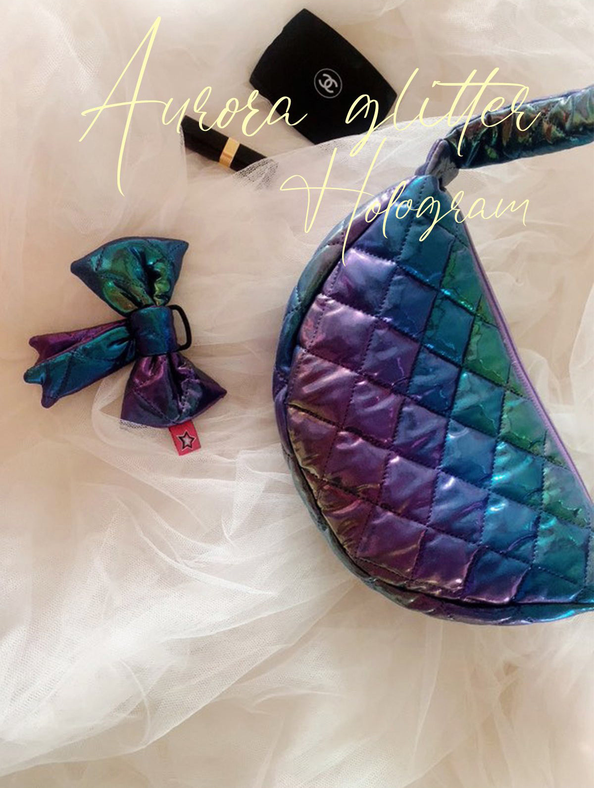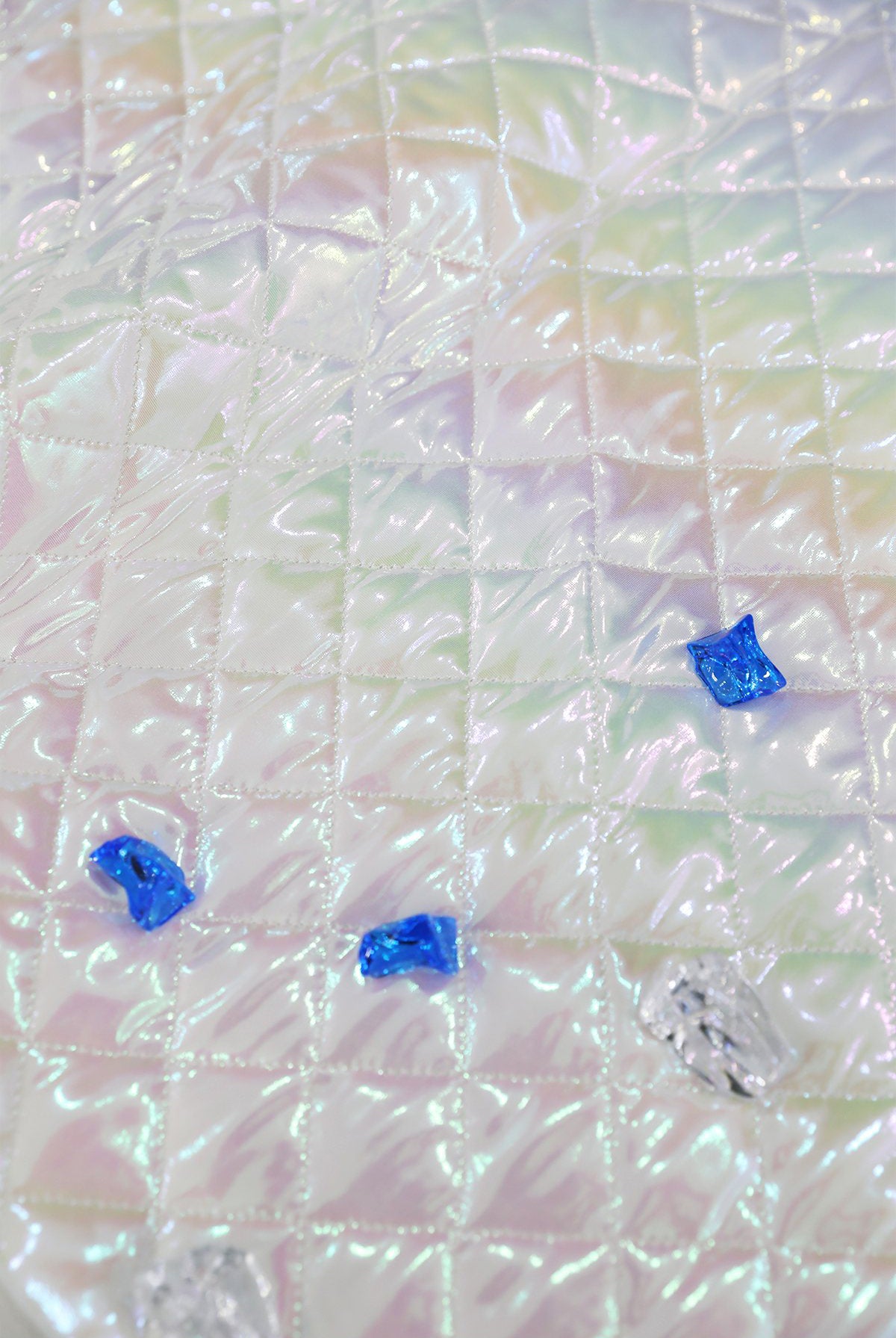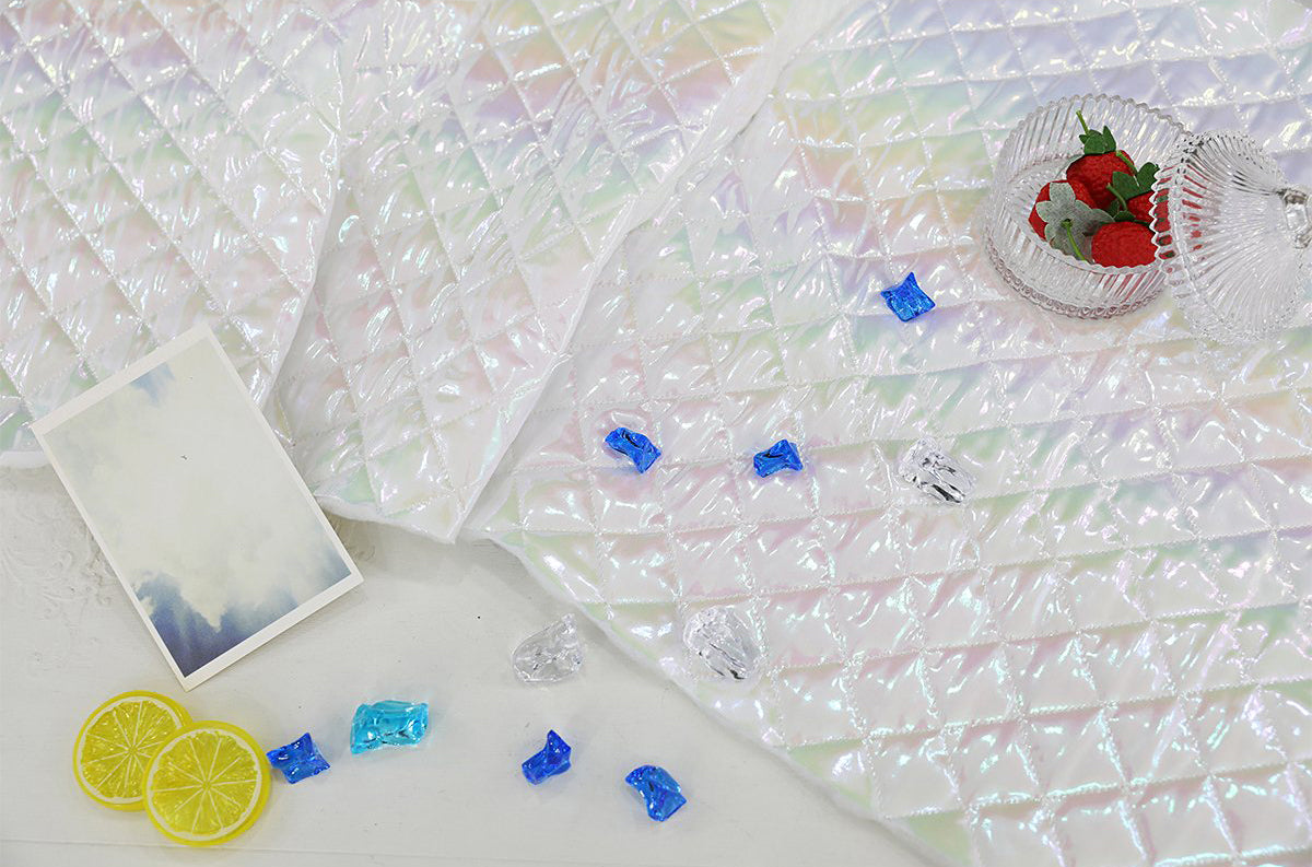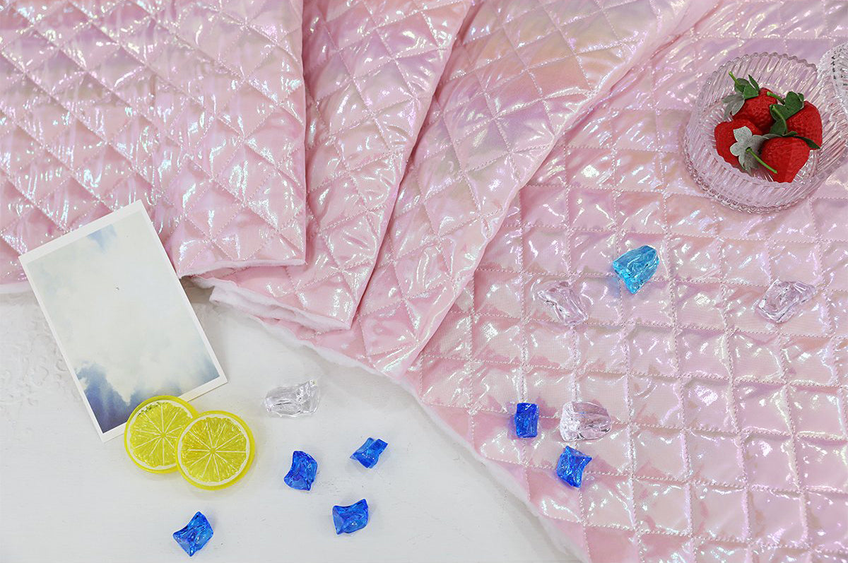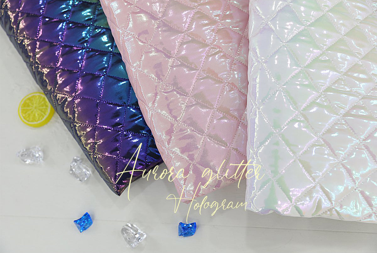 ホログラムオーロラグリッターダイヤモンドグリッドパターンポリエステルキルティングヌビ生地 - 韓国生地