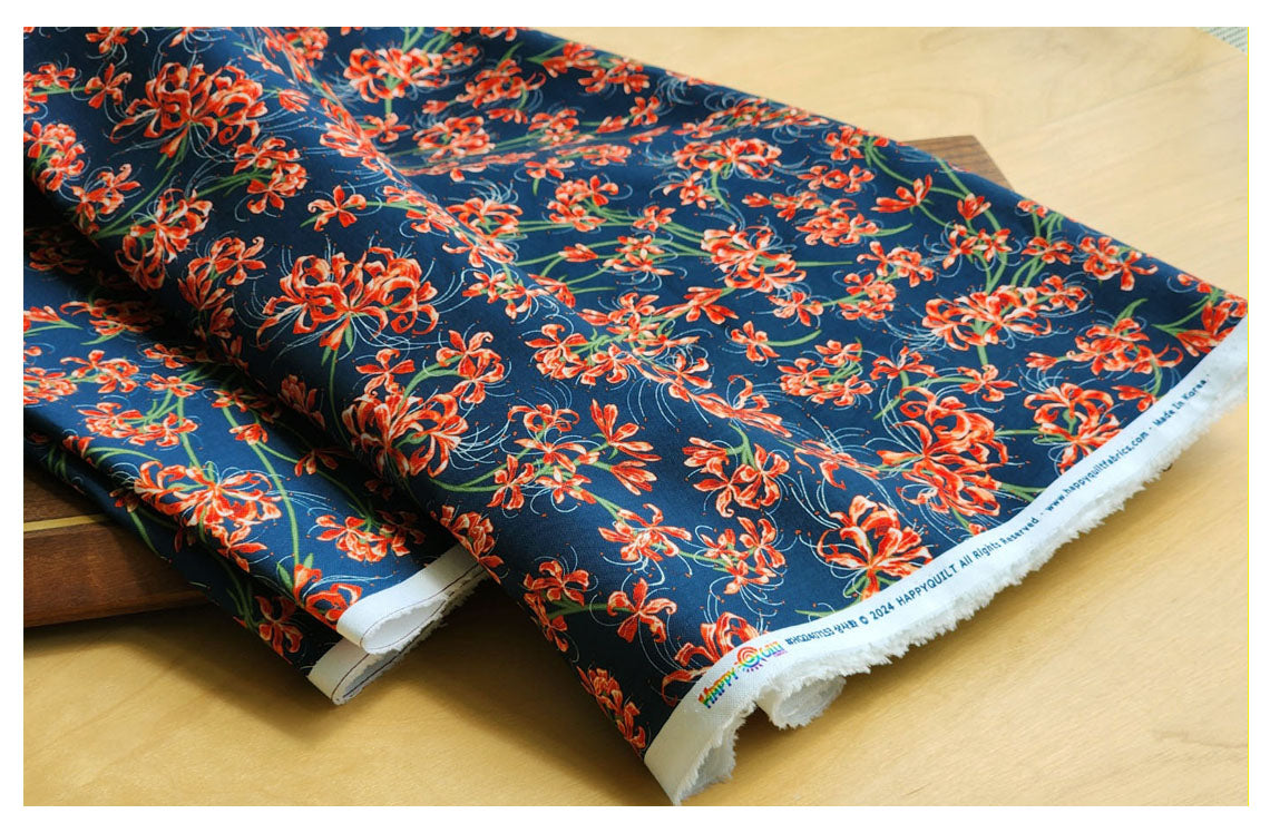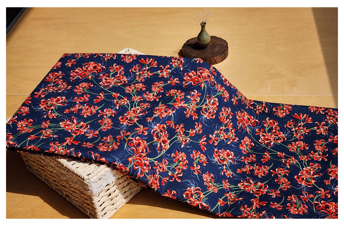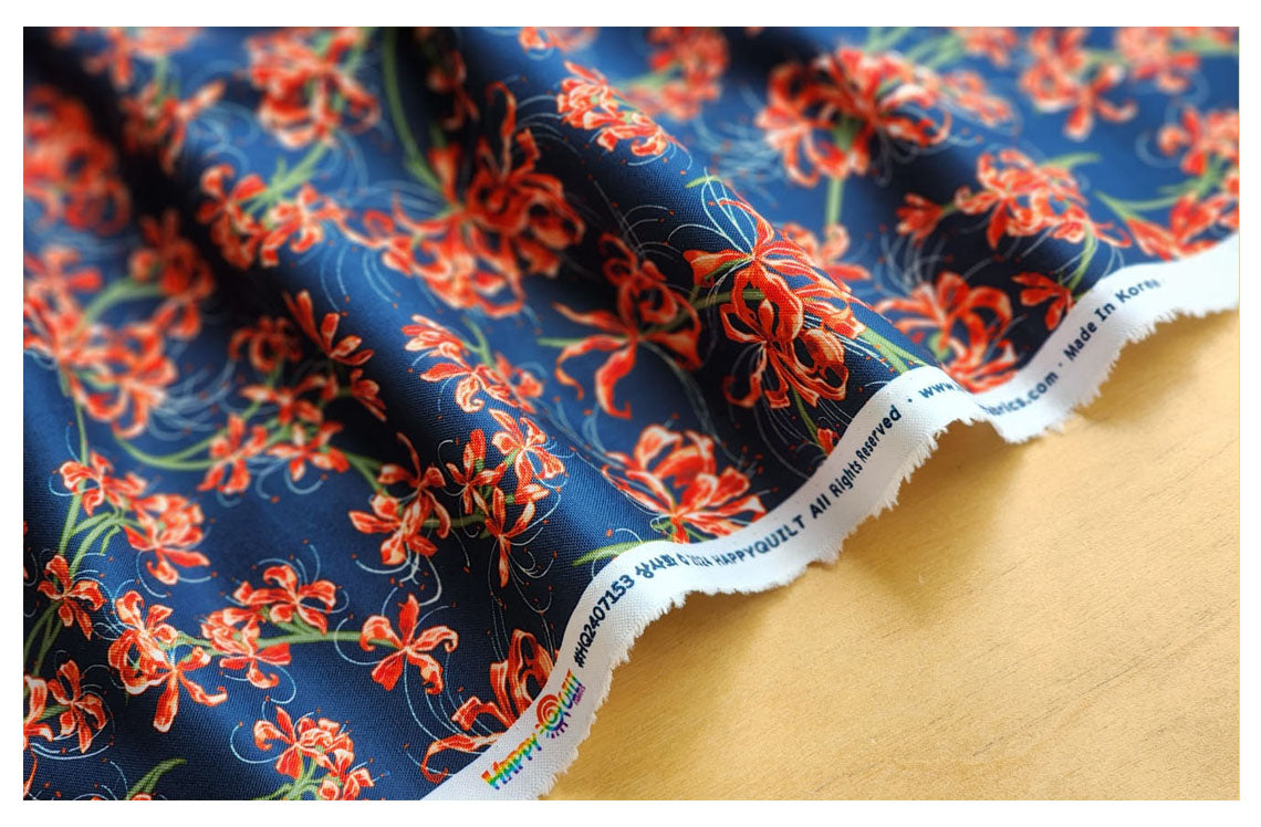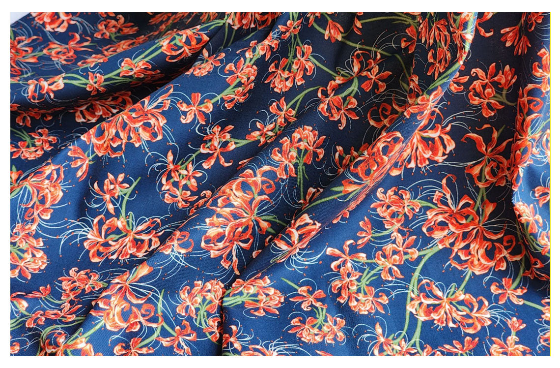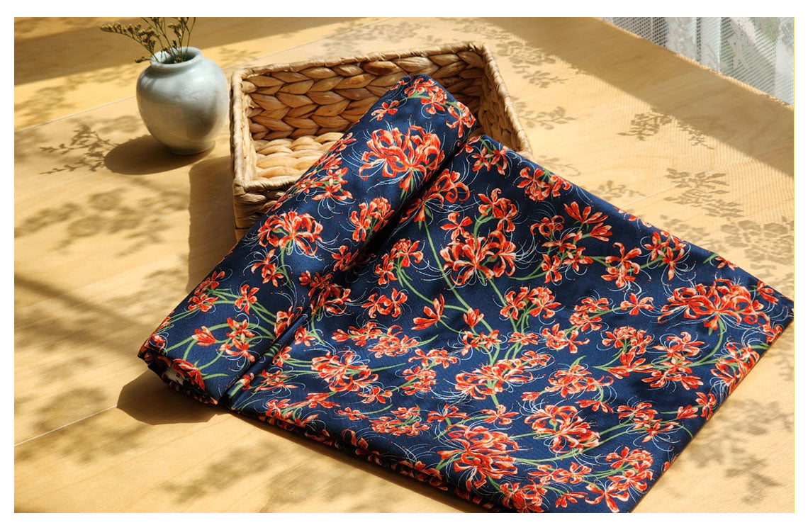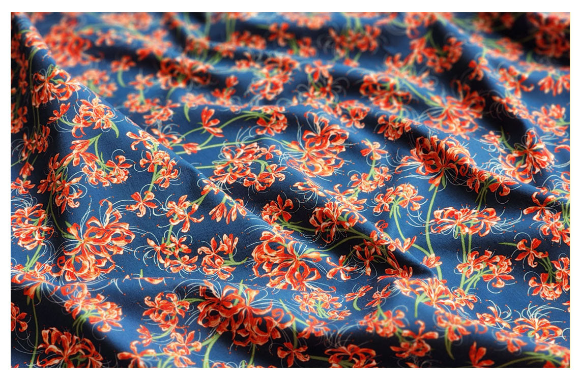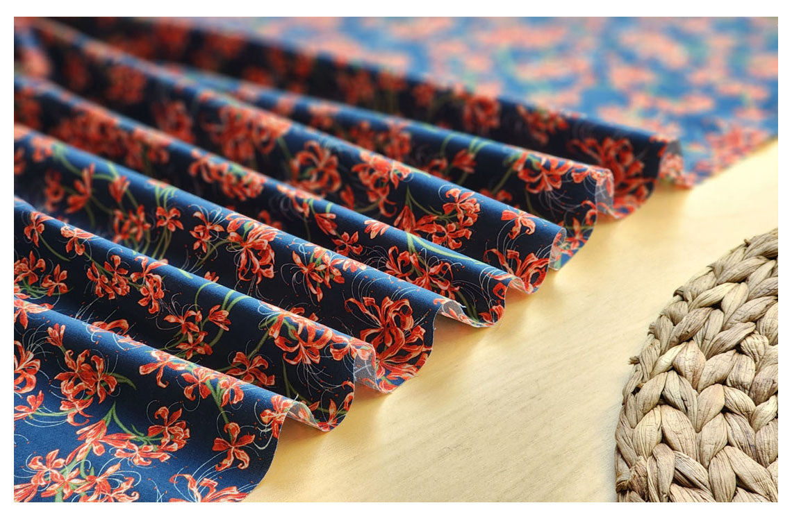 赤いヒガンバナの花房アマリリス柄の生地 - 韓国の生地
