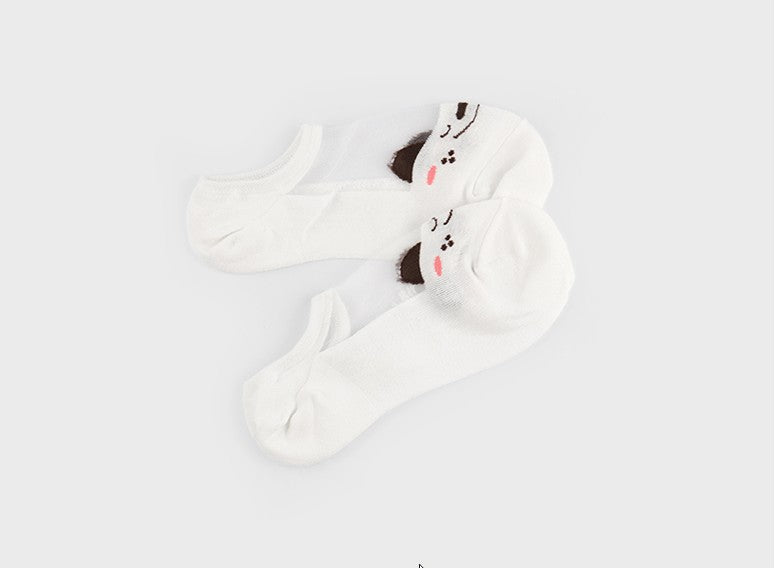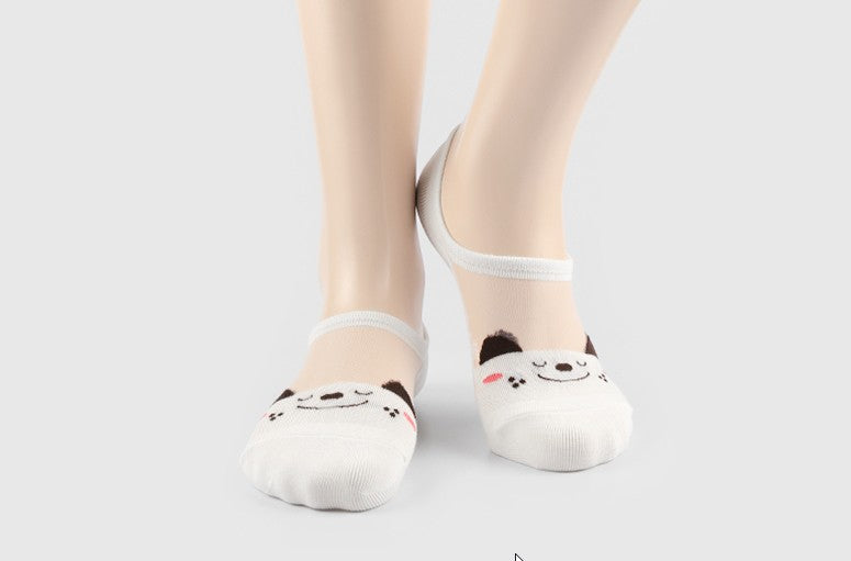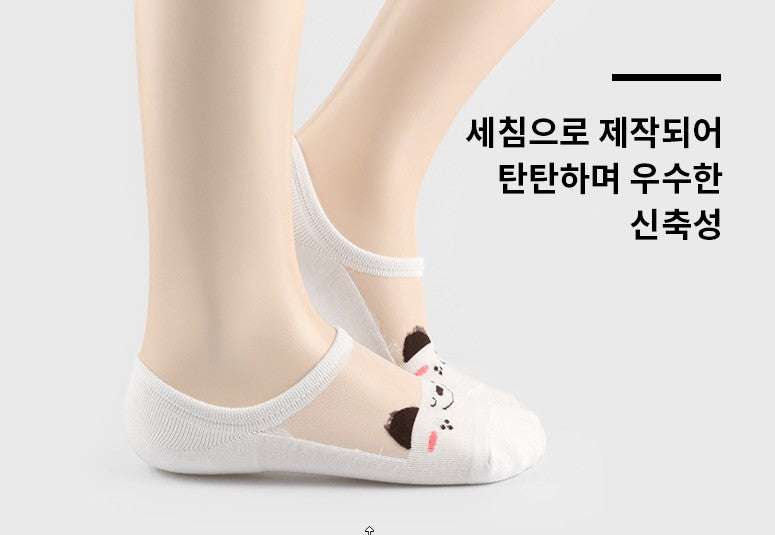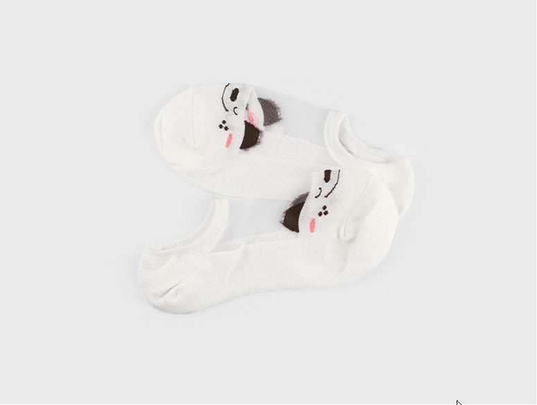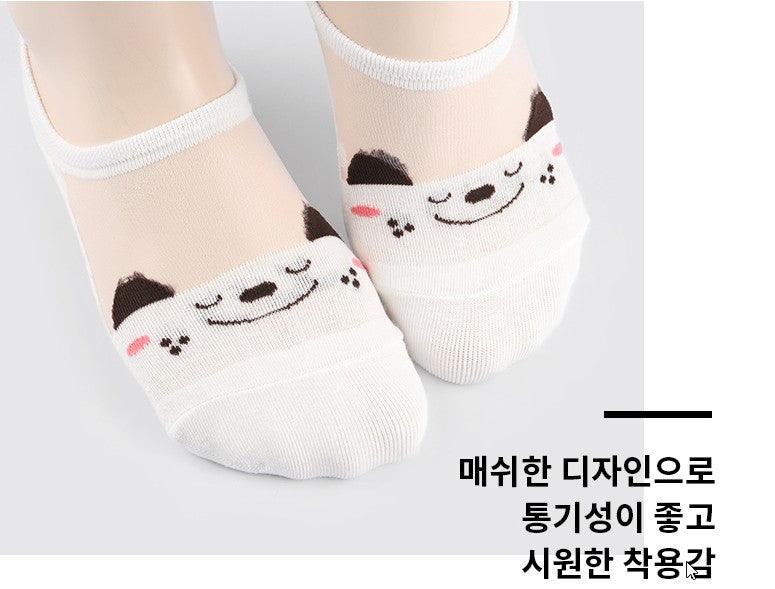 動物の顔柄シースルーノーショーソックス6足セット(レディース)
