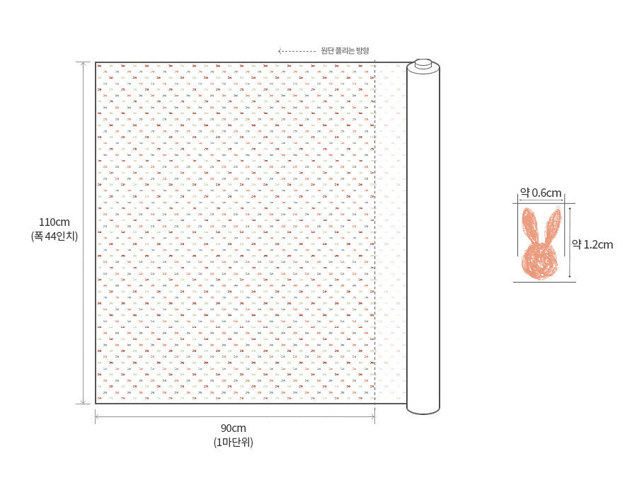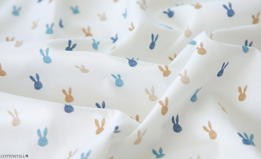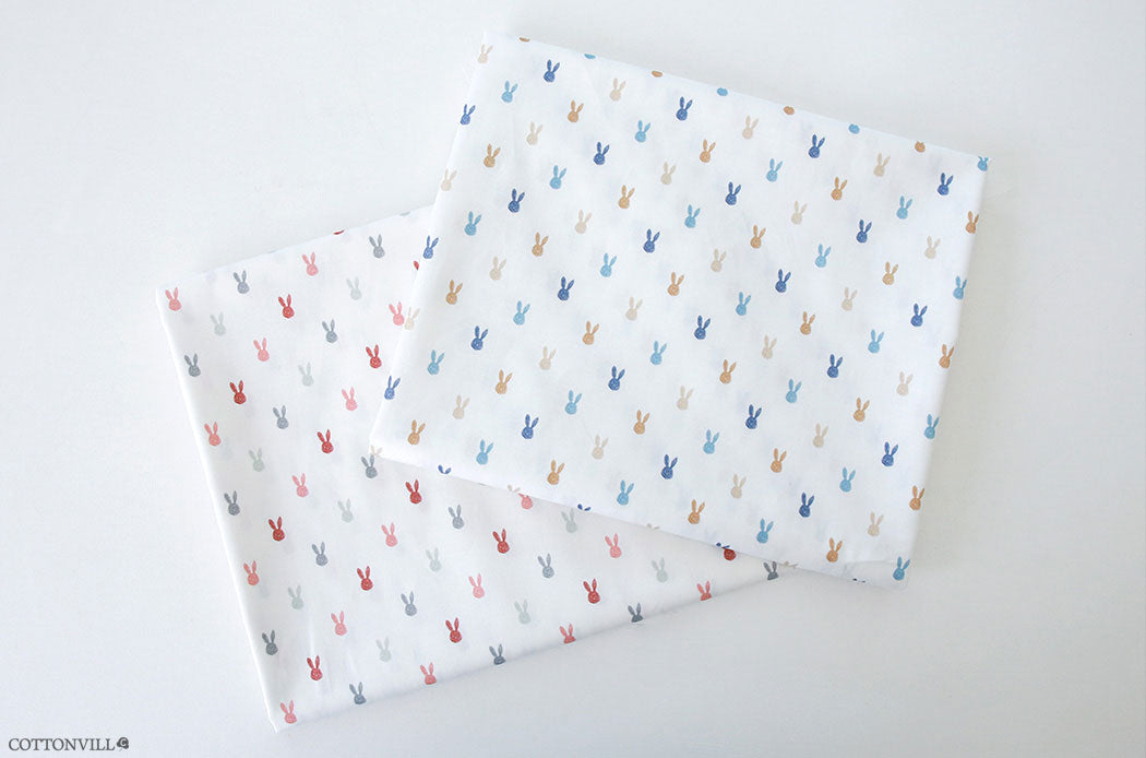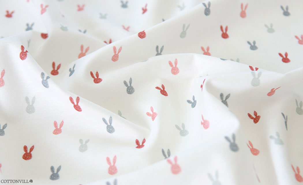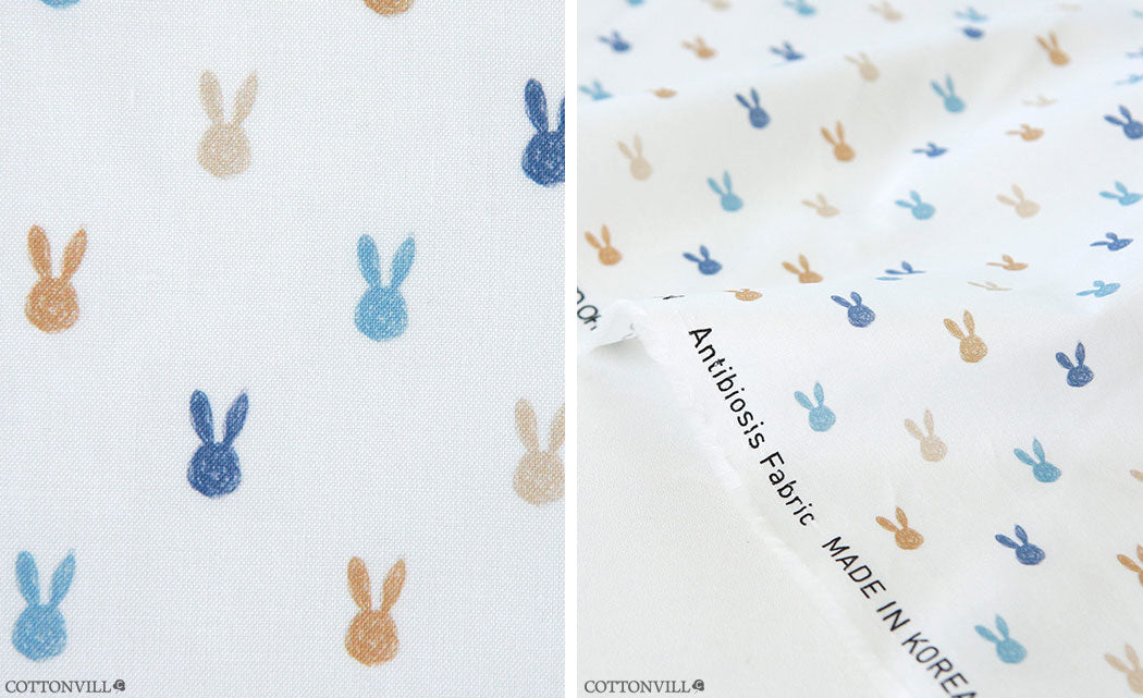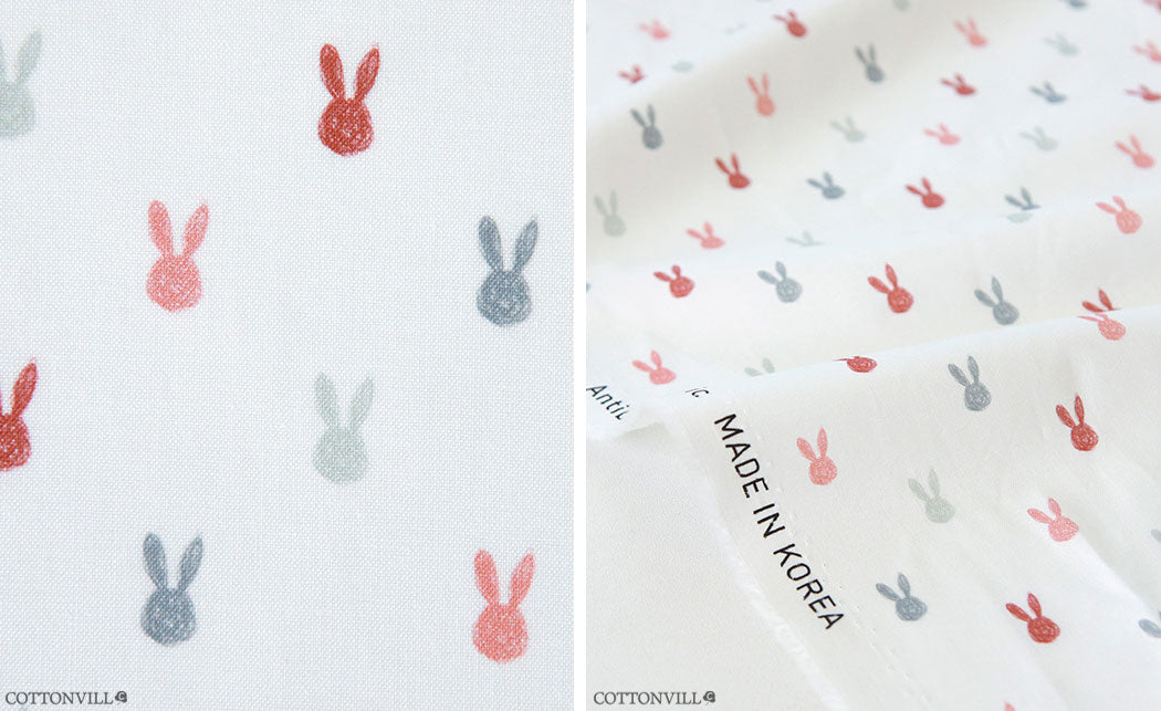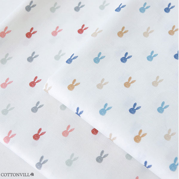 Crayon Rabbit Bunny Stamp Patterned fabric - Korean Fabric