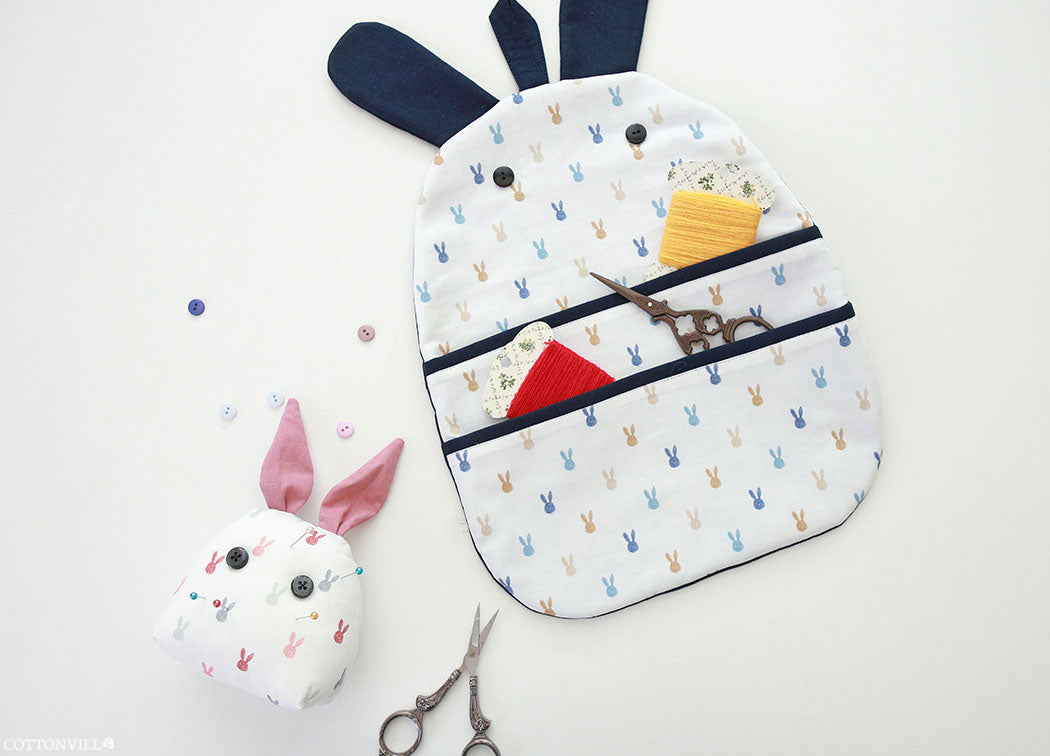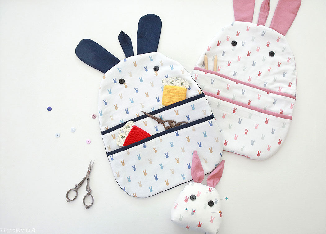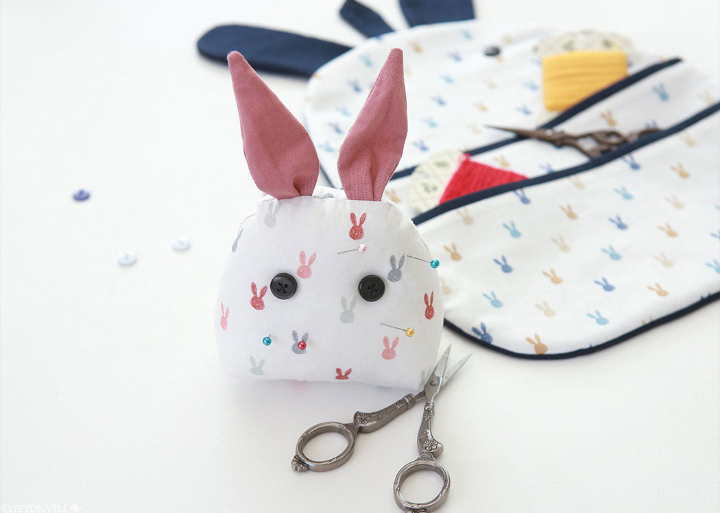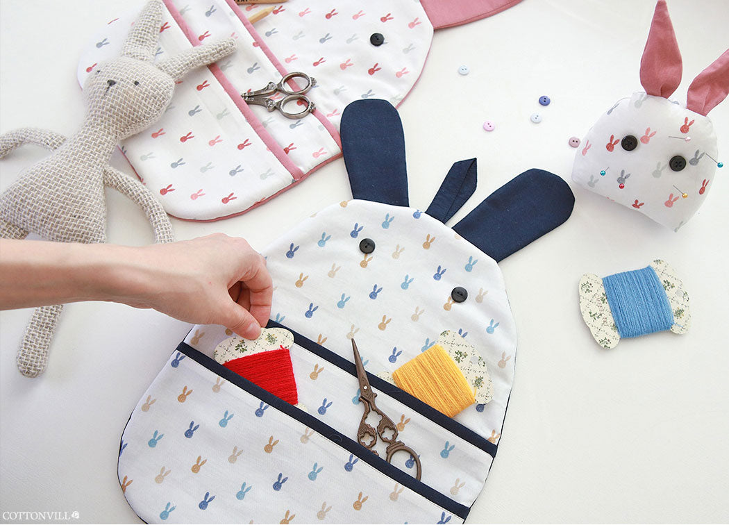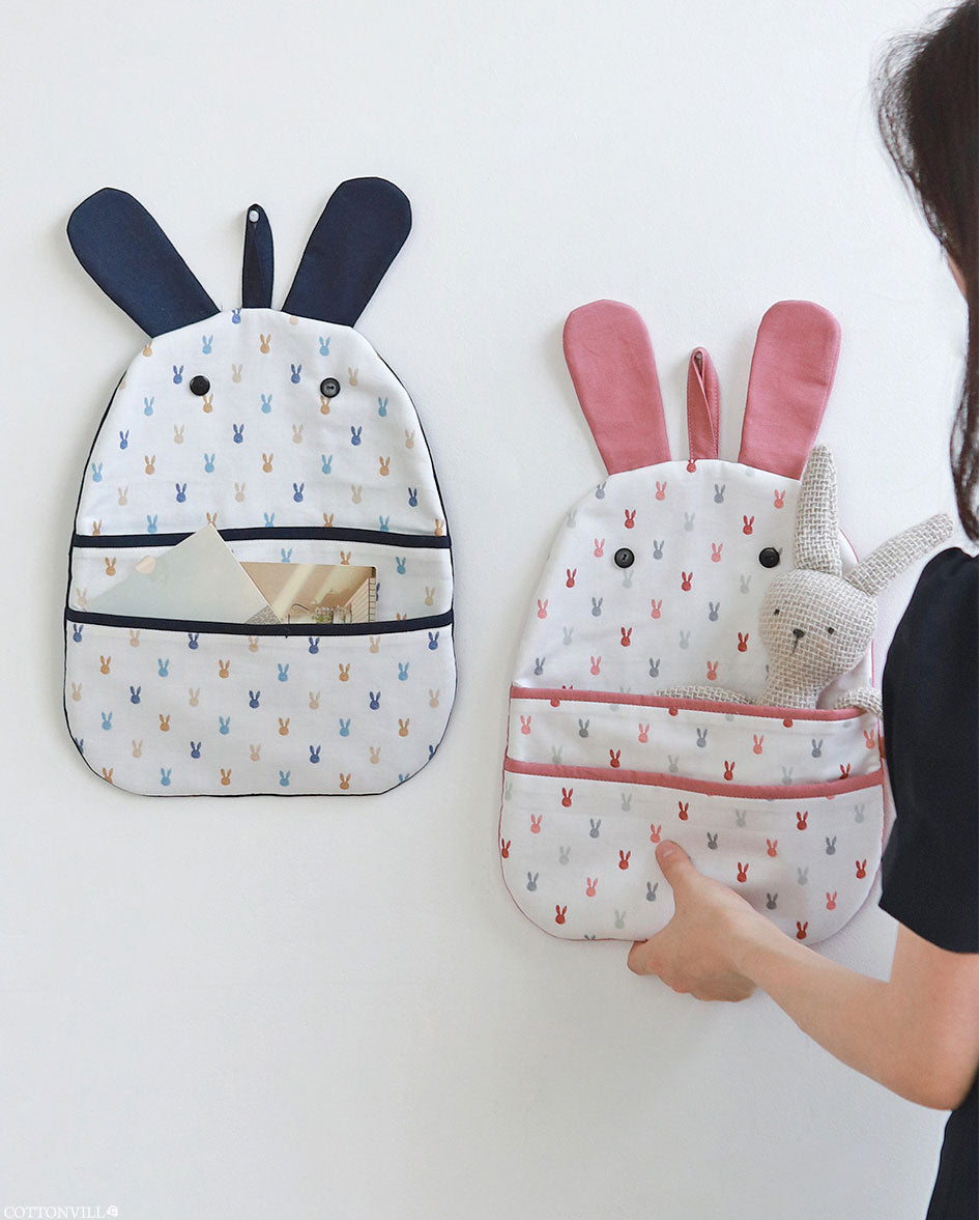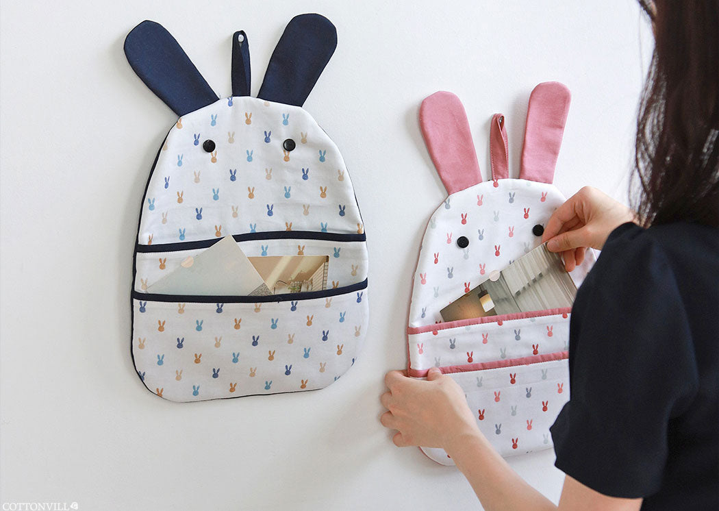 Crayon Rabbit Bunny Stamp Patterned fabric - Korean Fabric