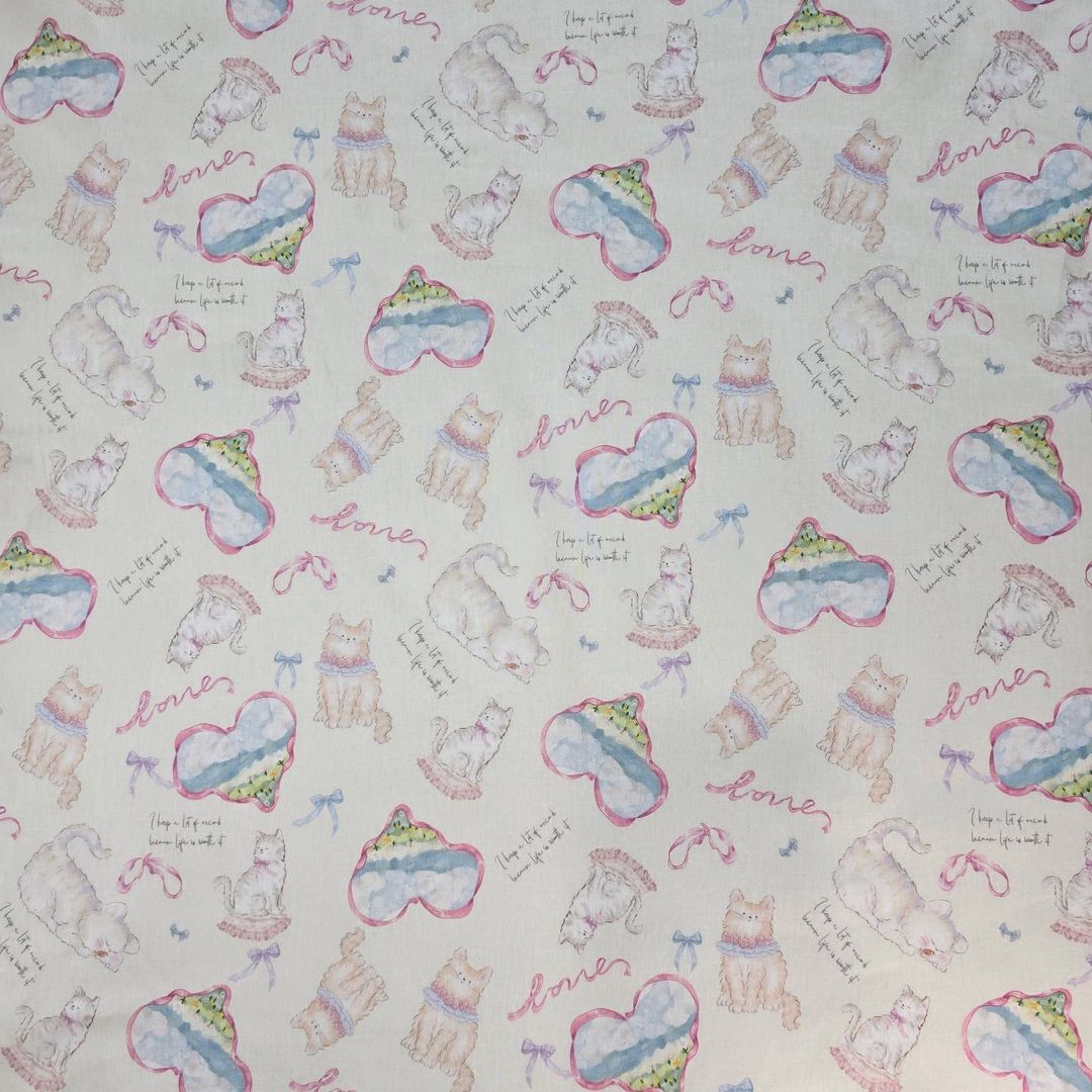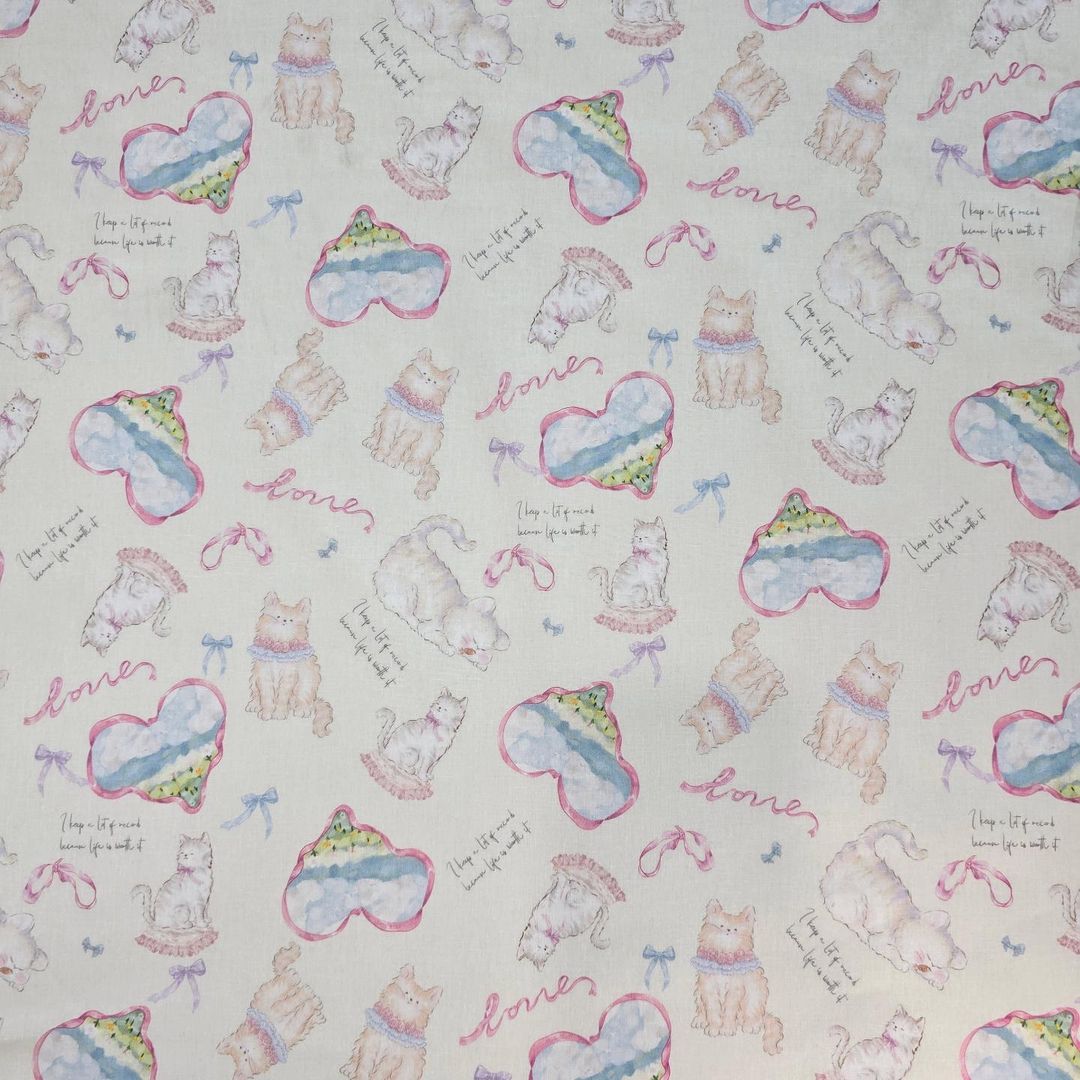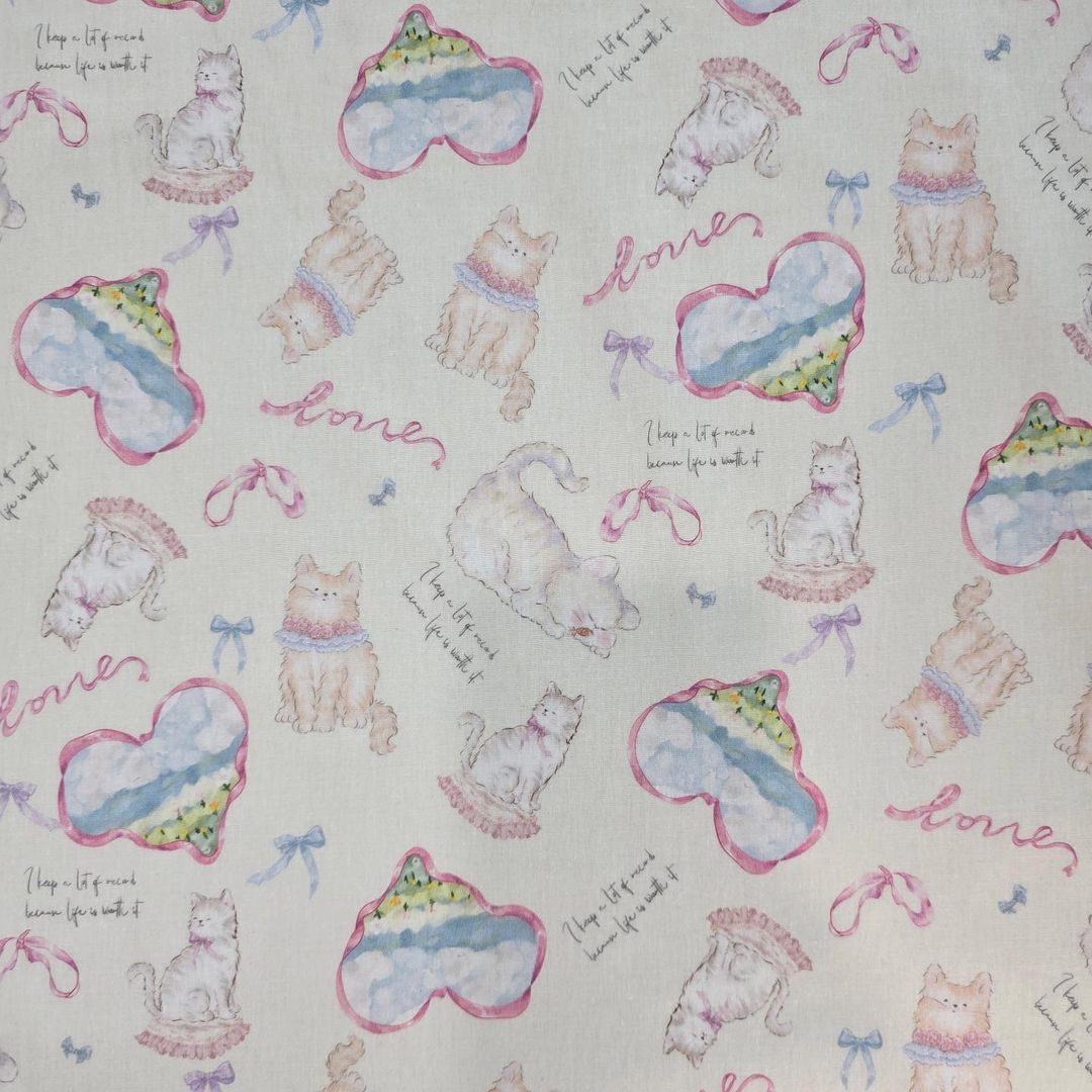 Ribbon Cat Kitten Patterned Fabric, Cute, Kids, Sewing, Quilt - Korean Fabric