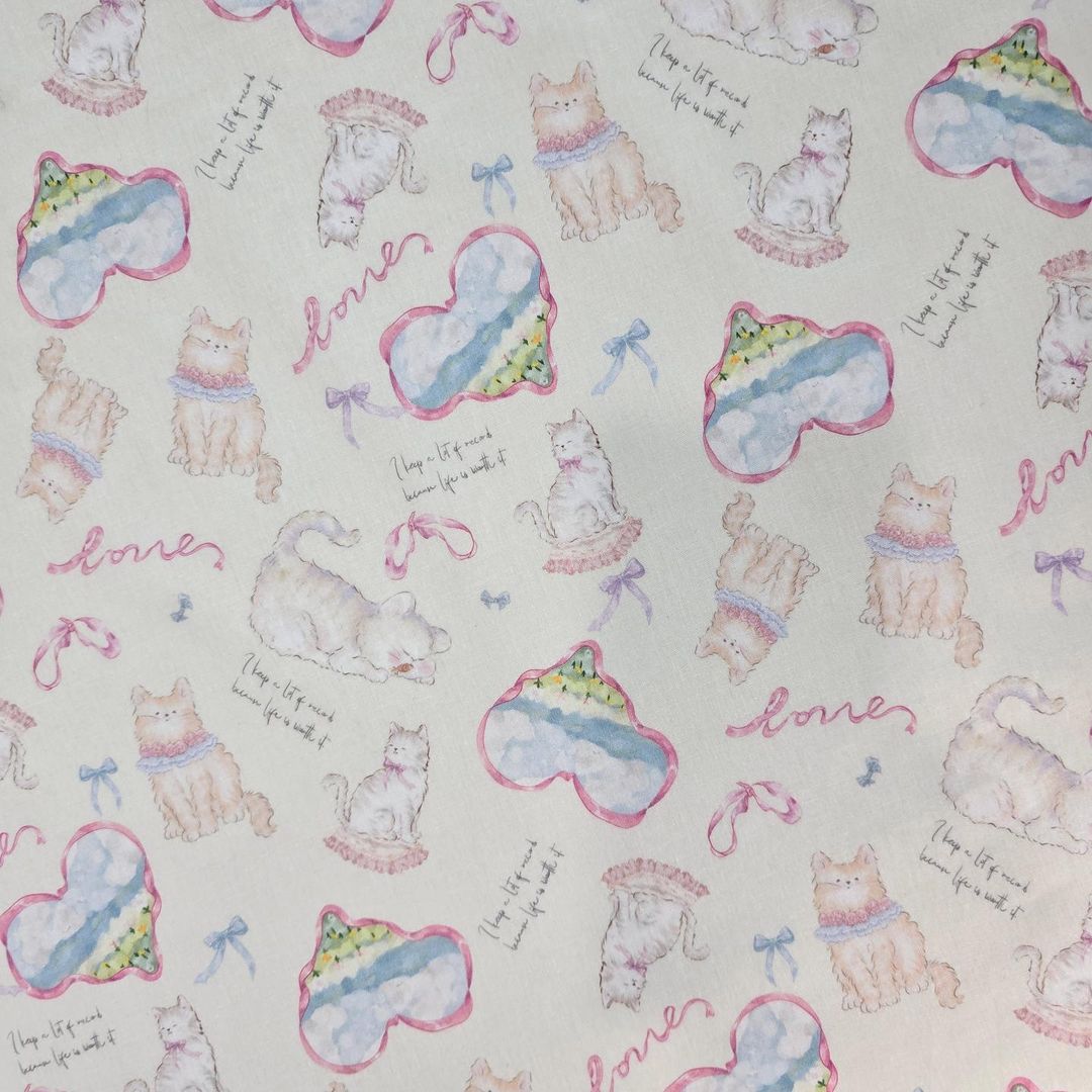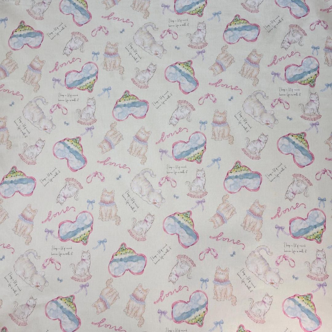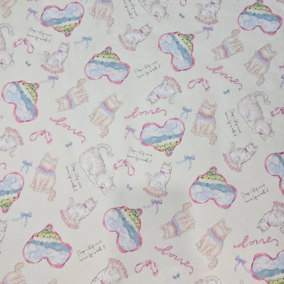 Ribbon Cat Kitten Patterned Fabric, Cute, Kids, Sewing, Quilt - Korean Fabric