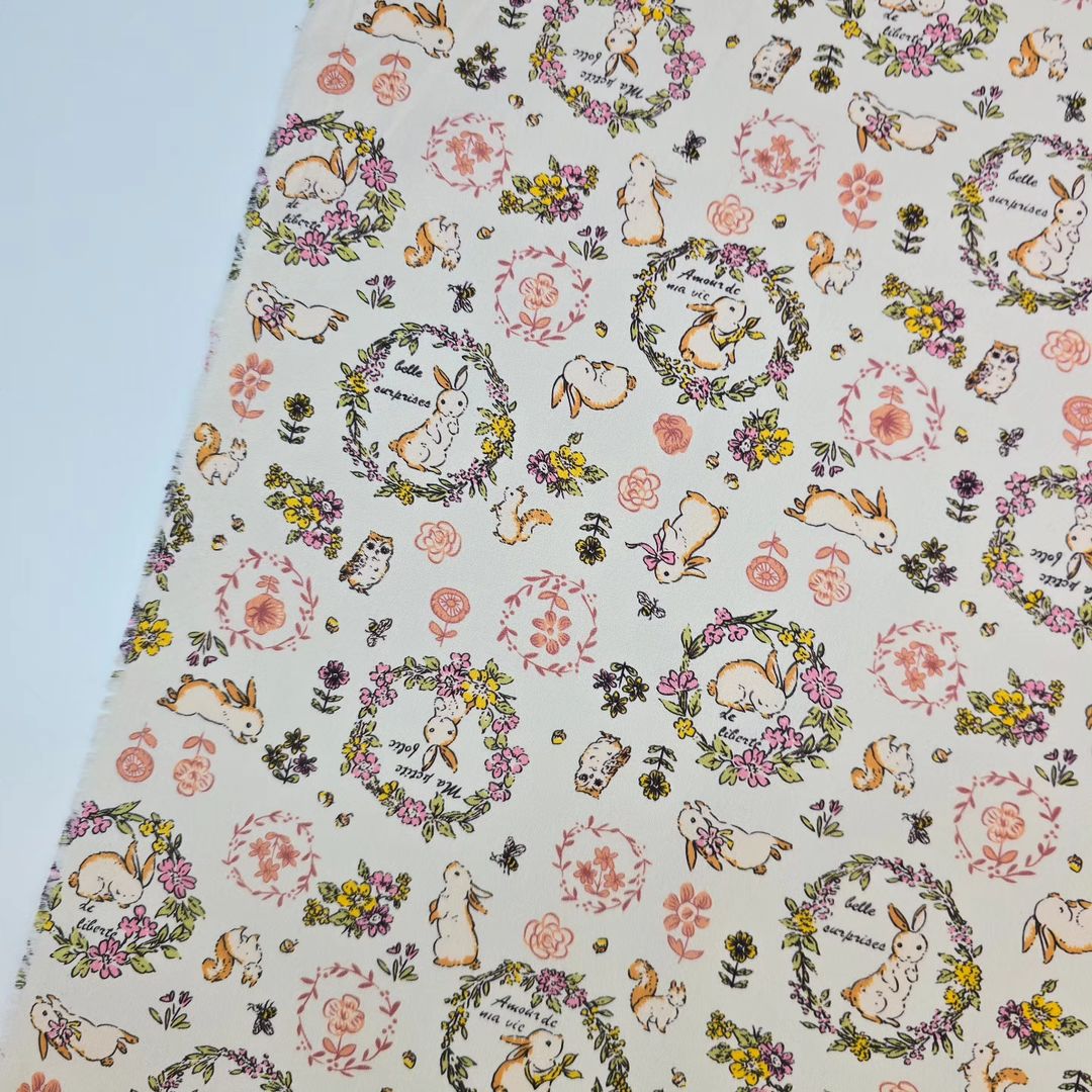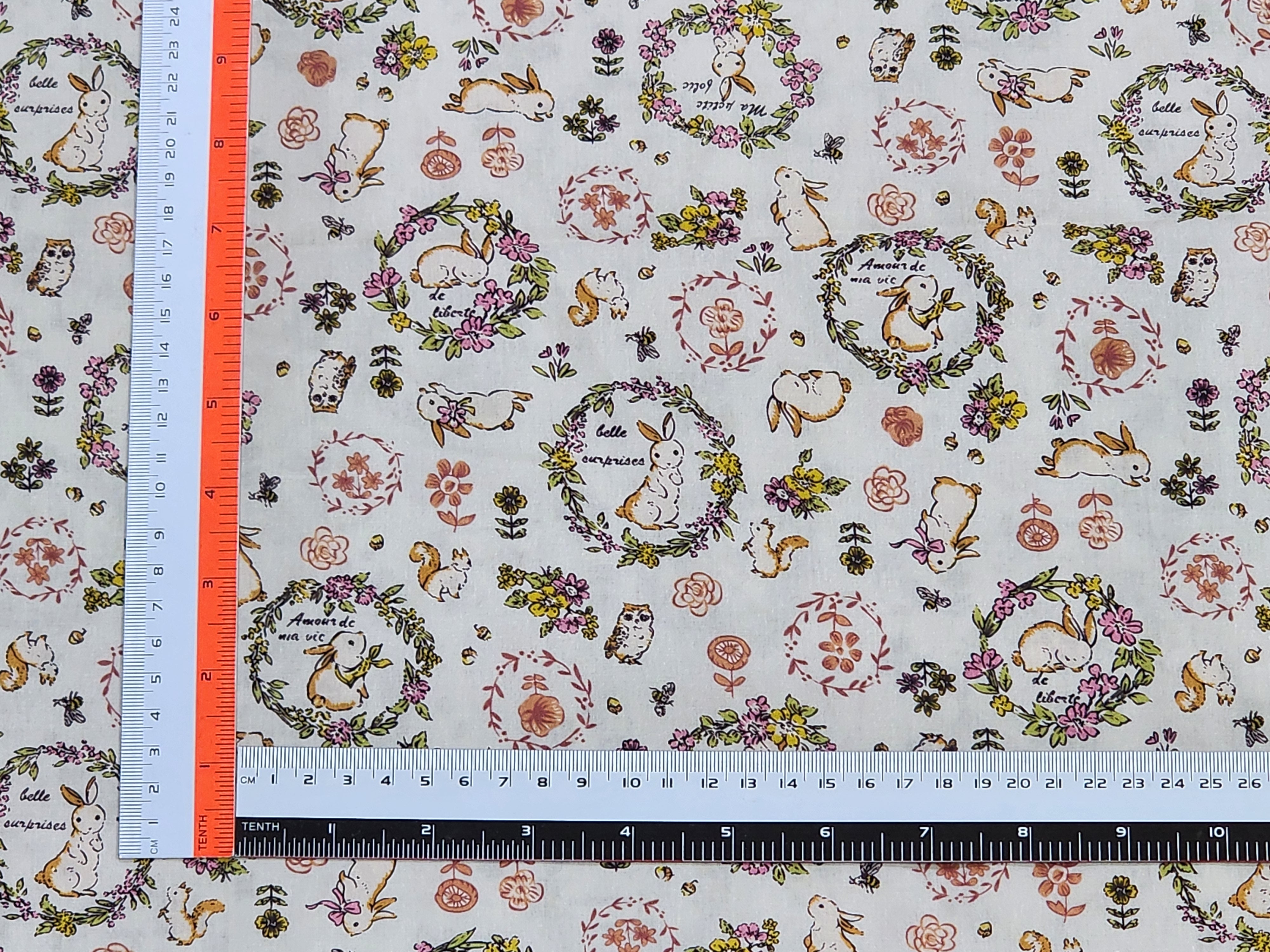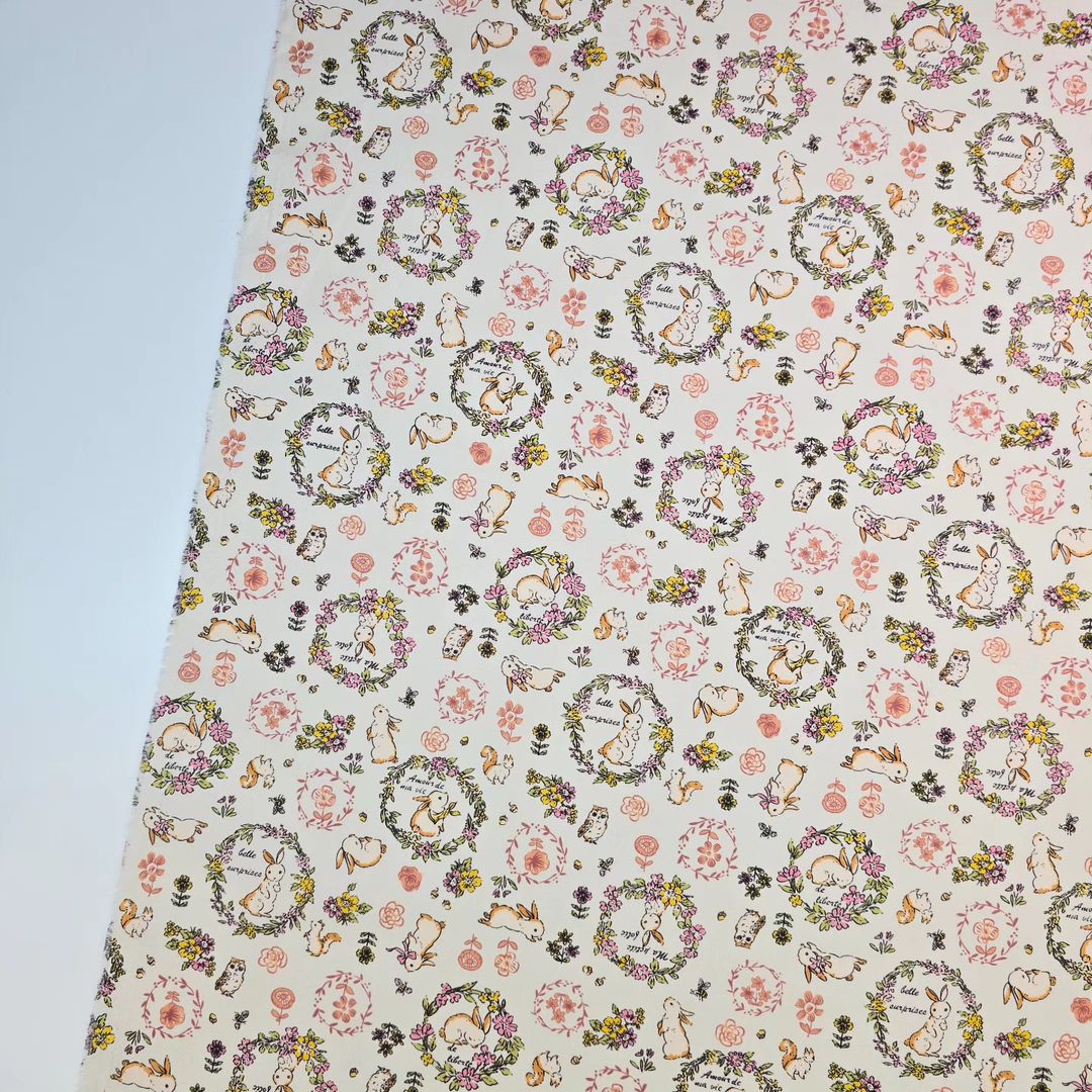 Rabbit & Flower Circlet Patterned Fabric, Cute, Kids, Sewing, Quilt - Korean Fabric