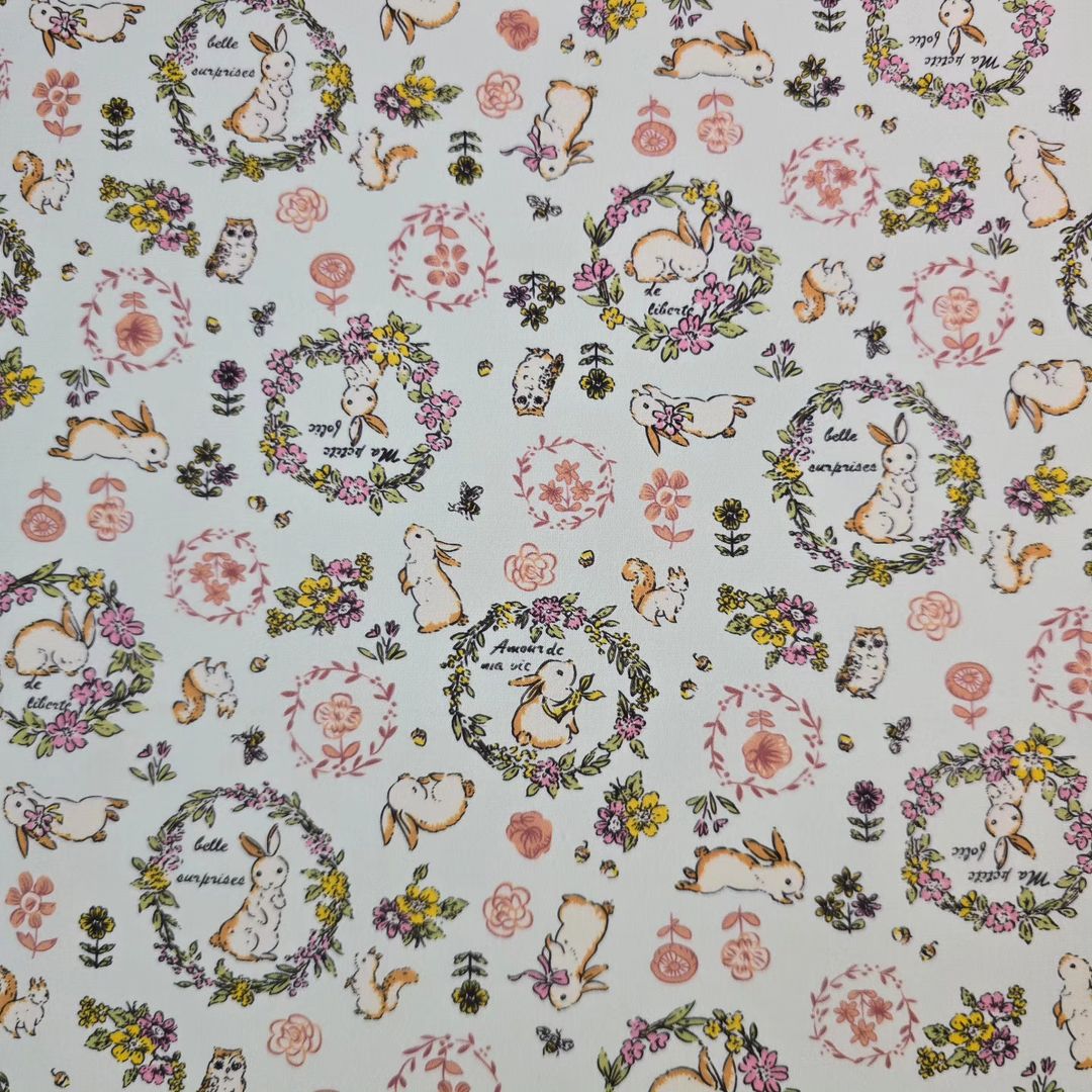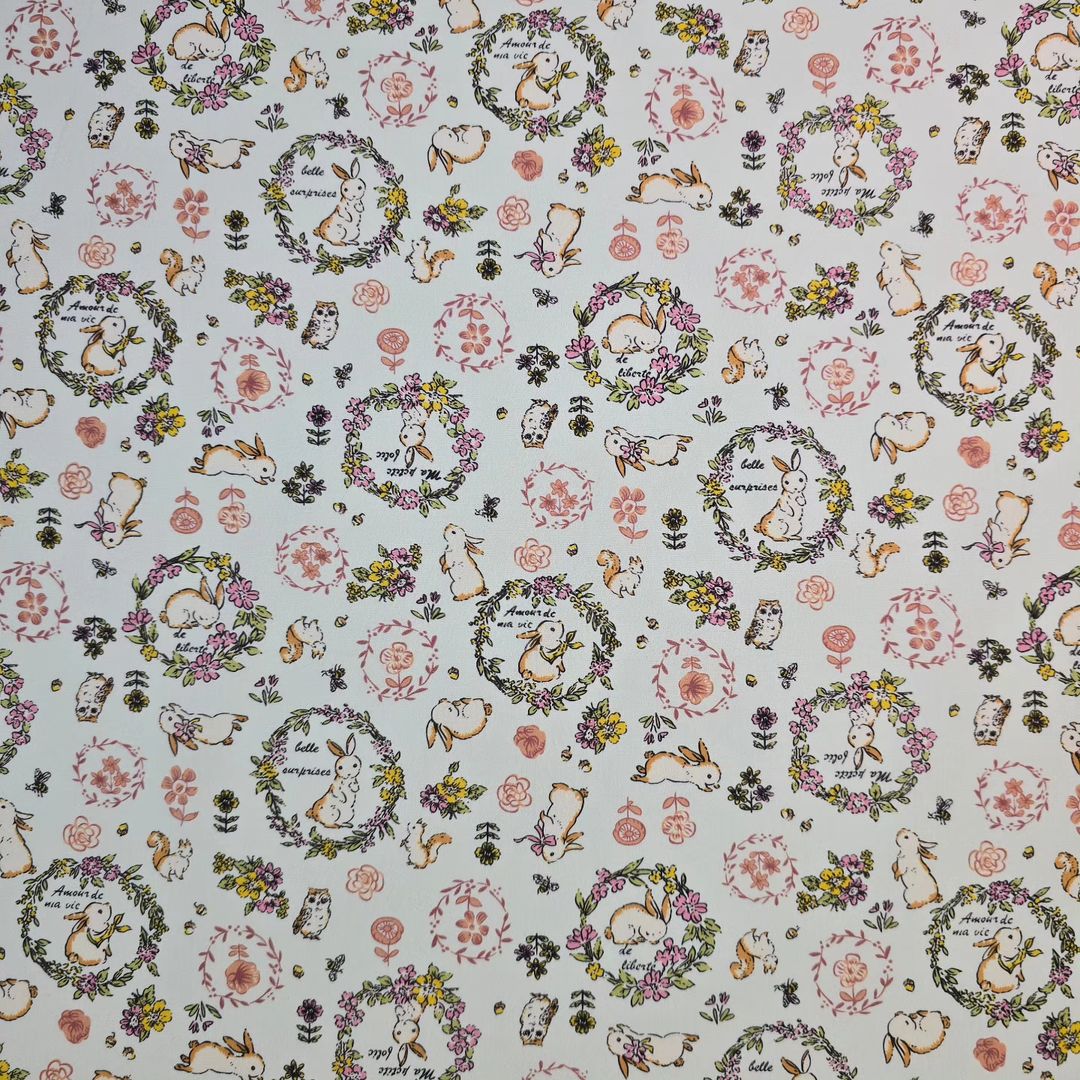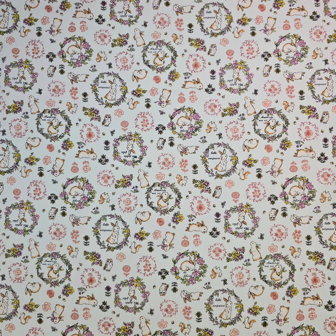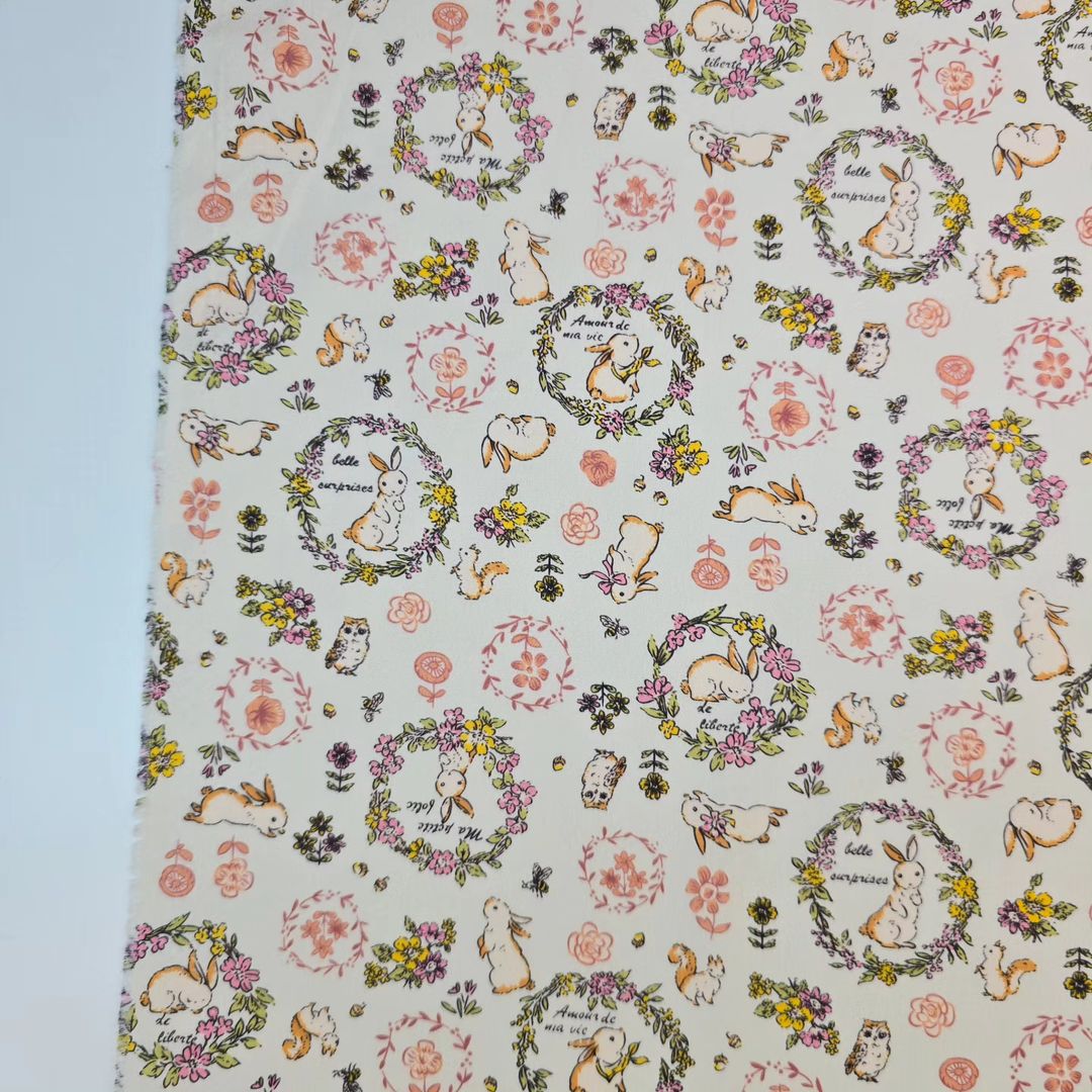 Rabbit & Flower Circlet Patterned Fabric, Cute, Kids, Sewing, Quilt - Korean Fabric