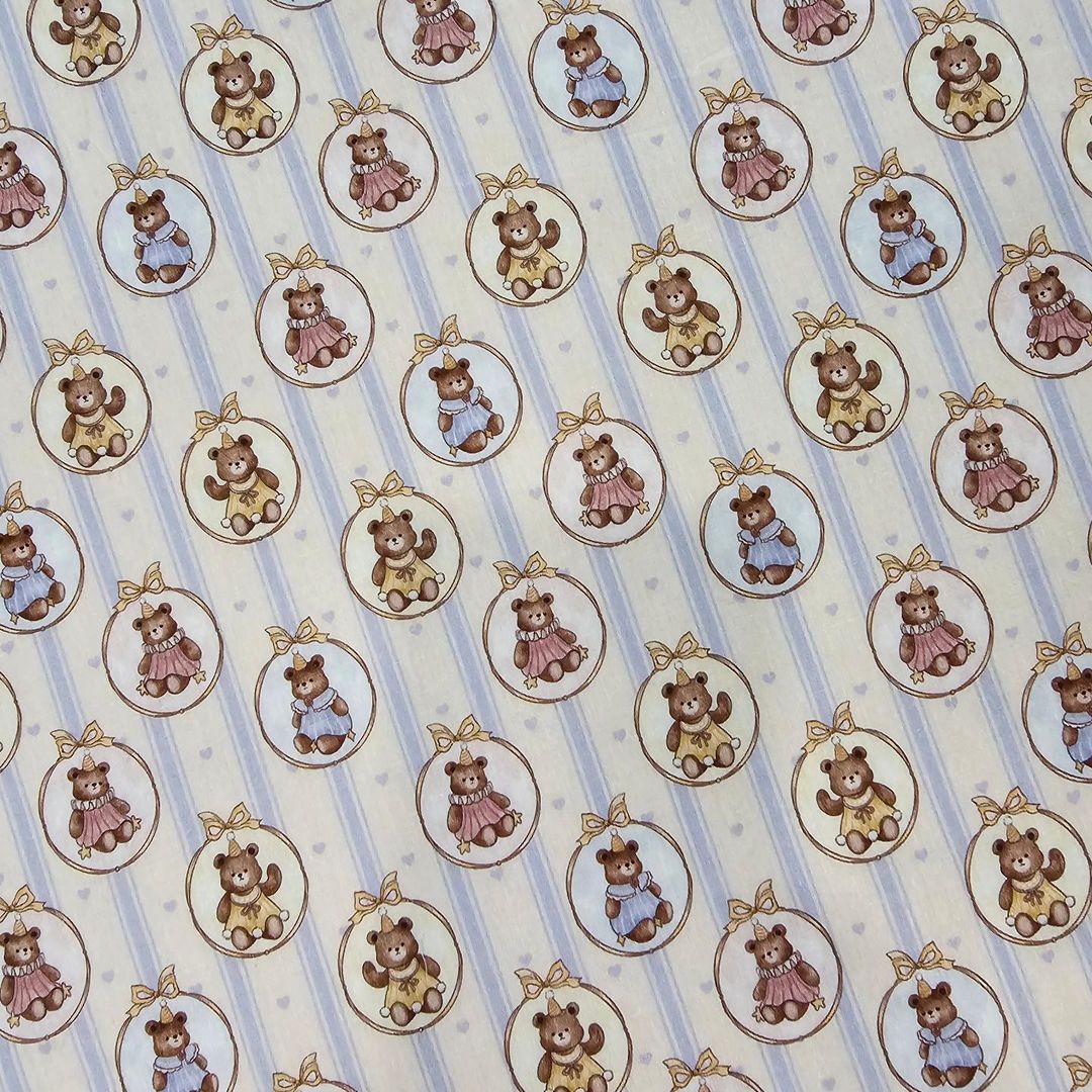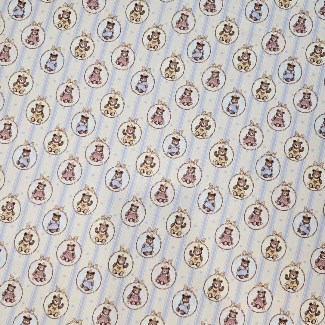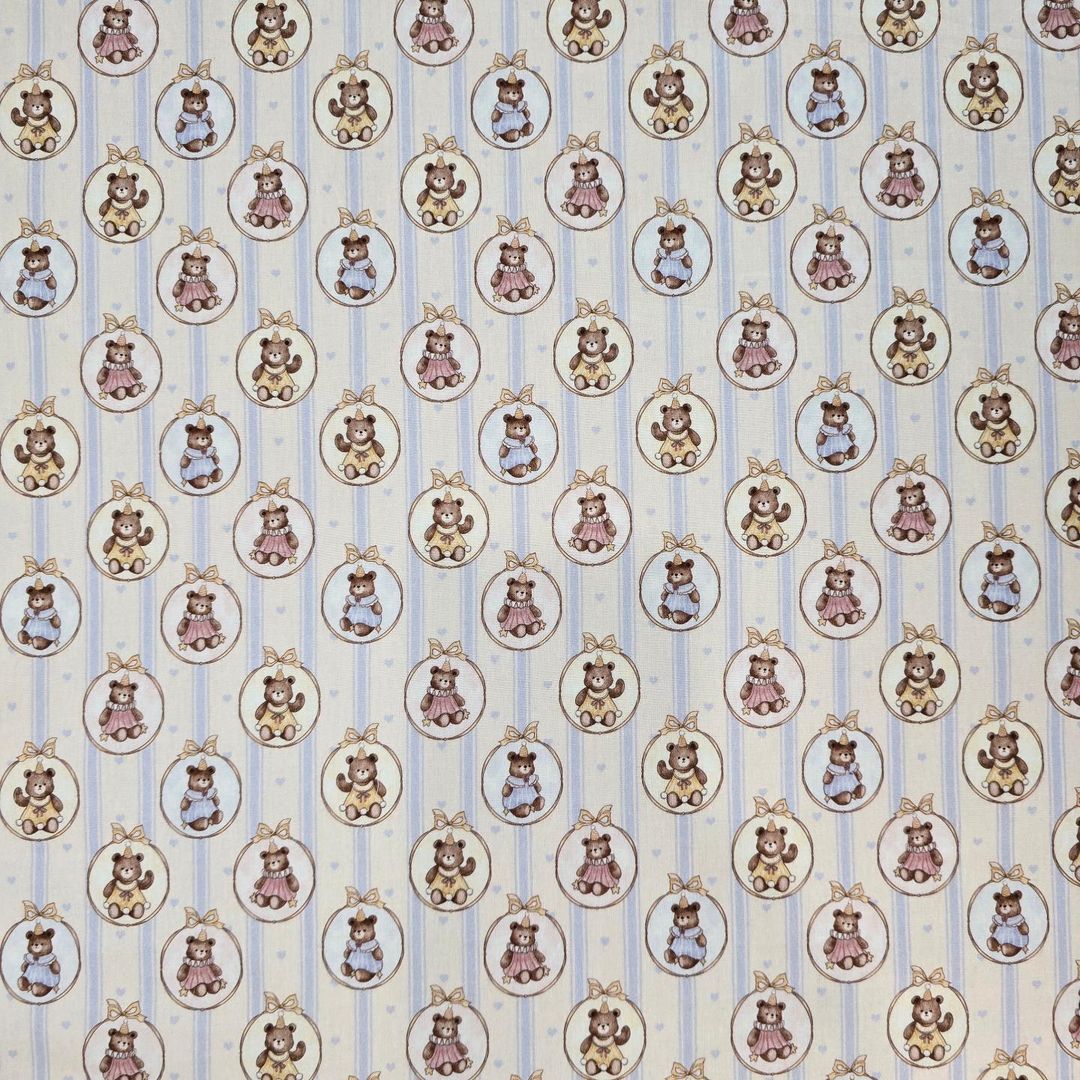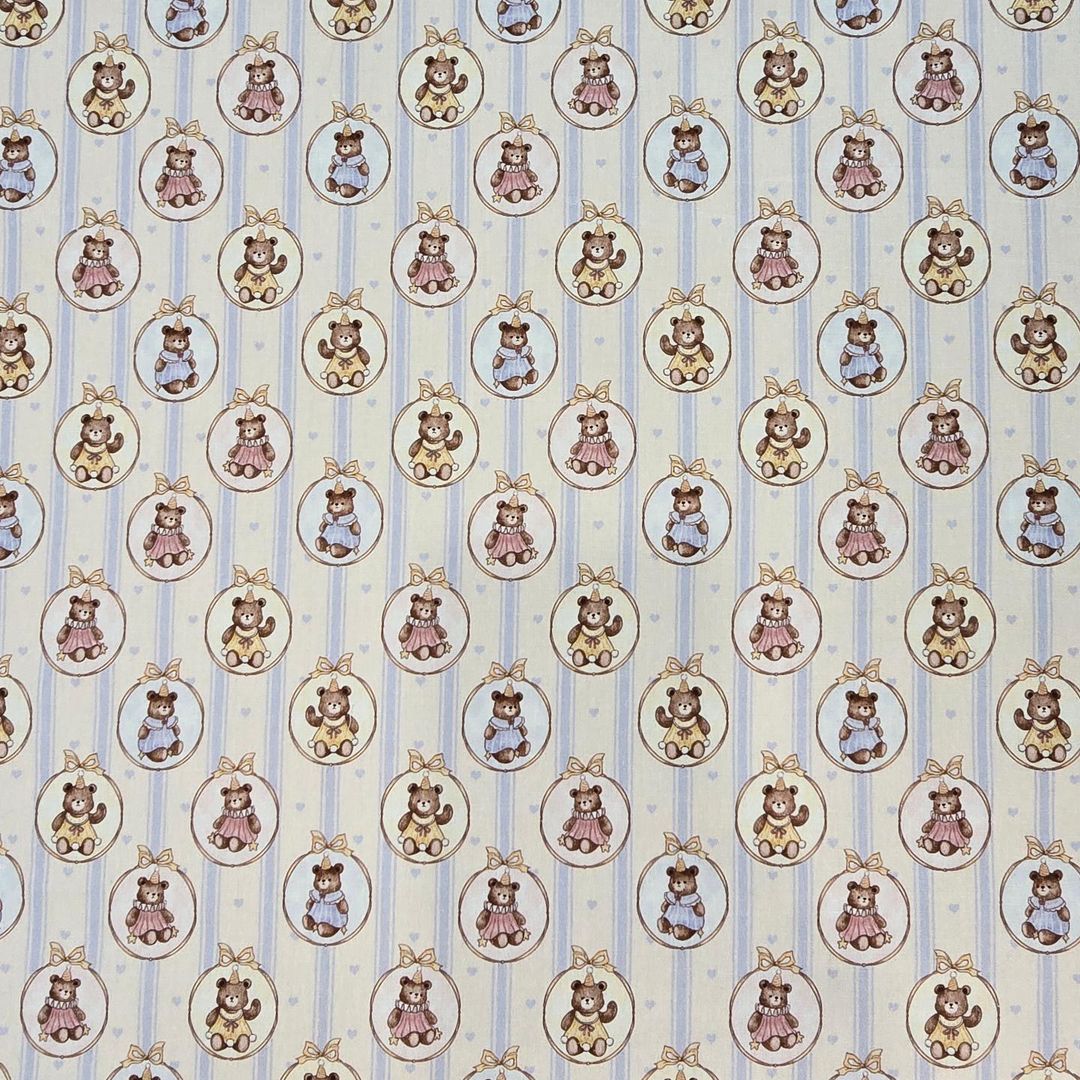 Stripe Teddy bear Ribbon Mirror Patterned Fabric, Cute, Kids, Sewing, Quilt - Korean Fabric