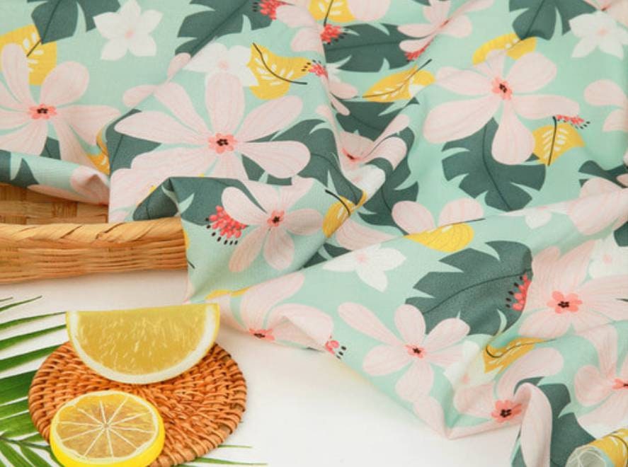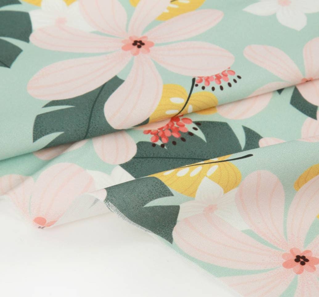 Tropical Flowers Patterned Fabric - Korean Fabric