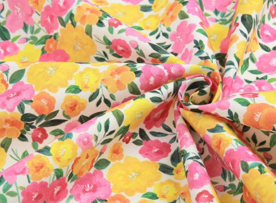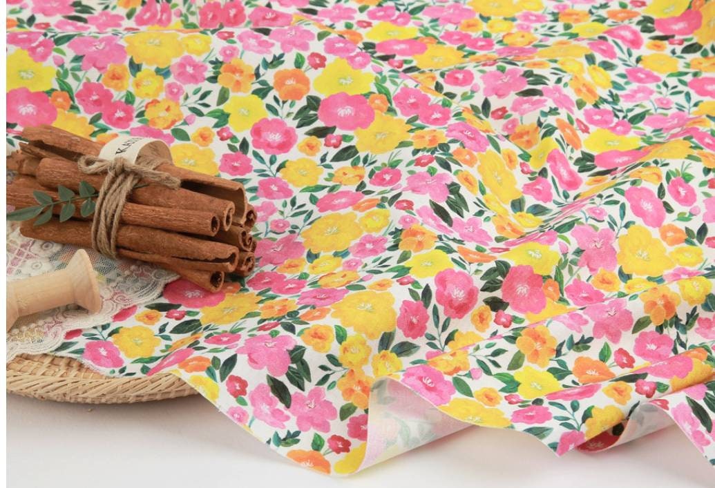 Garden Flowers Floral Patterned Fabric - Korean Fabric