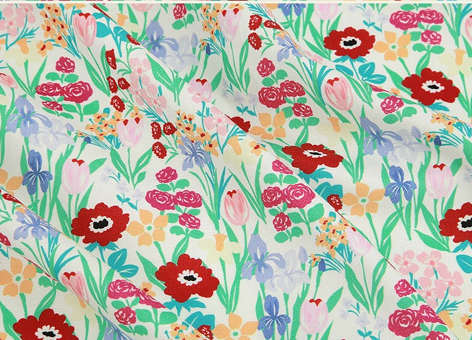 Flower Garden Floral Patterned Fabric - Korean Fabric
