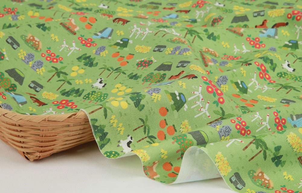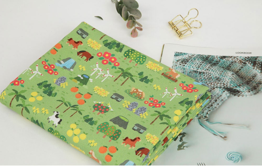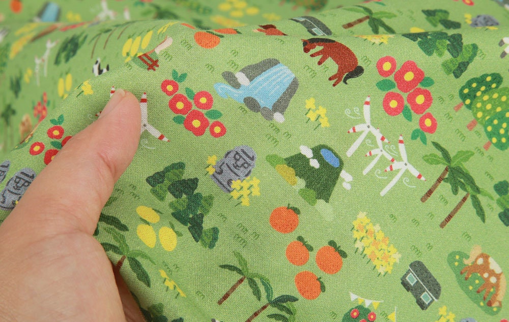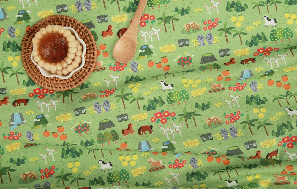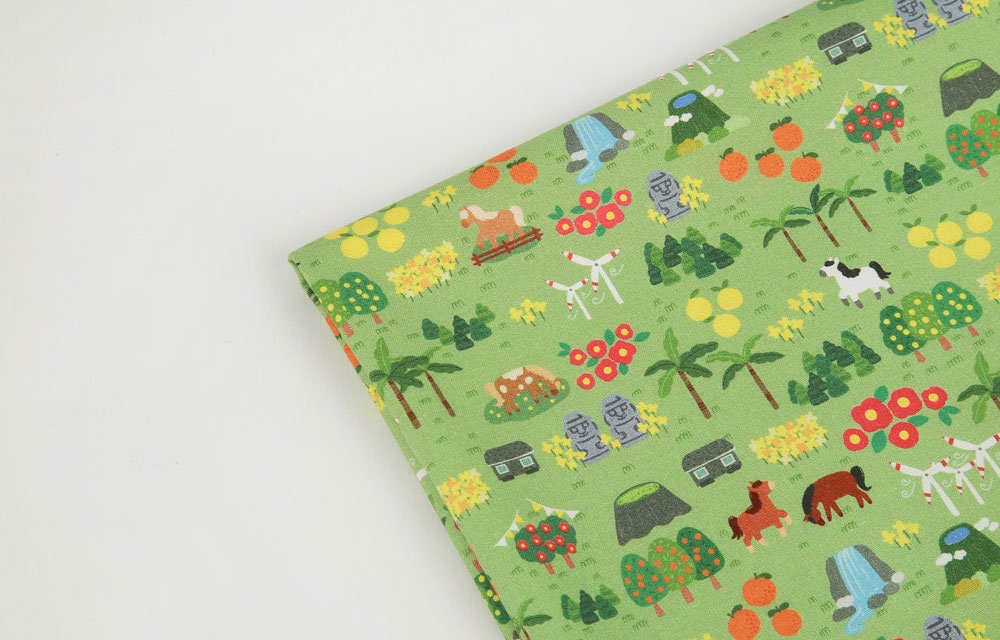 Jeju Tourism Dol hareubang Hallasan Patterned Fabric made in Korea by Half Yard