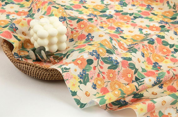 Zinnia Flower Patterned Fabric made in Korea by Half Yard