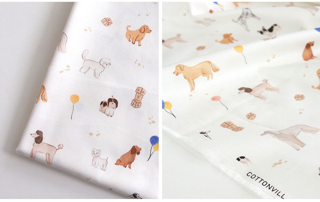 Animal Dog Puppy Patterned Fabric, Cute, sewing, Quilt - Korean Fabric