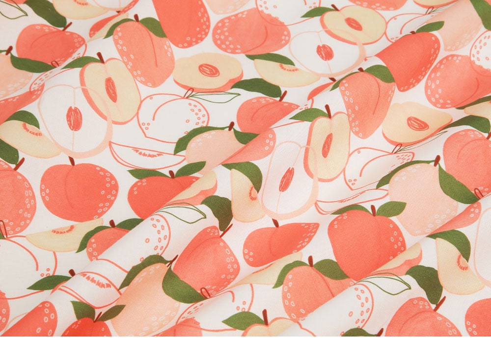 Fruits Abocado Banana Peach Orange Patterned OEKO-TEX fabric - Korean Fabric