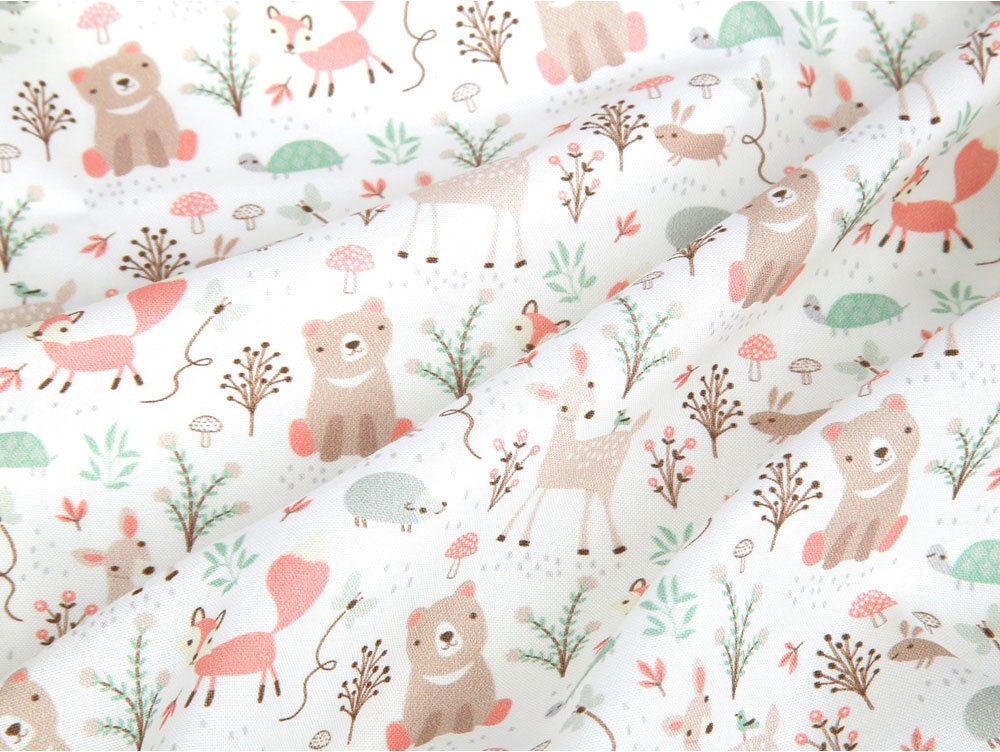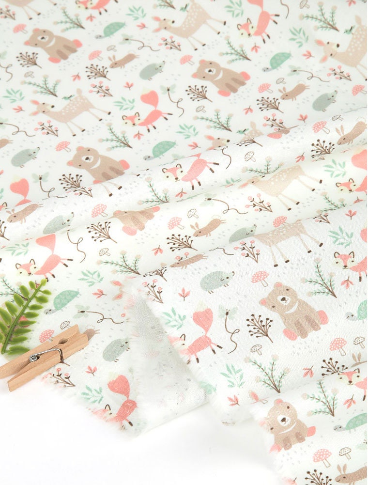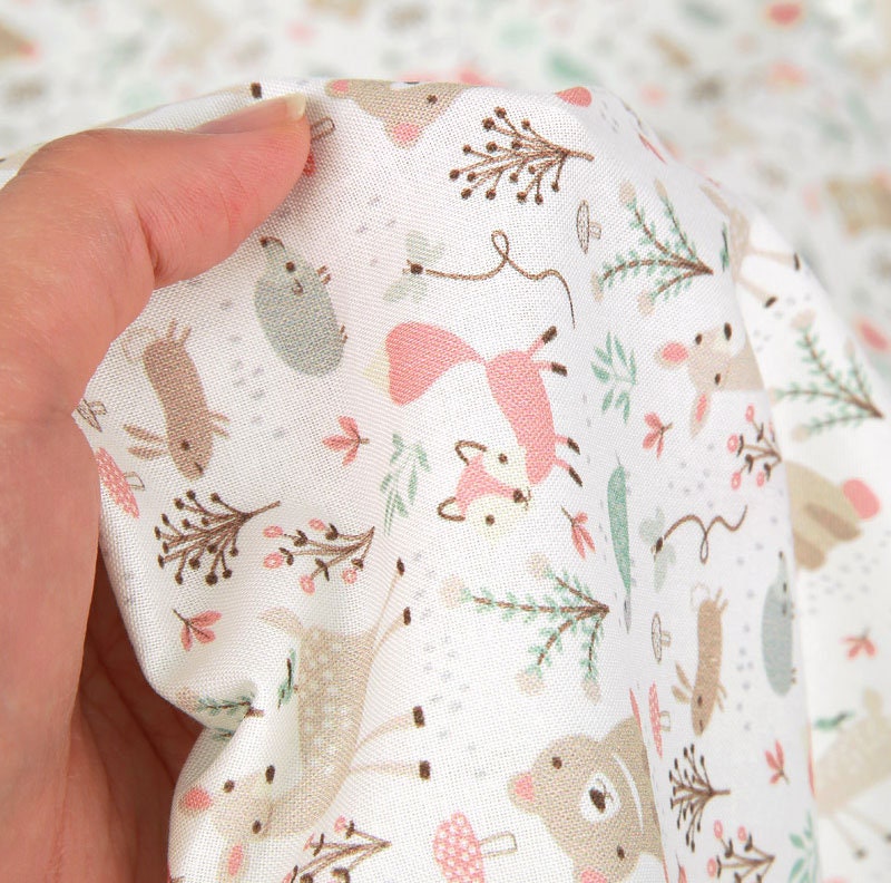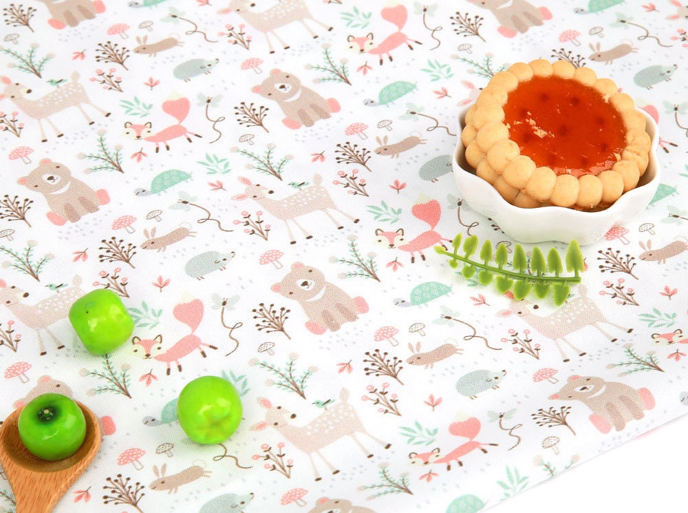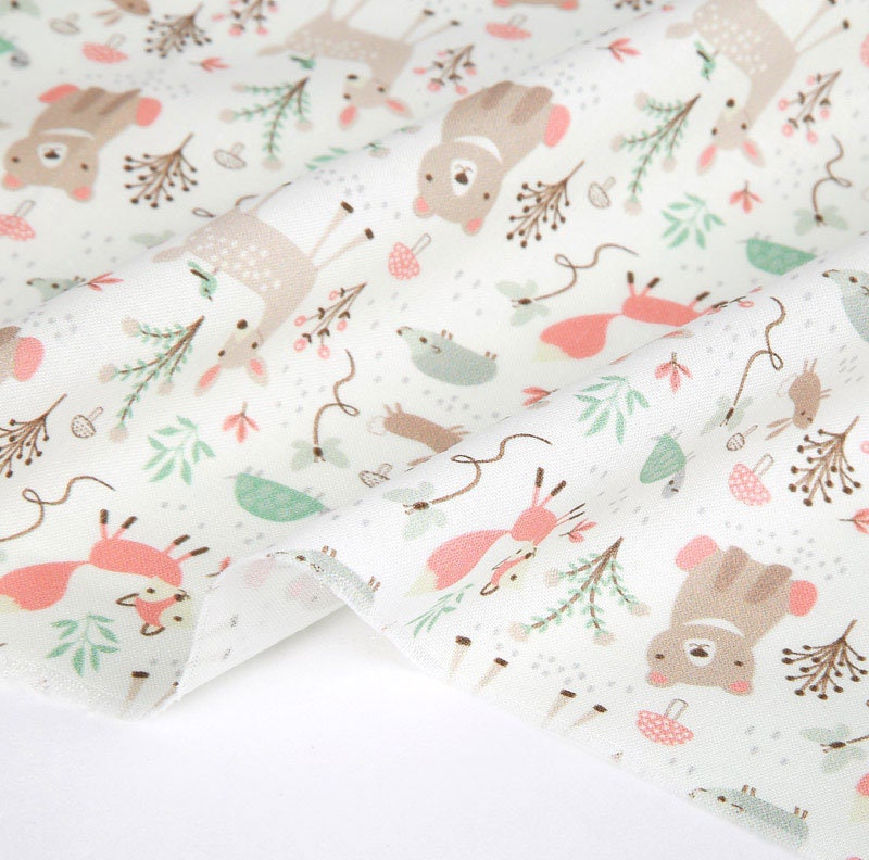 Animal Bear Rabbit Fox Deer patterned Fabric, Animal Fabric made in Korea by the Half Yard - Korean Fabric