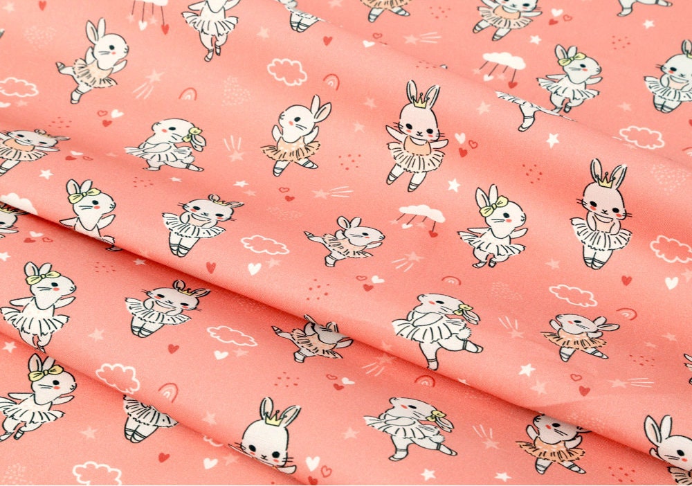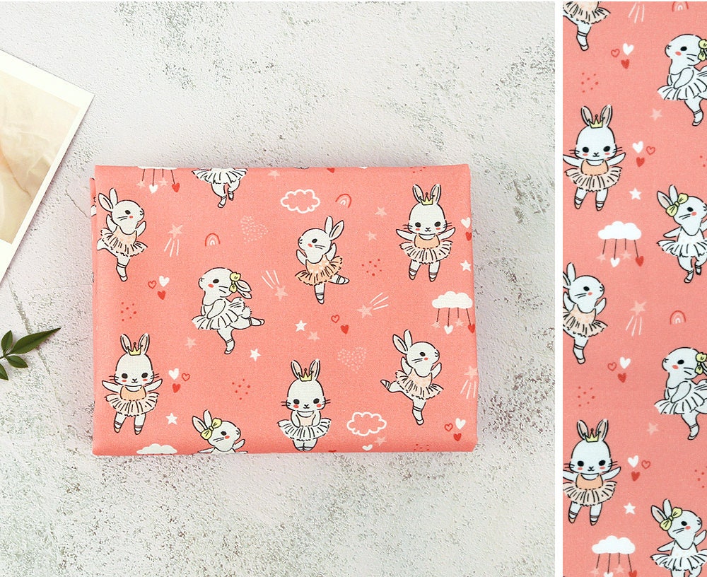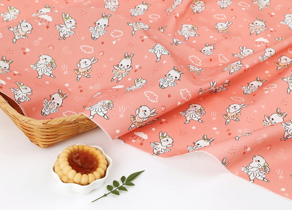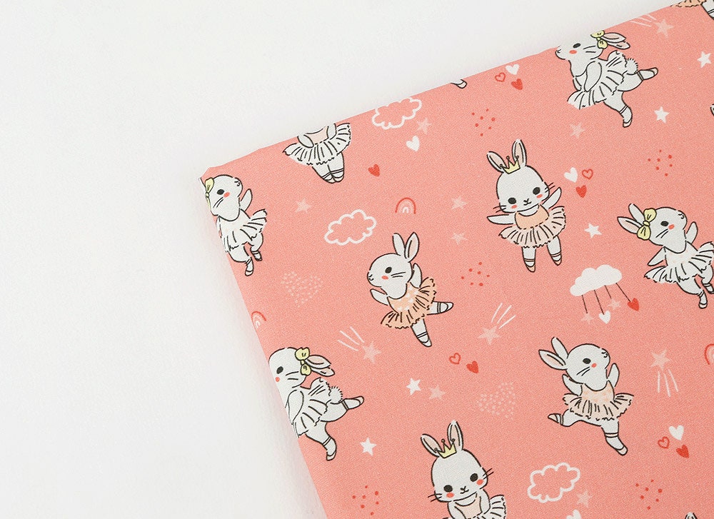 Ballet Rabbit Bunny patterned Fabric, Animal Fabric Fabric - Korean Fabric