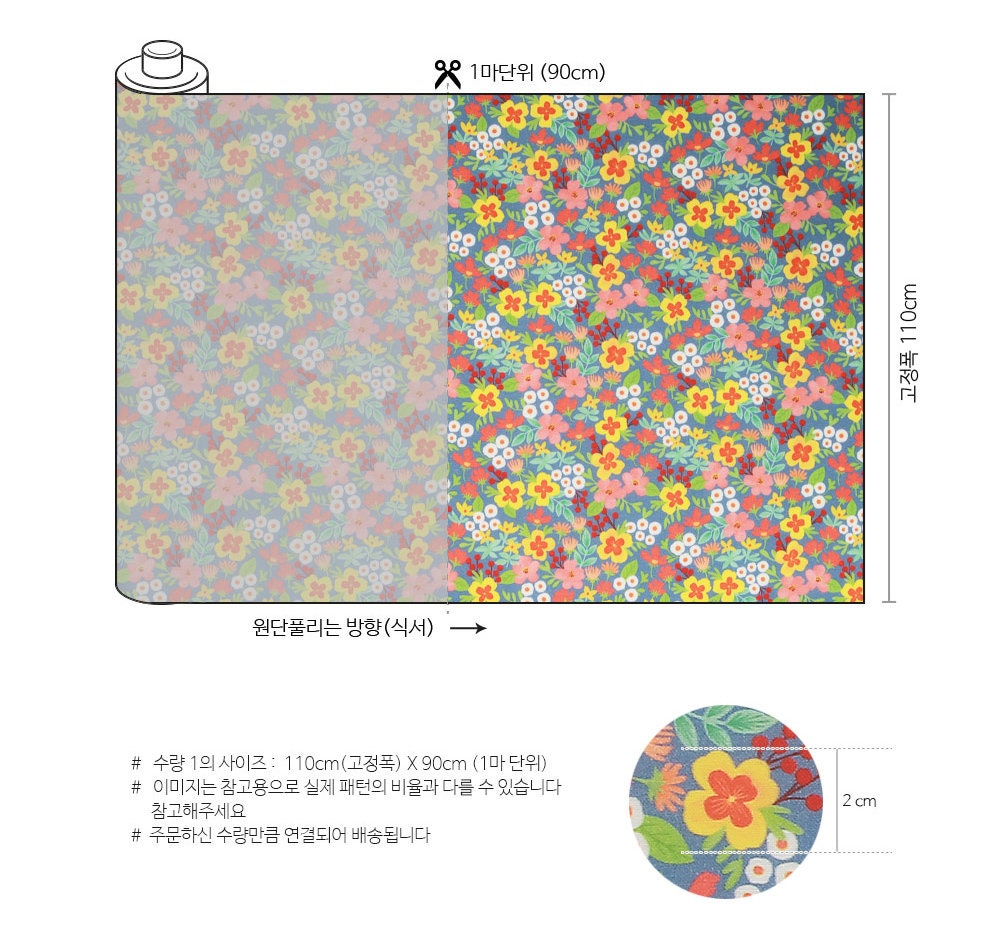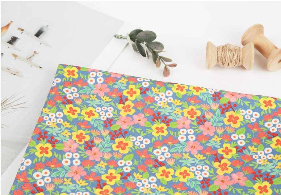 Wild Flower Floral patterned Fabric, Flower Fabric Fabric - Korean Fabric