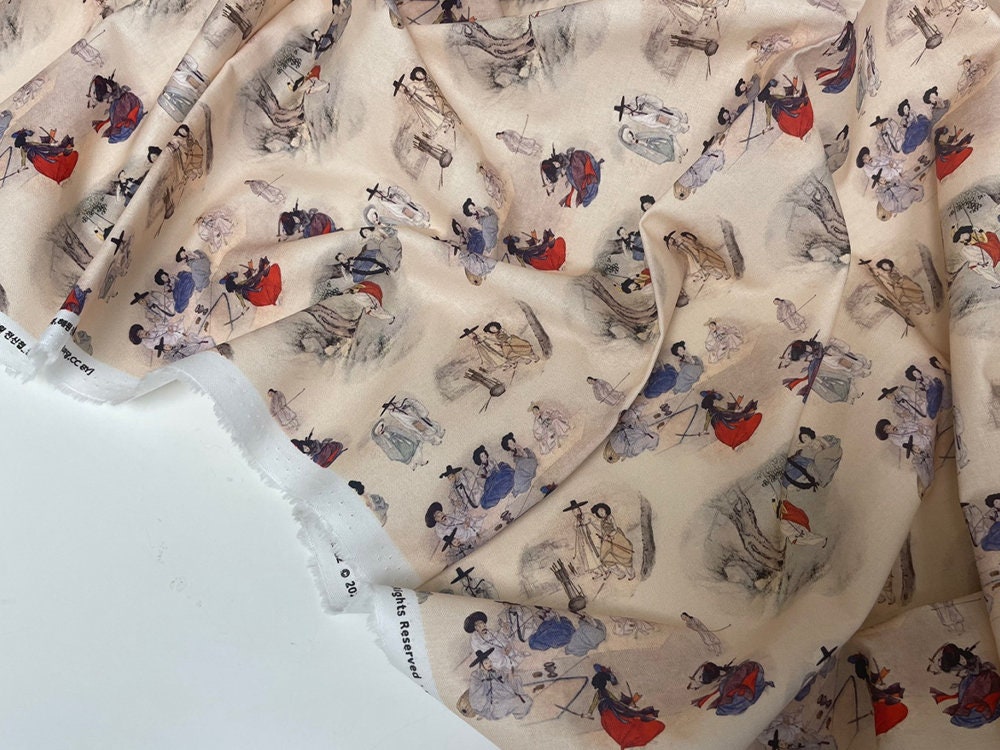 Korean Traditional Painting Art printed Fabric Korean Fabric