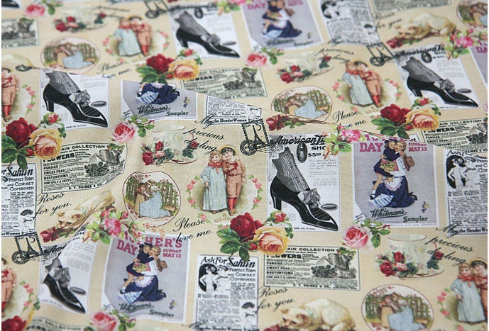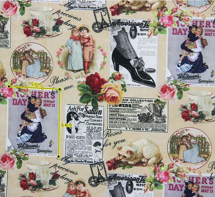 Vintage Modern Antique Postage Mother's day Poster Fabric - Korean Fabric