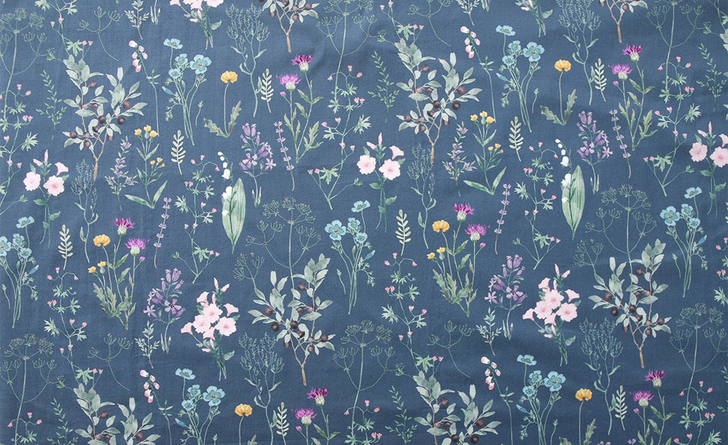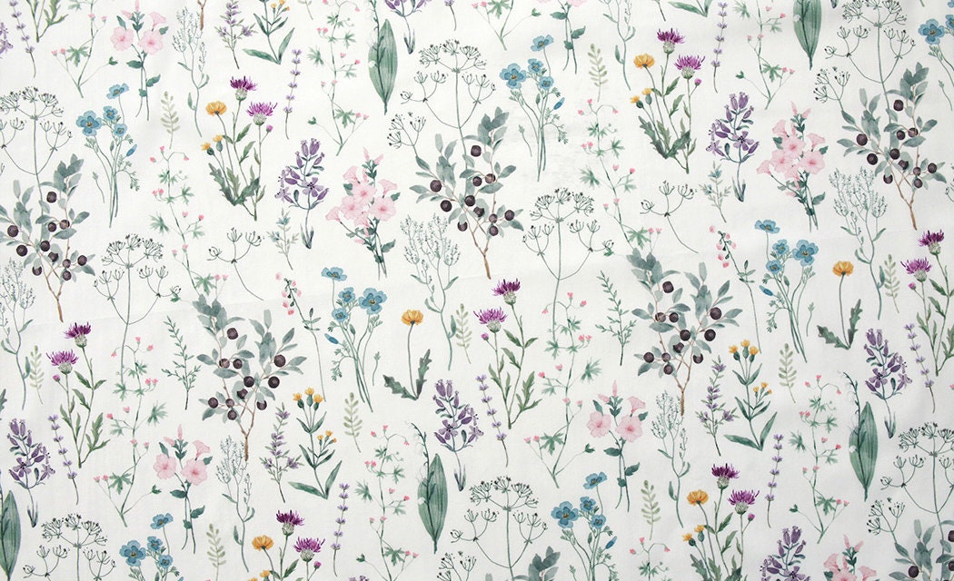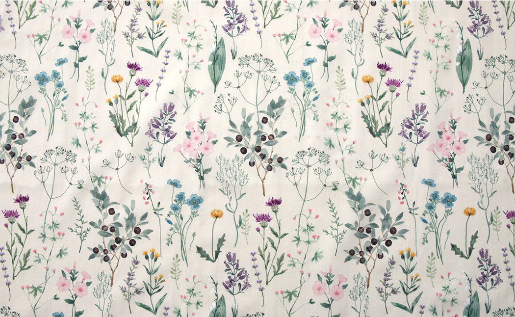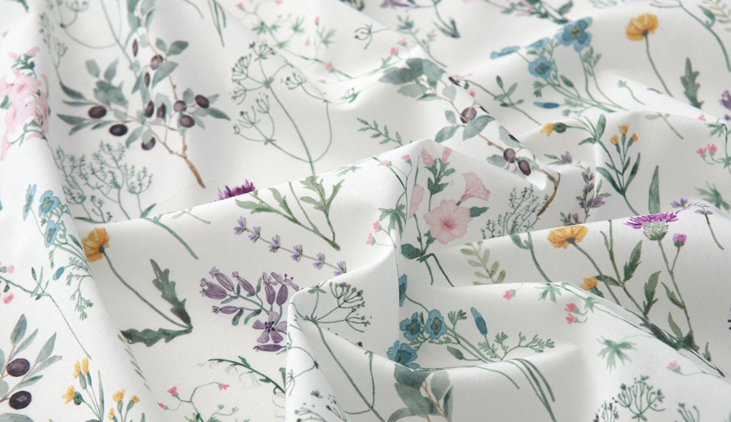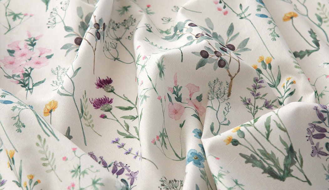 Wild Flowers Floral Patterned Lawn Fabric made in Korea by the Half Yard