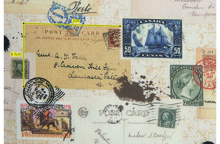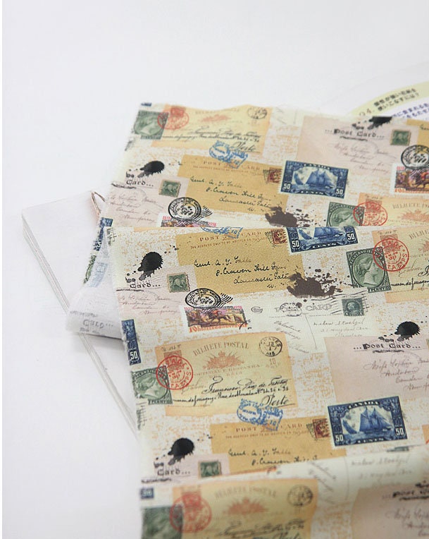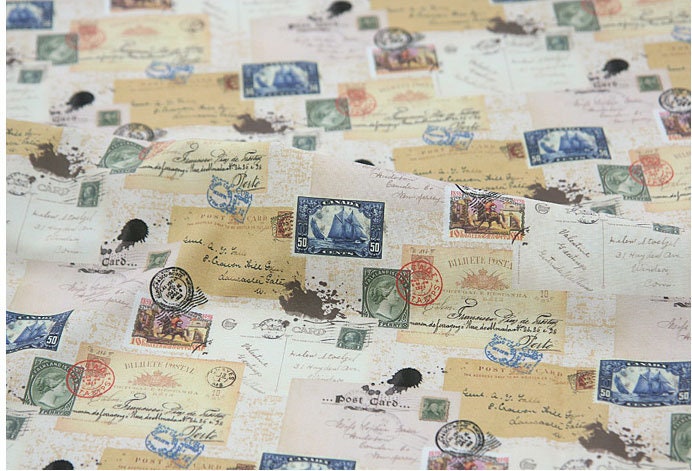 Vintage Modern Antique Postage Stamp Fabric - Korean Fabric