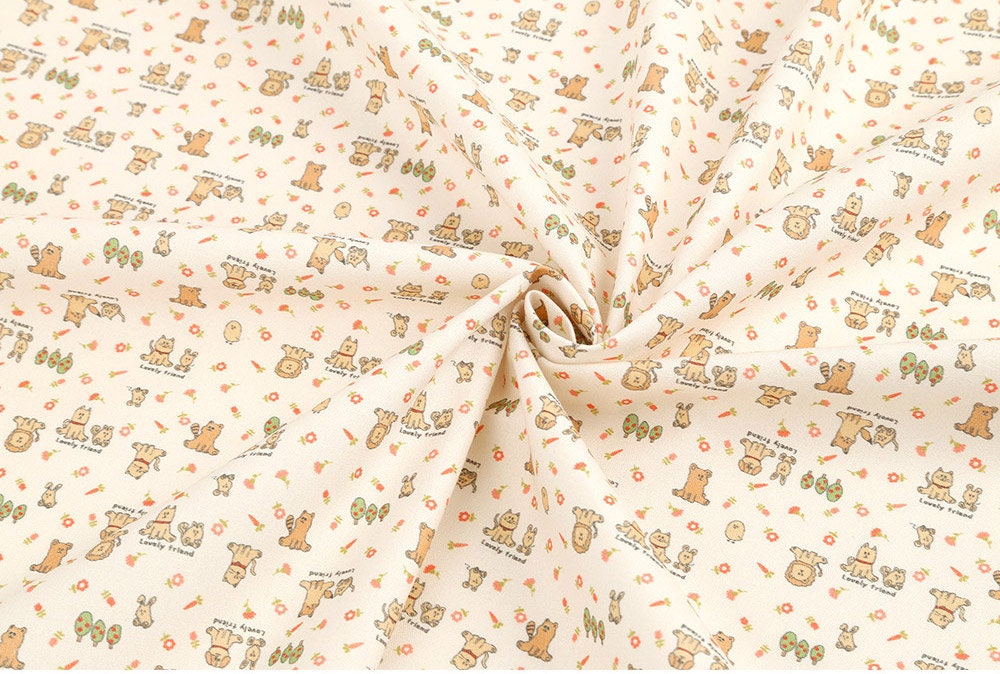 Cute Animal Dog, Puppy, Cat, Lion, Raccoon Patterned Fabric - Korean Fabric